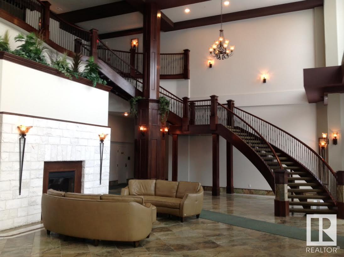 5 star living in Meridian Plaza- executive luxury with unsurpassed amenities. Your front door opens to a beautiful tropical atrium with palm trees & water fountain. This quiet 2 story condo is loaded with features- gourmet kitchen with granite counters, stainless appliances, Delton cabinetry, espresso hardwood, Spanish floor tile, marble backsplash, gas fireplace, gas BBQ, A/C, king sized bedrooms, closet organizers, French doors, custom window coverings, insuite stacked laundry, built in vacuum, assigned titled indoor parking stall. The complex has a breathtaking marble lobby with grand staircase, fireplace, owners lounge, business centre, banquet facility, guest suite, exercise room, bike storage room, ample visitor parking & video monitored security. Conveniently located close to downtown shopping, restaurants, LRT, river valley trails, McEwan University & just 8 blocks from the Ice District Arena. (id:53676)