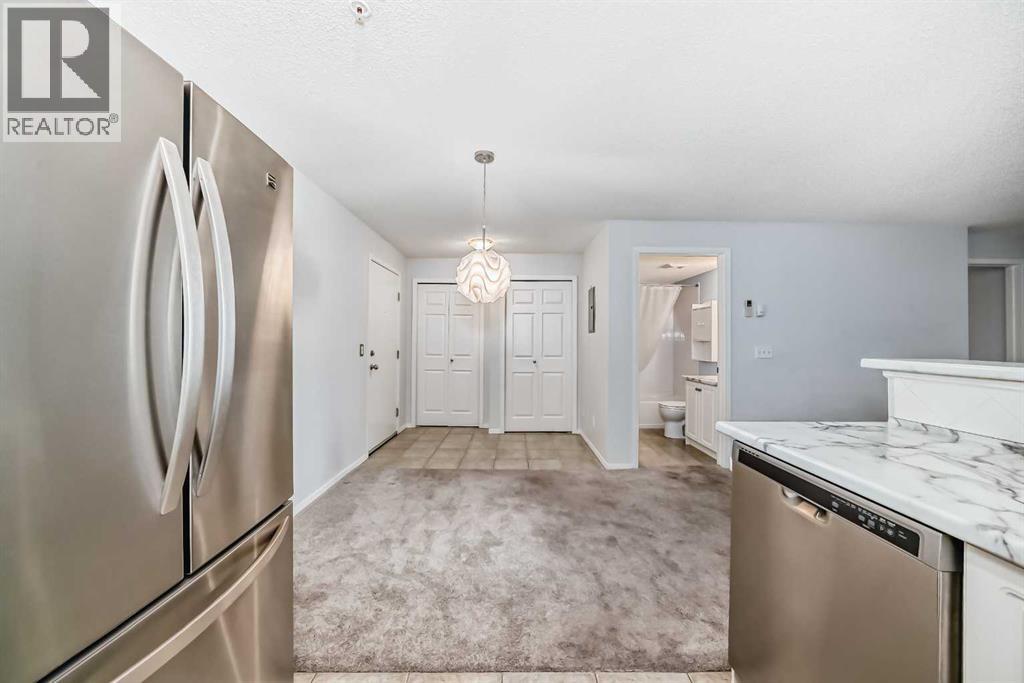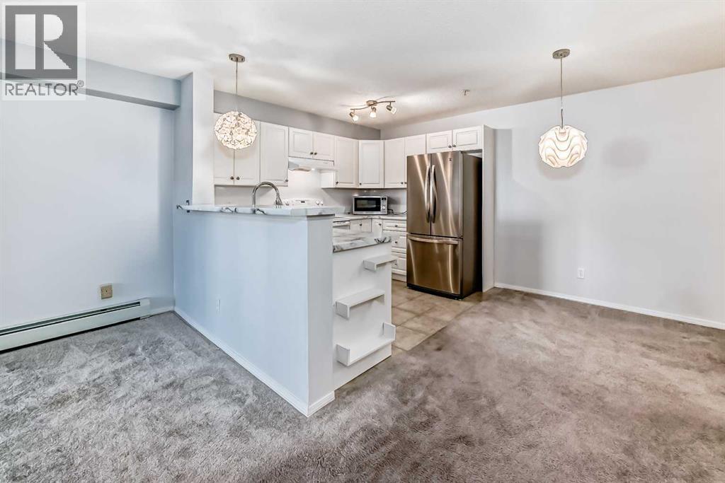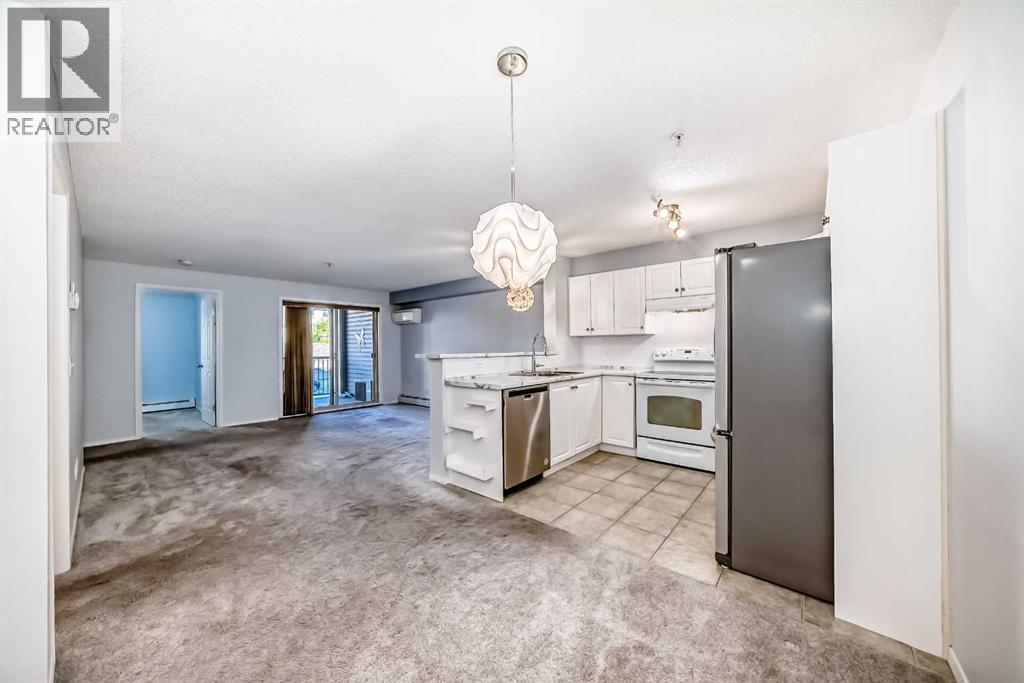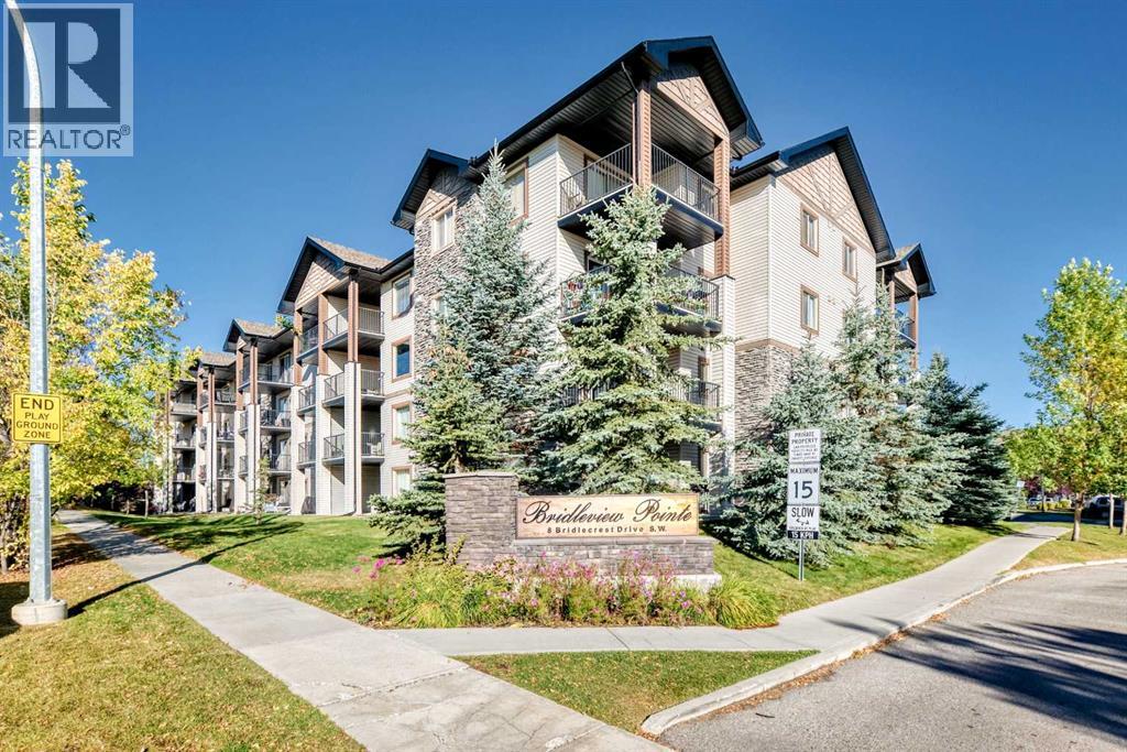 Welcome to this 2 bedroom/2 bathroom unit in the heart of Bridlewood with super easy and quick access to Stoney Trail! This unit has a great functional open floor plan with the kitchen being the focal point and has a newer fridge and dishwasher (stainless steel), updated lights, white cabinets and tiled backsplash. Beside the kitchen is an eating area and a large living room with access to the great sized and sunny west facing balcony! The primary bedroom has a walk in closet and a full ensuite bathroom for convenience and there is a second bedroom and another full bathroom as well! This unit is a bit of a unicorn as it has central A/C and the owner believes he may be only one of a couple of units that have it (grandfathered in) there is also in suite laundry, titled underground heated parking with a storage locker beside it and the parking stall is DIRECTLY beside the door to the elevator - so just a few steps! Condo fees include all the utilities (heat, water & electricity) Perfect for first time buyers, someone looking to downsize or a great revenue property! This home is also conveniently located close to multiple shops, schools, parks, playgrounds, Costco, restaurants, pubs, Fish Creek park and so much more! This one is a winner and priced competitively! (id:53676)