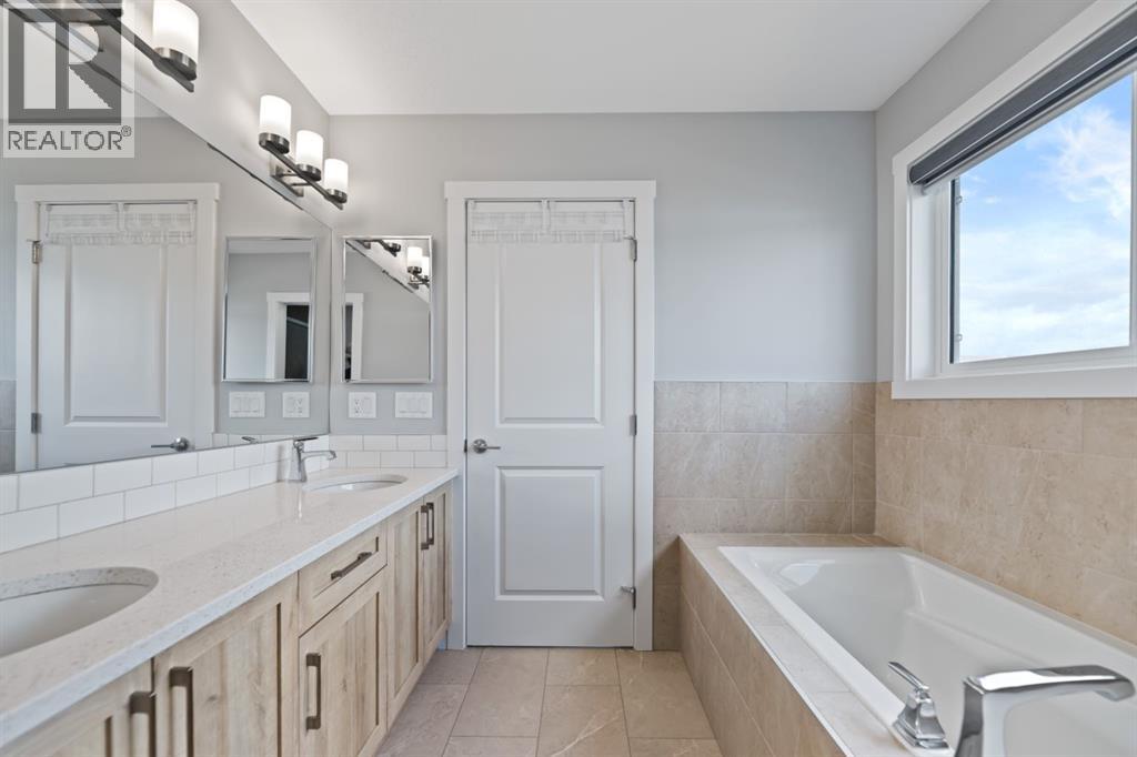 Welcome to 224 Homestead Grove NE. This newly built home in Homestead is truly a gem, offering an impressive total area of 2224.13 sq ft and boasting a fully developed legal suite basement with a convenient side entrance. House have a double front car garage (Tandem 3 car garage). It can park an RV , Boat, workers Van because of the oversized one parking in garage. Step inside, and you'll be greeted by a thoughtfully designed open floor plan, accentuated by extensively upgraded finishes throughout. The home basks in abundant natural light. The main floor is both spacious and functional, featuring a , living room, dining area, mudroom and a bedroom. The heart of the home, the kitchen, is a chef's dream, showcasing elegant upgrades such as quartz countertops, an oversized island, built-in microwave, and top-of-the-line stainless steel appliances. Also the spice kitchen with tons of storage. Main floor has a bedroom with attached full washroom for parents or guests. Upstairs, discover a haven of comfort with 3 generously sized bedrooms, i.e. 2 master bedrooms and one spare bedroom with one common full washroom and a convenient laundry room. The master bedroom is a sanctuary in itself, boasting a large walk-in closet and a luxurious ensuite complete with a double vanity, walk-in shower, and separate tub—perfect for unwinding after a long day. Tons of upgrades. Descending to the fully developed legal suite basement, you'll be impressed by its spacious layout, which includes a versatile open concept living area, dining room, kitchen, bedroom, full bathroom, ample storage — offering endless possibilities for additional living space or rental income. House have a huge 900+ sq ft of backyard space. Don't let this opportunity pass you by—schedule a viewing today and experience firsthand the unparalleled comfort and luxury that this one-of-a-kind property in Homestead has to offer. (id:53676)
