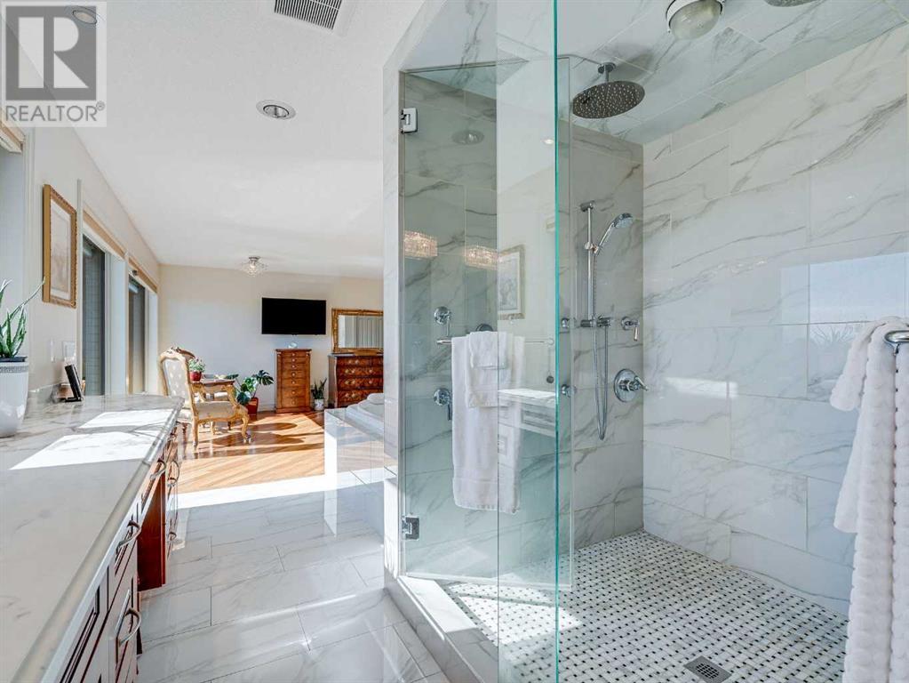 The Rare and Exceptional Location of this Luxury Estate Home is the first thing that must be noticed. Sitting on 4.72 acres this Huggard Road home has not only the breathtaking view of the Rocky Mountains, but is located in view of the Springbank School and Hockey arena, Edge School, close to daycare, church, and the community center. You can be in Calgary within minutes, yet live within one of the most private and prestigious communities that can be found. There are also subdivided lands abutting, that are available if you would like even more space. The electric gates swing open to a circular driveway, a triple garage, and a lot just for your visitors to park. The expansive grounds are well cared for with a side walking garden and a copse of trees. This all-brick home has an upgraded roof with rubber tiles, triple pane windows for quiet living, well water with exceptional filtration, and back-up electrical systems. Worry free country living! The traditional portico entry takes you into the expanse of the home. The Foyer leads you into grand living and dining spaces with custom imported hardwood throughout the home. Take in the stunning views on your way to the kitchen and family area. The kitchen is a dream with custom built-ins, chef-calibre kitchen, sub-zero/wolf appliances, exotic granite countertops, huge working/eat-in island, walk-in pantry, porcelain sink, induction countertop stove, dual wall ovens – ergonomics that planned for cooking and entertaining! From the kitchen, step out onto the spacious deck, with lots of room for outdoor barbeques, dining and lounging. The main floor suite is contained with a bathroom, bedroom, kitchenette, living space and separate entrance. It is perfect for guests, or perhaps a nanny. Upstairs there are three more bedrooms including the stunning primary bedroom with horizon views that take your breath away every morning. The ensuite spa and dressing room/closet complete the luxury you should expect living here. And for even more space the lower level is fully finished with enormous living and recreational areas and a bathroom that can be arranged in any way to suit your needs. The lower-level walk out is both discrete and convenient. The mechanicals of the home include: two sump pumps, two high efficiency furnaces, drinking water filtration system, high producing water well and cistern, and of course a well-maintained septic system. There is so much to take in here, so don’t hesitate on this timeless home, book a private viewing with your realtor today. (id:53676)