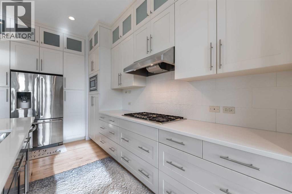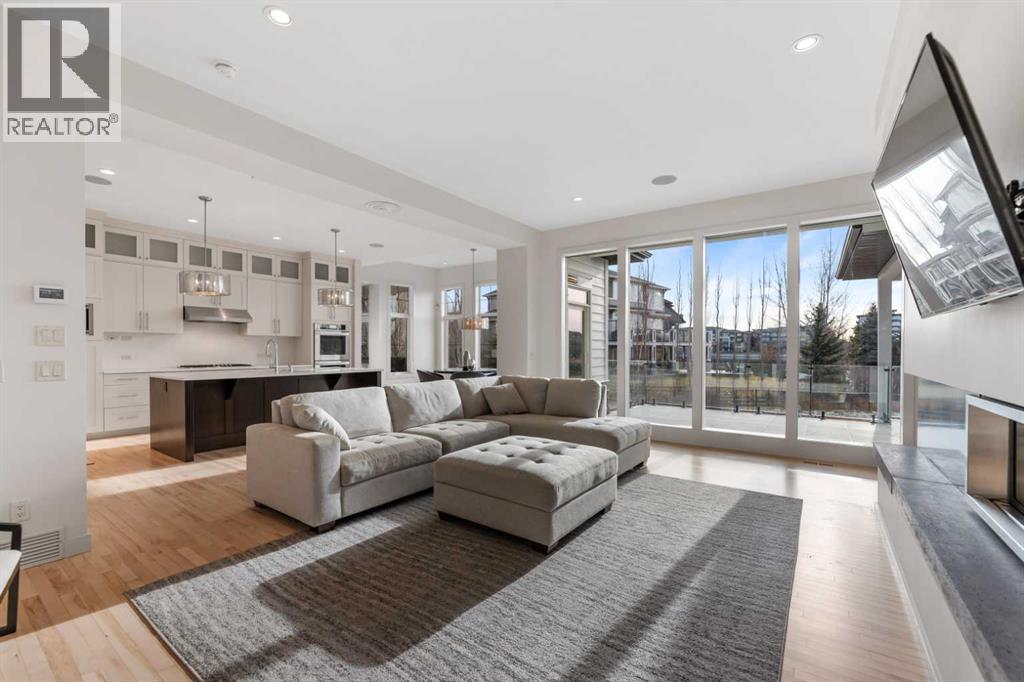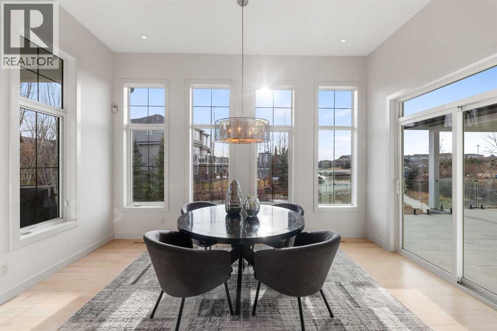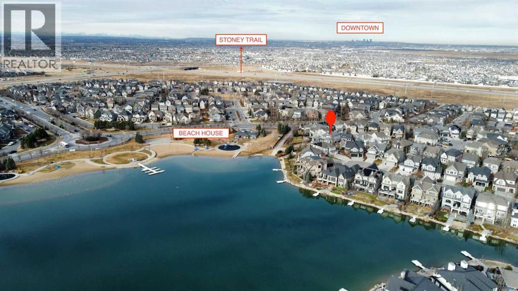 This direct lake access property in the award winning community of Mahogany enjoys a sunny south exposure and backs onto West Beach, an outstanding year round recreational anchor for the community. Situated on a quiet cul de sac, this estate quality luxury home was originally built by Baywest Homes in 2011. Since then, it has been extensively renovated and expanded, increasing the total square footage. The result is a truly luxurious and one of a kind residence set on one of the best lots in Mahogany.The home features four well sized bedrooms upstairs plus a bonus room, along with an extremely functional and well planned main floor that offers both a flex room and an office. The sunshine basement awaits your imagination. Ceiling heights are 10 feet on the main level and 11 feet over the dining room, all with flat finish ceilings. Combined with abundant oversized windows, the home feels exceptionally open, bright, and airy.The kitchen, anchoring the main floor, overlooks the glistening lake through massive windows. Beautiful hardwood floors, stunning white full height cabinetry with glass accents, a large island finished in a contrasting darker tone, and quartz countertops create a timeless and elegant space. The dining area and outdoor balcony provide seamless indoor and outdoor dining options and easily accommodate large gatherings.The living room, complete with a gas fireplace, benefits from extra windows, while the sizeable mudroom off the double front drive garage offers ample storage and can be closed off from guests for privacy.A carpeted staircase leads to the upper level, where the same carpeting continues through the hallways and bonus room. The four upper bedrooms include a spacious primary suite with lake views, large enough to accommodate any furnishings you choose. The spa like five piece ensuite features a soaker tub, double sinks on a raised vanity, and a walk in closet generous enough for two. The three additional bedrooms are all well sized and share a four piece family bath. The upper level laundry room is exceptional in both size and functionality.The south facing windows overlook the professionally landscaped yard, complete with a beautiful water fall feature. This is one of the largest and most desirable pie shaped lots in Mahogany, offering easy access to West Beach, as well as access to a shared dock. From your backyard, you are only steps from the beach and the water.Recent upgrades include porcelain tile over the vinyl deck, a high end glass railing, a covered deck with a fireplace and outdoor TV, an underground sprinkler system, two AC units, and two furnaces. (id:53676)