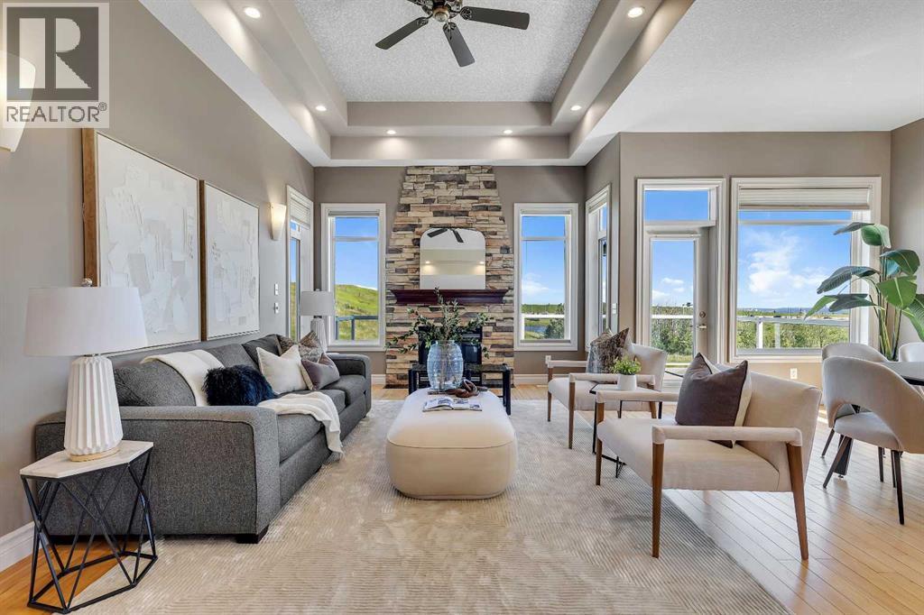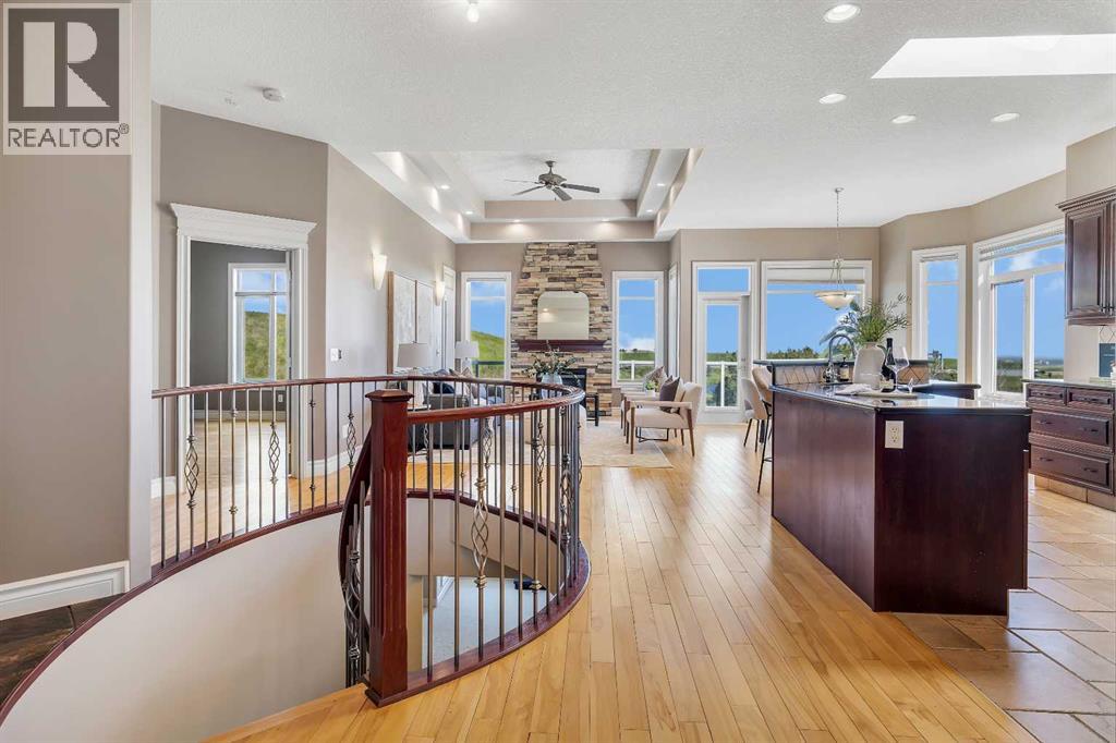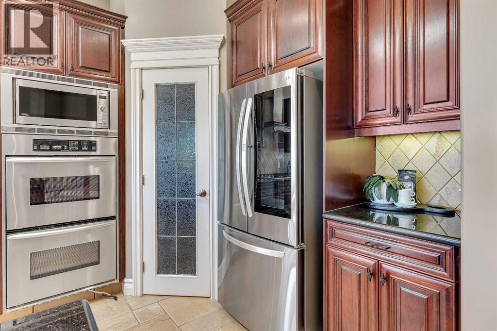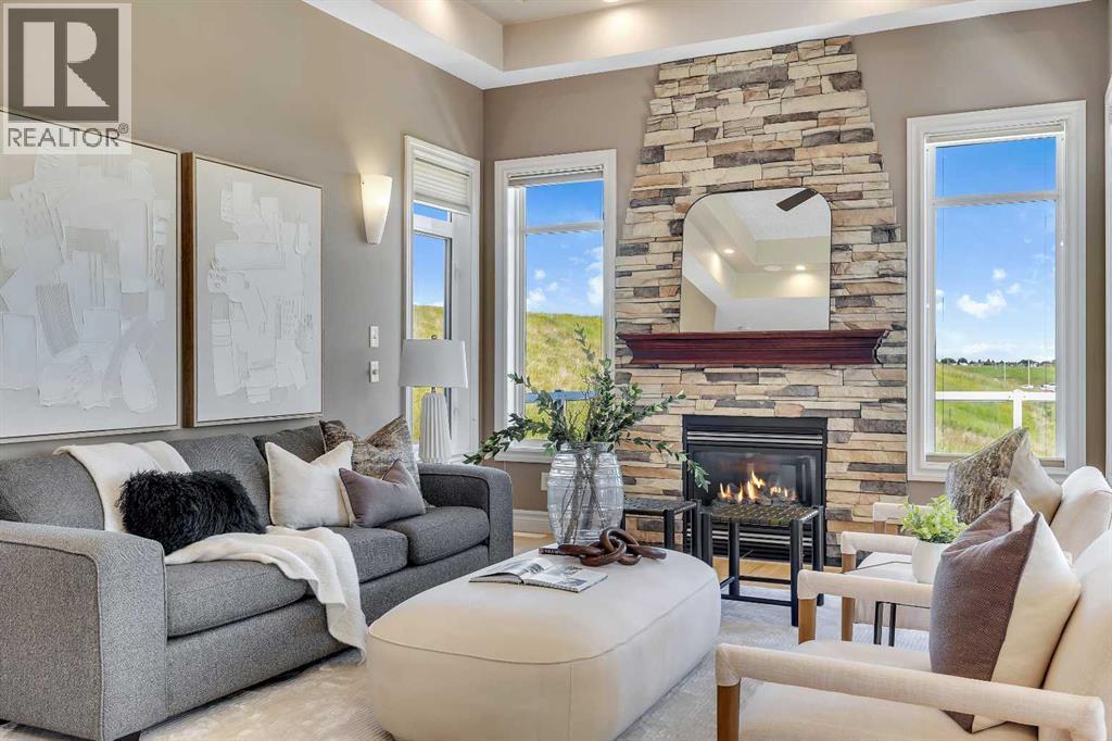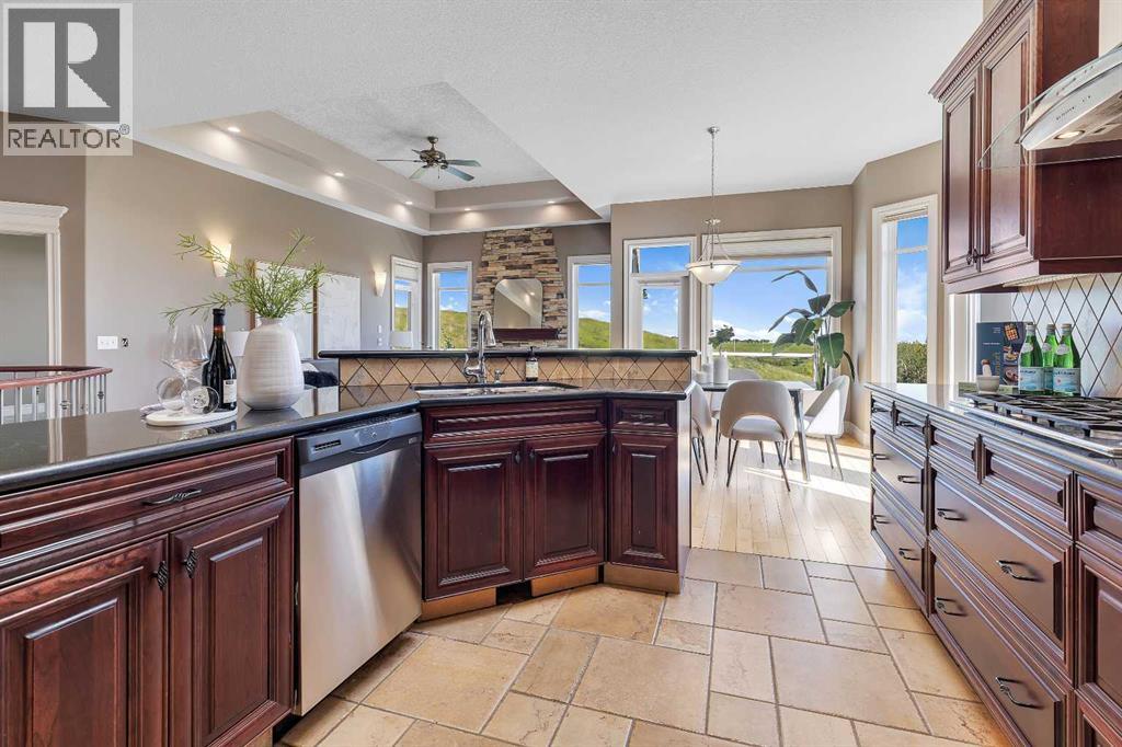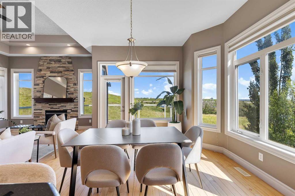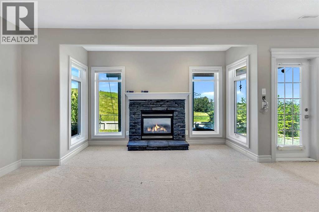 Welcome to this stunning home nestled in a tranquil cul-de-sac, backing onto a lush green space, offering unmatched privacy and serenity. Situated on a spacious lot of over 7,100 sqft, this residence seamlessly combines comfort with elegance, flooded with abundant natural light throughout. The inviting entryway features a beautiful arched front door with decorative stained glass windows, leading into a welcoming space with a transition from a tiled foyer to warm, honey-tone hardwood flooring that enhances the home's natural lighting.The interior boasts a modern open-concept living area centered around a stunning fireplace set against a stylish stone accent wall—ideal for cozy gatherings. Decorative recessed lighting in the ceiling and elegant wall sconces along the side walls provide warm ambient illumination, creating a cozy and inviting atmosphere. Large windows throughout flood the space with sunlight and showcase scenic views of the surrounding greenery. The sleek kitchen is a chef’s dream, featuring a gas stove with two ovens, rich, dark wood cabinetry, black granite countertops, and stainless steel appliances, including a side-by-side refrigerator—perfect for cooking and entertaining.Designed for year-round comfort, the home features in-floor heating. The walkout basement offers two spacious bedrooms, each bright and large with ample closet space, and large windows that flood the space with natural light, along with a decorative fireplace that adds warmth and charm. The main floor features a generous master bedroom designed as a peaceful retreat. An elegant curved staircase with a polished wooden handrail and decorative metal balusters adds a sophisticated touch and connects the lower level to the upper.Additional large windows throughout the home fill the space with natural sunlight, creating a lively, cheerful ambiance. This property offers an ideal blend of spaciousness, natural beauty, and stylish finishes—making it perfect for families, downsizers, or investors seeking a move-in-ready home in a peaceful, green setting. (id:53676)