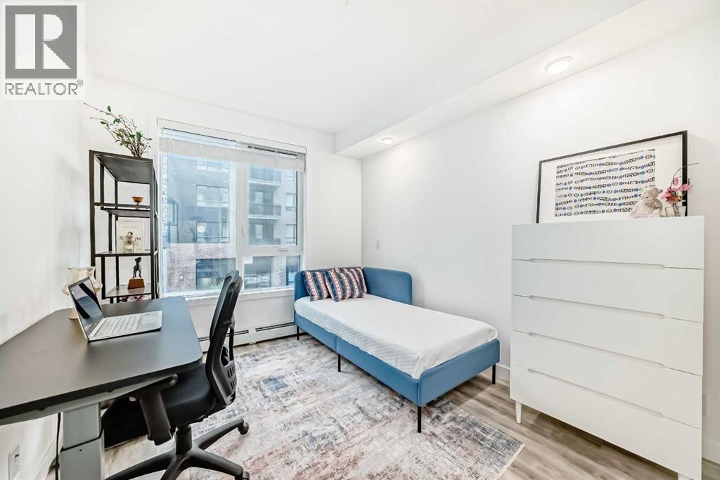 Welcome to this stylish and beautiful 2-bedroom, 2-bathroom condo in the sought after NW community of University District! This modern condo has been thoughtfully designed with an open-concept layout featuring premium vinyl plank flooring throughout, creating a seamless flow between living spaces. The primary bedroom is generously sized and features a 3-piece ensuite with larger shower and a walk-in closet. A second bedroom is situated on the other side of the unit which can also be used as an office and has a four-piece bathroom across from it. The functional kitchen boasts stainless steel appliances, gas stove, full-height white cabinetry, quartz countertops and a built-in pantry providing lots of storage. The living room opens up to the dining room with a large balcony extending the indoor space for entertaining guests. This desirable corner unit condo allows lots of natural light to flow through it showcasing large windows in almost every room. The in-suite laundry with extra room for storage provides added convenience. The August building offers an impressive array of amenities including a roof-top deck, party room and lounge as well as a car wash in the secure underground area. This unit also comes with a titled underground parking spot and an oversized storage unit, providing exceptional value to this home. This pet-friendly building is also located in one of the most desirable locations in NW Calgary -- steps away from all the amenities one could desire, including Save-On-Foods, Shoppers Drug Mart, Cineplex Theatre, Market Mall and an array of restaurants and coffee shops. This location is ideal for professionals working nearby or studying at the University of Calgary, empty-nesters, investors or anyone seeking a modern, urban lifestyle with easy access to major routes and transportation hubs. Book your private viewing now before this spectacular condo is sold! (id:53676)