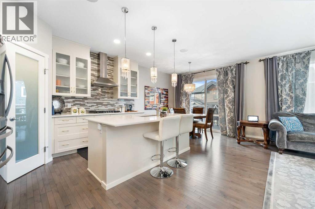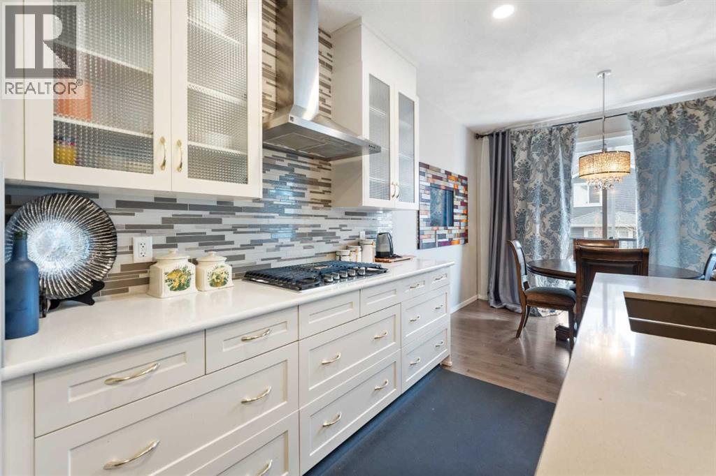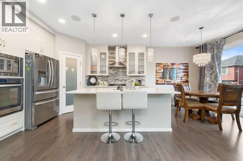UPGRADED 2-STOREY ON A SUNSHINE LOT W/ BONUS ROOM & ILLEGAL BSMT SUITE IN AIRDRIE’S KINGS HEIGHTS! Sitting on a peaceful Airdrie street, this Homes by Avi two-storey stands out with its' warm modern Craftsman exterior. Set on a Sunshine Lot, which means bigger basement windows and beautiful natural light on every level. Thoughtful, designer upgrades make daily living feel elegant and pride of ownership has kept the home in tip-top shape! Inside, the open concept main floor is a welcoming living room anchored by a stone-faced gas fireplace, dining area that can comfortably fit a 6-8 person table, and a gourmet chef’s kitchen. The kitchen is home to a gas cooktop with chimney hood, built-in wall oven, full-height mosaic tile, Quartz counters, kitchen island, and corner pantry all set over hardwood floors that run throughout the main level. A versatile MAIN-FLOOR bedroom has its own en-suite 4-piece bath. This extra main floor room is perfect for elderly parents or office space. Upstairs, our first stop is the vaulted bonus room perfect for movie nights, homework, or play. On the opposite end of the upper floor is a large master bedroom with a walk-in closet and a 5-piece bathroom. The ensuite is a spa oasis that features dual sinks, deep soaker tub, and glass shower with seat. Two additional bedrooms share a 4-piece bath, and the convenience of upper-floor laundry keeps chores simple. The basement can be used as a mortgage helper thanks to an illegal suite. Complete with its own separate side entrance, bright living area, sleek kitchen with full-size appliances, a generously-sized bedroom, and a full 4-piece bath. Plus separate washer/dryer and separate electric baseboard heating means completely separate living within each suite. Outside, there is a durable and low maintenance composite deck with glass risers, stepping down to a fully fenced, easy-to-maintain yard with stone paths, a pergola, and synthetic turf for year-round green. An attached double garage and wide driveway handle parking and storage with ease, and the tidy Craftsman curb appeal ties it all together. Set on a quiet street in Kings Heights, this home has quick access to parks, pathways, 2 nearby schools, and everyday shopping at the Yankee Valley Crossing Shopping Plaza, the Kingsview Plaza & Sierra Springs Plaza. Access to the rest of the city and Calgary is easy through several nearby major roadways including Deerfoot Trail, Yankee Valley Blvd & Kingsview Blvd. Jumping in the car: Downtown Calgary is a 23 min drive (29.8KM), Calgary Airport is a 16 min drive (18.8KM), & Banff is a 1 hr 31 min drive (145KM). (id:53676)