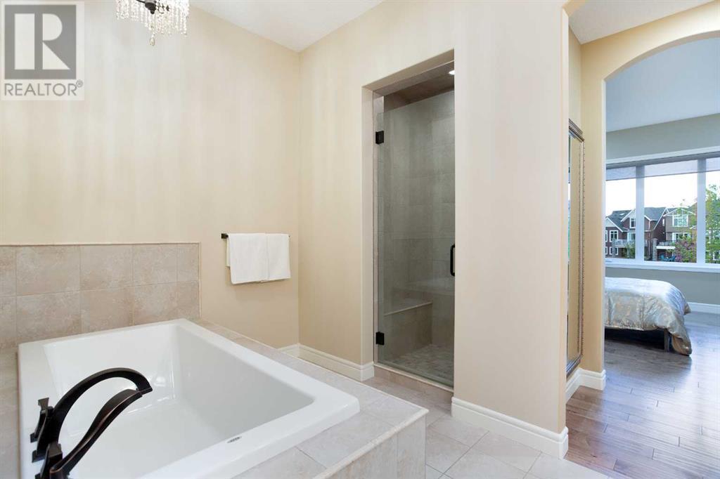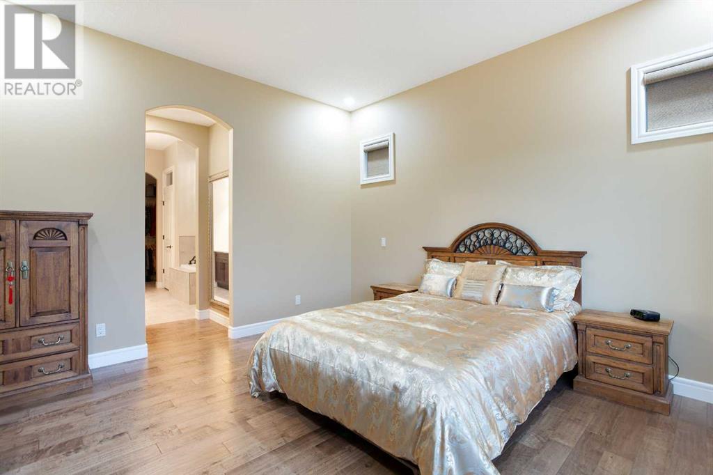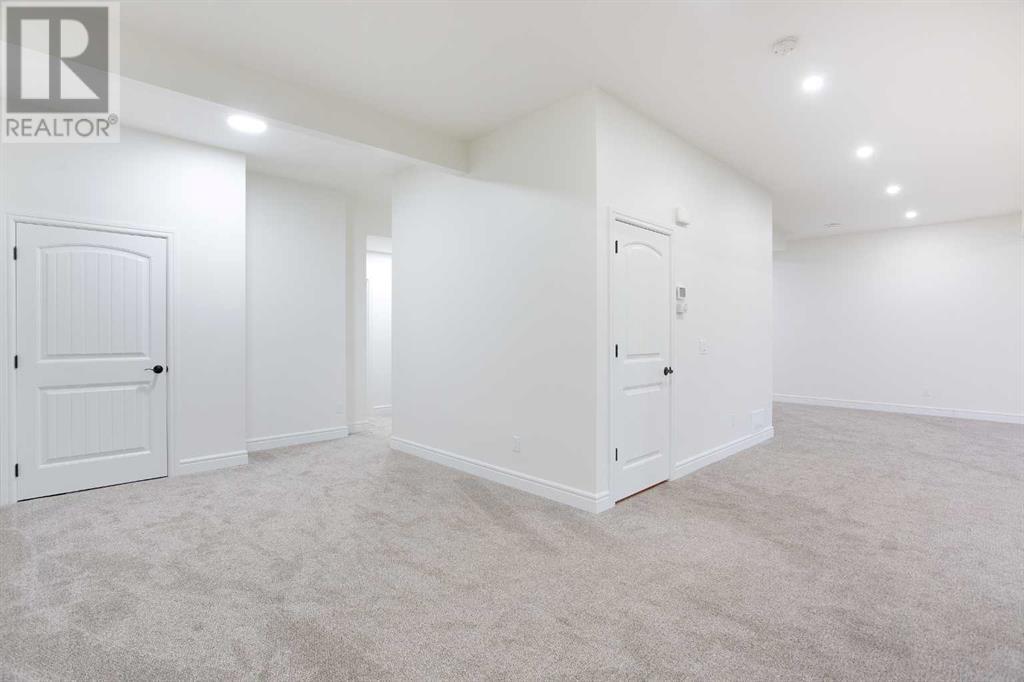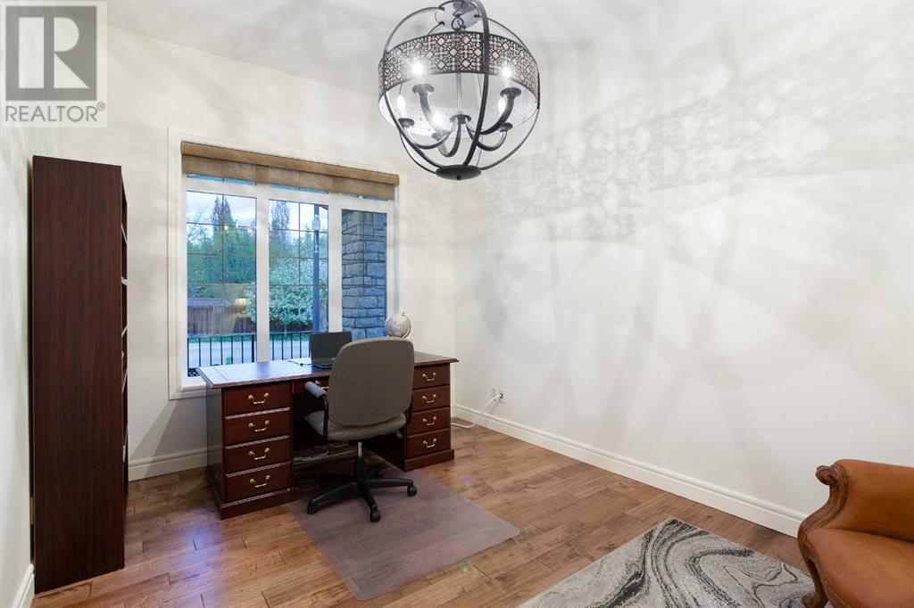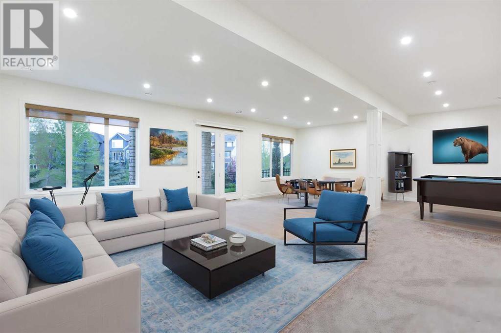 Welcome to this beautifully designed walkout bungalow in the heart of Riverstone, offering a rare combination of luxury, privacy, and connection to nature. Perfectly positioned on a quiet street, this home features a south-facing backyard that backs directly onto a tranquil green space and creek, creating a serene backdrop year-round. From the moment you arrive, you'll notice the timeless curb appeal, accentuated by custom exterior stonework and an elegant entryway with soaring 11.5' ceilings throughout the main level. As you enter, you're welcomed by a grand open concept layout with wide archways, exquisite finishes, and an abundance of natural light. One of the first things you'll appreciate is how incredibly spacious and unique the living room is—a true custom design that sets this home apart. It's uncommon to find a bungalow with such a generously scaled main living area, making it ideal for both intimate evenings and large gatherings. A stunning fireplace with rich stone surround and a warm wood mantle creates a perfect focal point, complementing the warmth of the hardwood floors. The kitchen is a dream for entertainers and home chefs alike, featuring high-end custom cabinetry, granite countertops, and a walk-through pantry with exceptional storage. The adjacent dining area is highlighted by a beautiful, built-in china cabinet that adds elegance and practical display space—perfect for showcasing your most treasured pieces while tying the room together with timeless charm. Off the foyer, you’ll find a stylish front office that’s ideal for working from home or creating a cozy library or reading nook. The primary suite is a true sanctuary, offering tranquil views of the creek and greenspace beyond. The ensuite bathroom is spa-inspired, complete with a skylight, oversized shower, luxurious deep soaker tub for two, custom vanity tower, and a spacious walk-in closet. Downstairs, the professionally developed walkout level offers more room to enjoy, featuring ten-foot ceilings, roughed-in speakers, one spacious bedroom with a walk-in closet, a full four-piece bathroom, and a roughed-in future bar area that allows for additional customization. Whether you're envisioning a games room, home theatre, or a quiet retreat, the lower level offers endless possibilities. Step outside onto your oversized vinyl deck which features a gas line and water tap and take in the breathtaking views and experience the peacefulness of the natural landscape. The large double-attached garage provides room for all your vehicles and gear and has been upgraded with a gas line and sink with hot and cold taps. While additional features like separate furnaces for the main and lower level, air conditioning, water softener, in-ground irrigation, and a thoughtfully designed mudroom add convenience and comfort to everyday life. This is a rare opportunity to own in one of Calgary’s most coveted communities along the Bow River, minutes to Fish Creek Park, the South Health Campus, and top-tier schools. (id:53676)