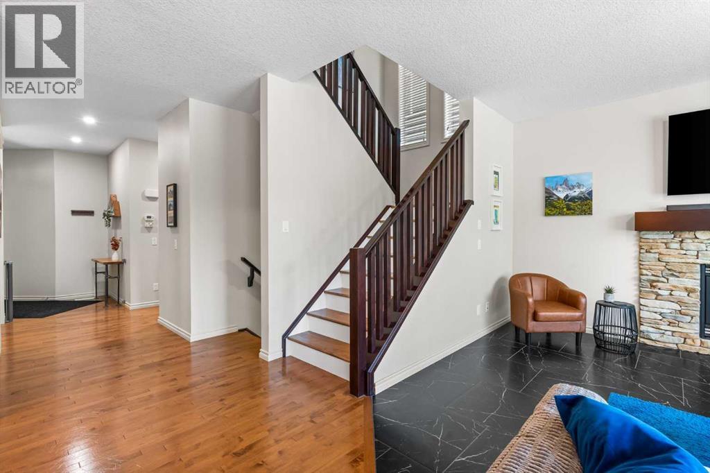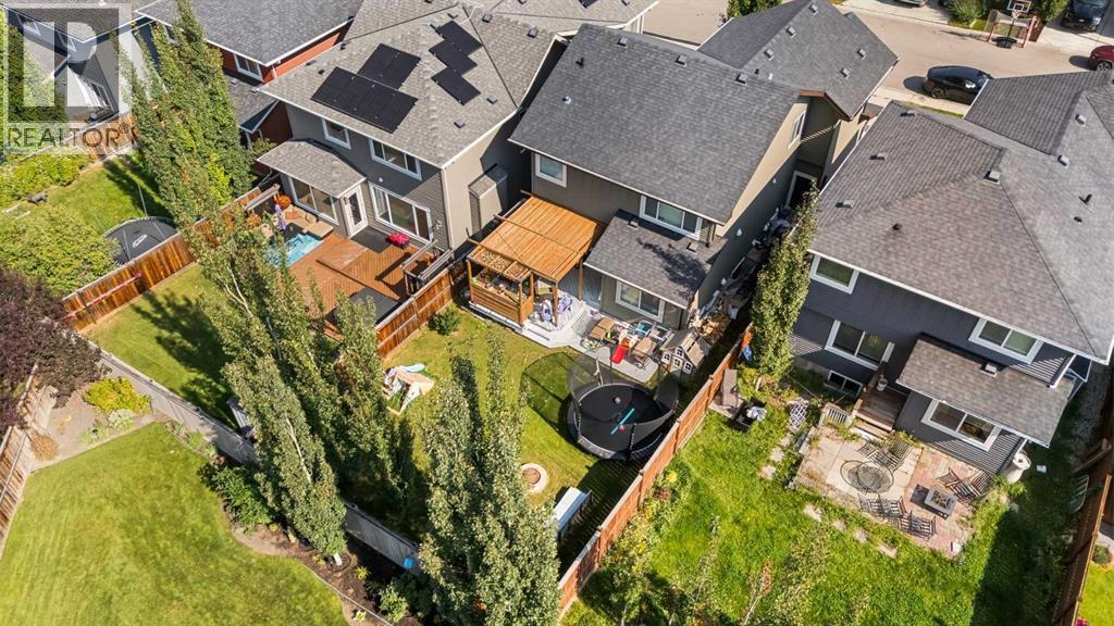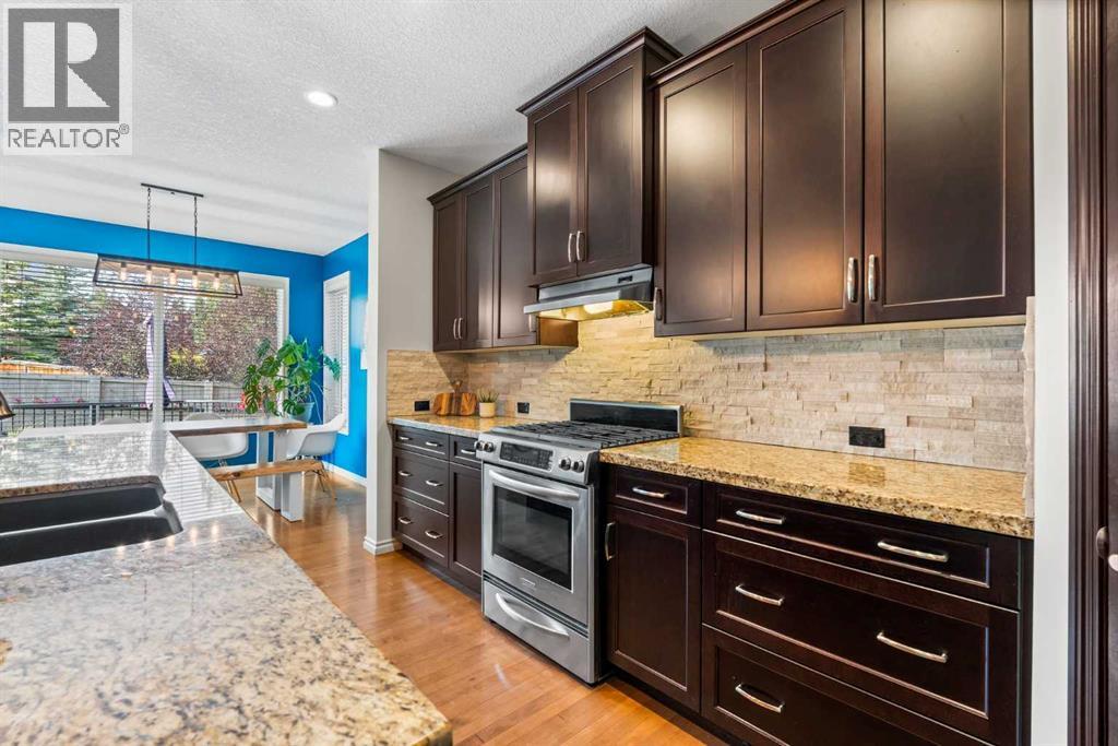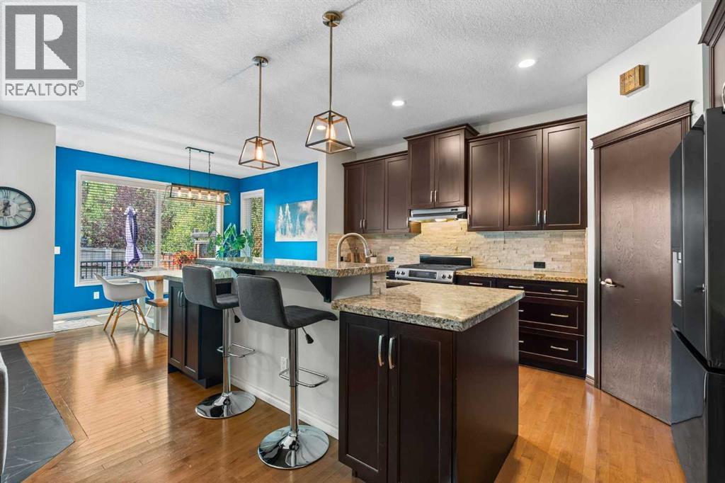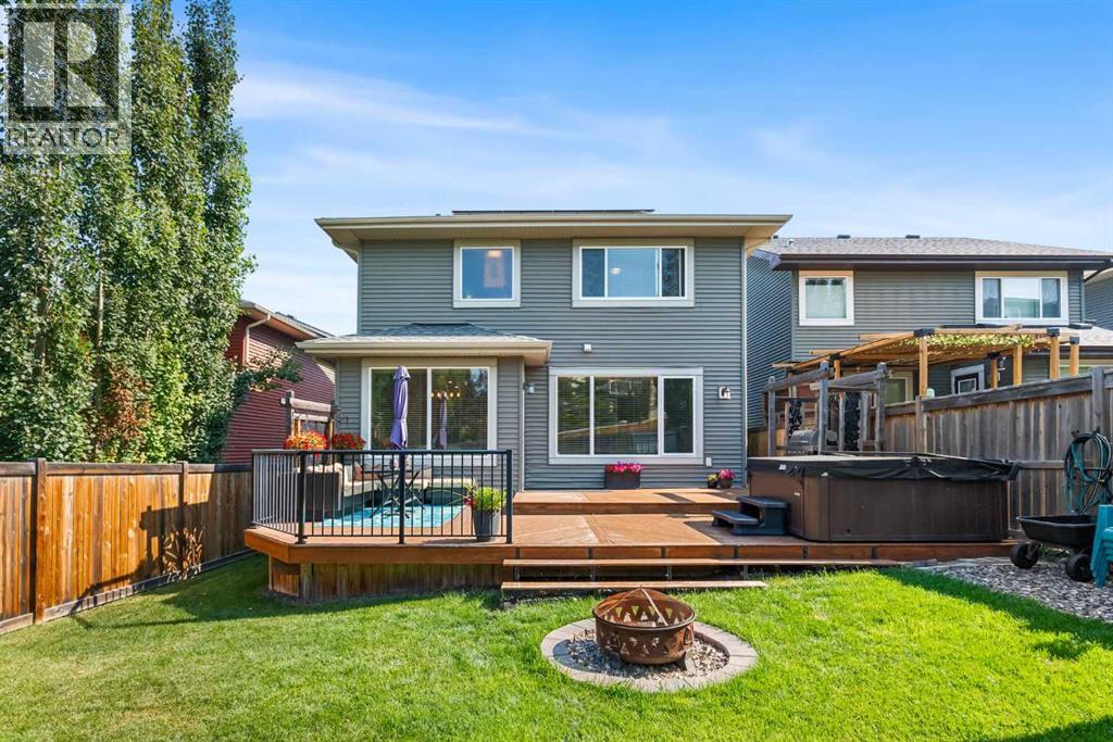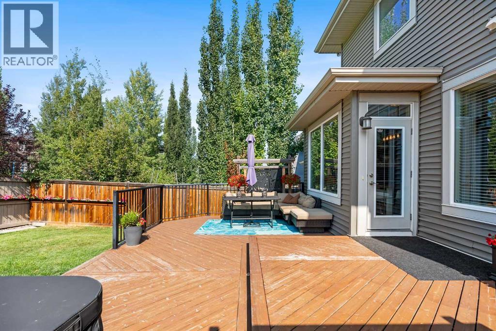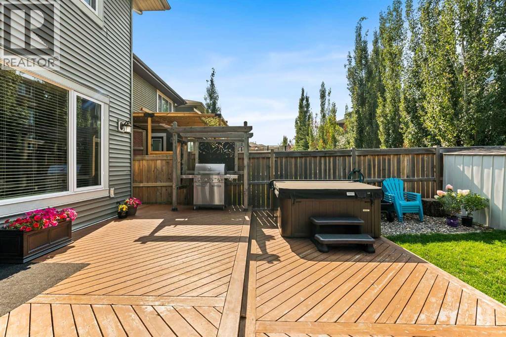 Discover the best of Cochrane living in sought-after Jumping Pound Ridge. Where lifestyle and luxury meet in a family-friendly community, surrounded by scenic pathways and an Environmental Reserve. This immaculate 2-storey home shines with 4 spacious bedrooms, a dedicated home office, and a versatile bonus room. From the moment you step inside, rich hardwood floors set the tone, leading you to a sun-filled open floor plan that feels both warm and inviting. A main level office provides the perfect space for work or study, while the chef’s kitchen impresses with stainless steel appliances, granite counters, espresso cabinetry, and an updated backsplash. Entertain with ease in the dining area that flows seamlessly onto an oversized west-facing deck—ideal for summer evenings and private backyard gatherings. With your immaculate landscaping, fire pit area, and hot tub, you can enjoy every season. Upstairs, retreat to a serene primary suite with a soaker tub, dual vanity, and walk-in closet, complemented by two generous bedrooms and a huge bonus room, with beautiful morning sunlight. The fully finished basement adds even more living space with a rec area, additional bedroom, and full bath. Thoughtful upgrades throughout include Hunter Douglas window coverings, high-end solar panel system, Gemstone lights, a new fridge, dishwasher, and hot water tank, plus a heated garage with storage and workbench. With updated flooring, hardwood stairs, and designer light fixtures, this home truly checks every box. (id:53676)