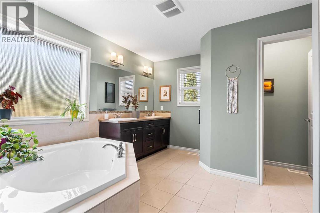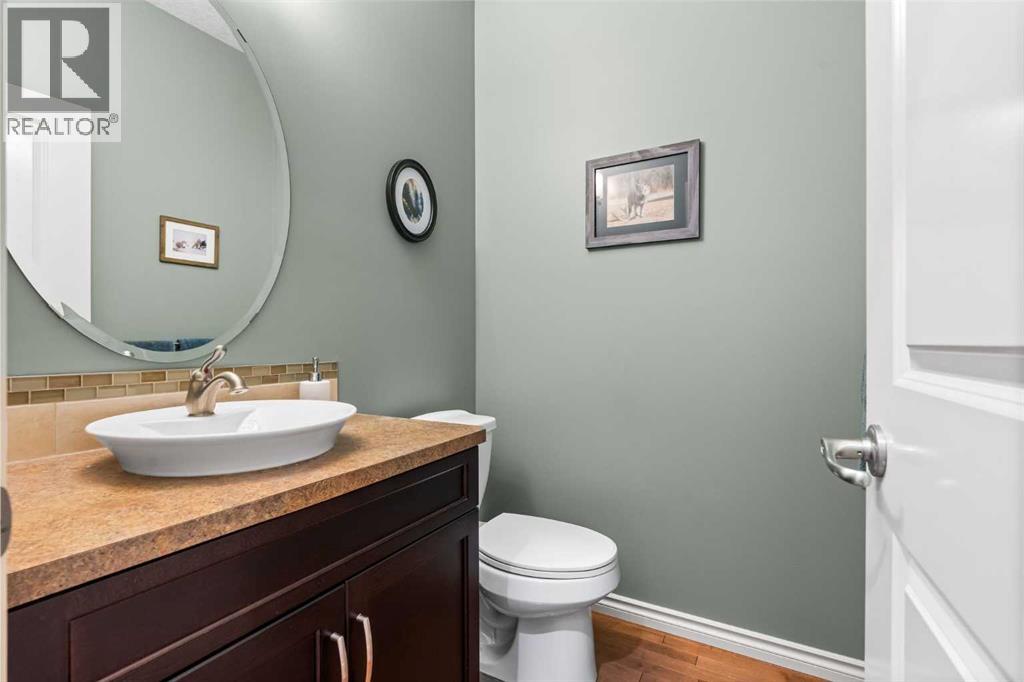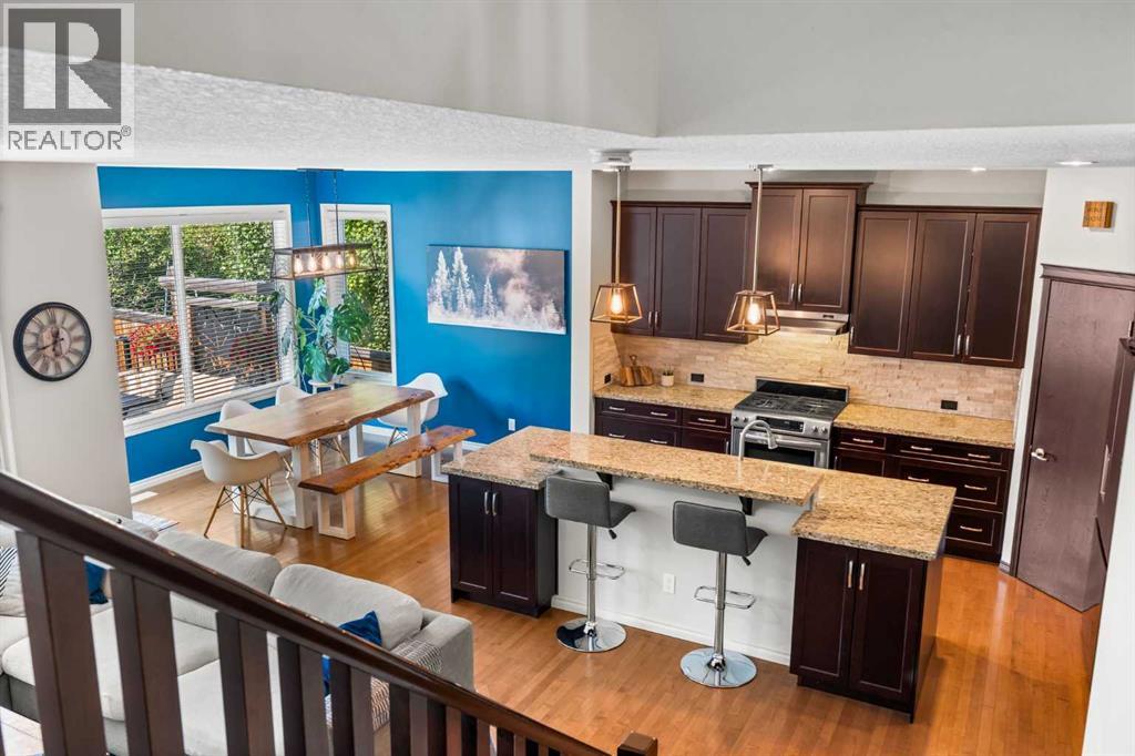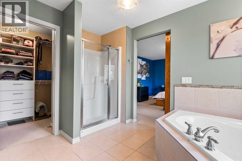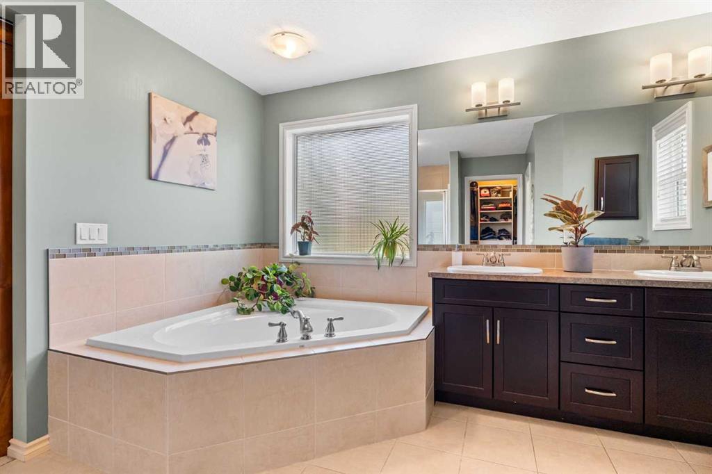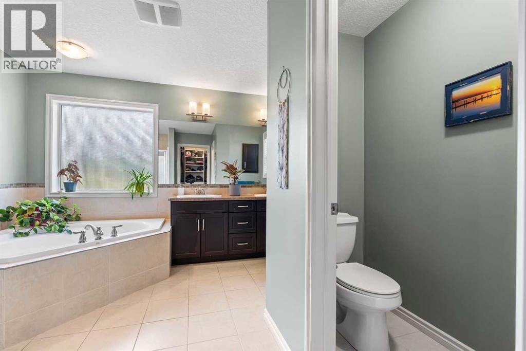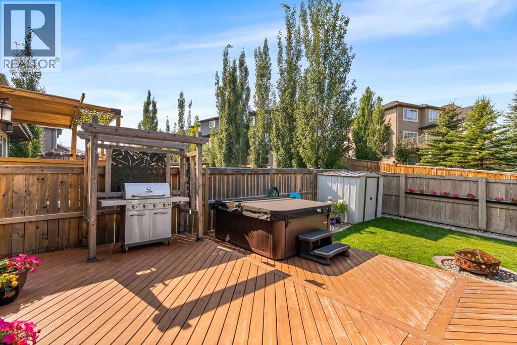 Discover the best of Cochrane living in sought-after Jumping Pound Ridge. Where lifestyle and luxury meet in a family-friendly community, surrounded by scenic pathways and an Environmental Reserve. This immaculate 2-storey home shines with 4 spacious bedrooms, a dedicated home office, and a versatile bonus room. From the moment you step inside, rich hardwood floors set the tone, leading you to a sun-filled open floor plan that feels both warm and inviting. A main level office provides the perfect space for work or study, while the chef’s kitchen impresses with stainless steel appliances, granite counters, espresso cabinetry, and an updated backsplash. Entertain with ease in the dining area that flows seamlessly onto an oversized west-facing deck—ideal for summer evenings and private backyard gatherings. With your immaculate landscaping, fire pit area, and hot tub, you can enjoy every season. Upstairs, retreat to a serene primary suite with a soaker tub, dual vanity, and walk-in closet, complemented by two generous bedrooms and a huge bonus room, with beautiful morning sunlight. The fully finished basement adds even more living space with a rec area, additional bedroom, and full bath. Thoughtful upgrades throughout include Hunter Douglas window coverings, high-end solar panel system, Gemstone lights, a new fridge, dishwasher, and hot water tank, plus a heated garage with storage and workbench. With updated flooring, hardwood stairs, and designer light fixtures, this home truly checks every box. (id:53676)