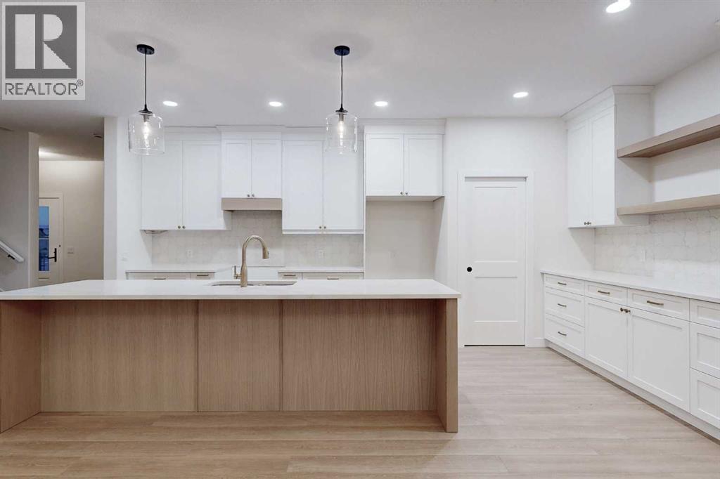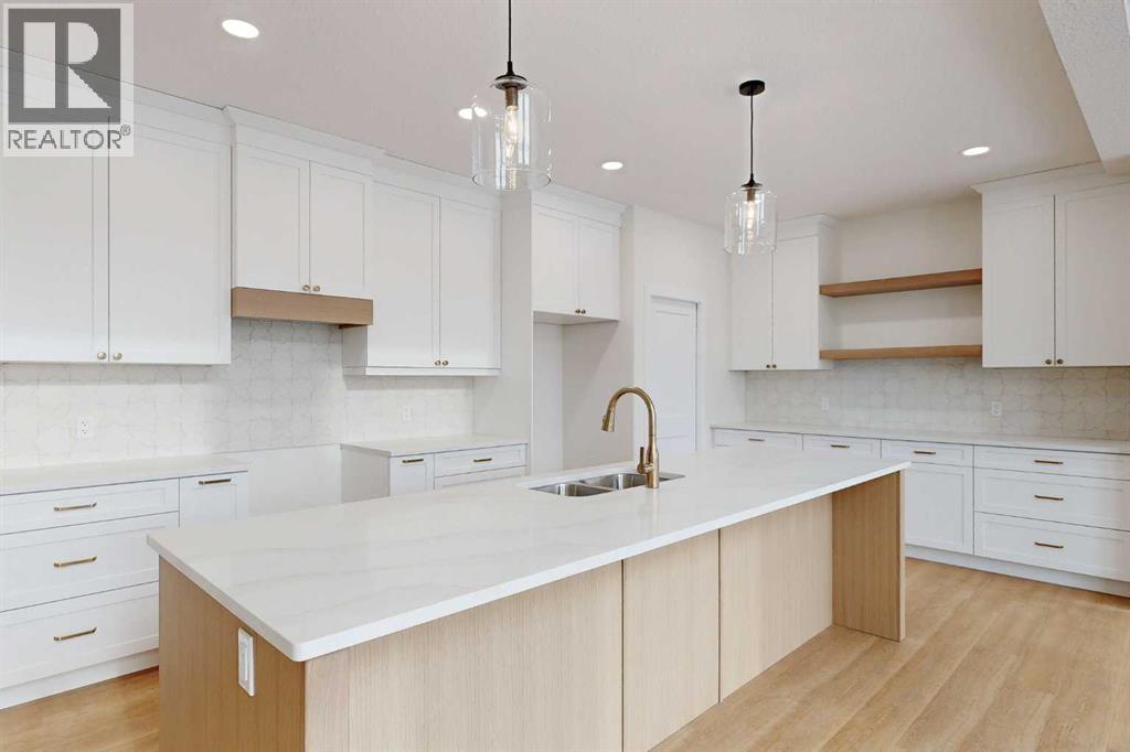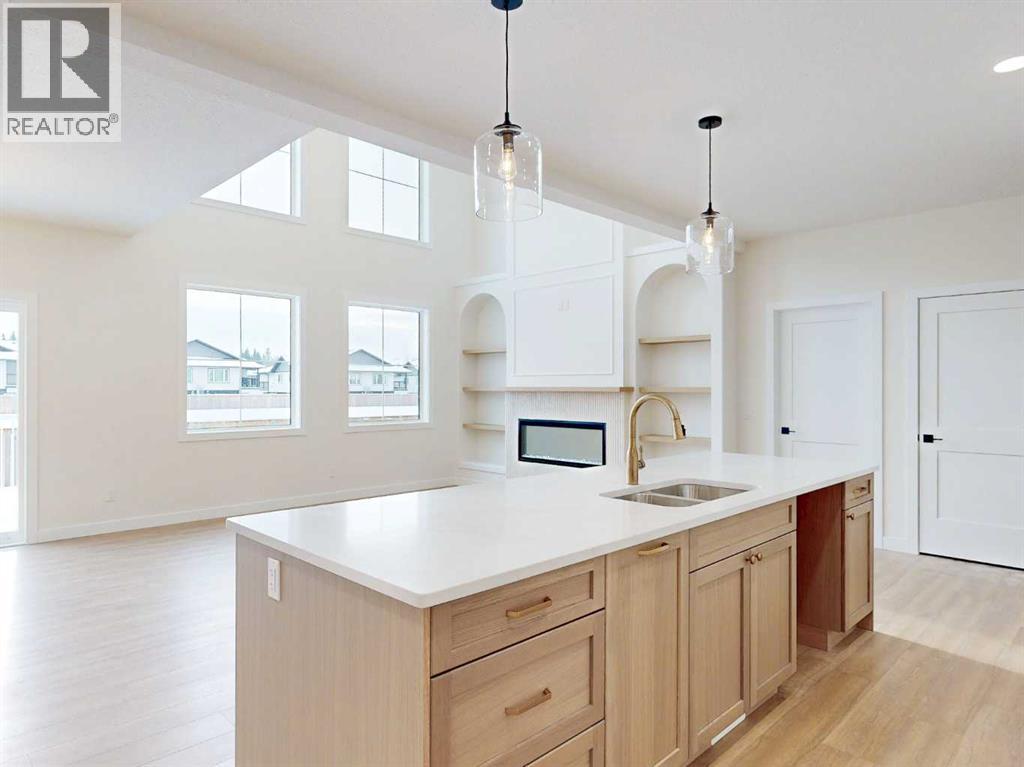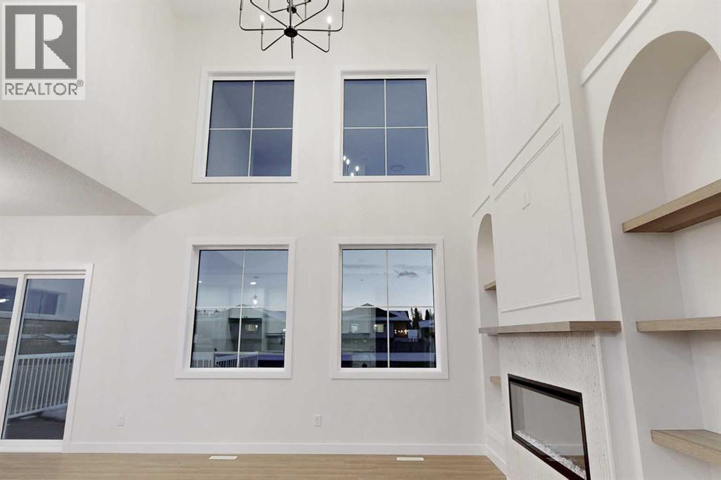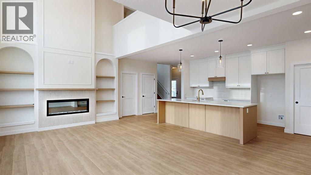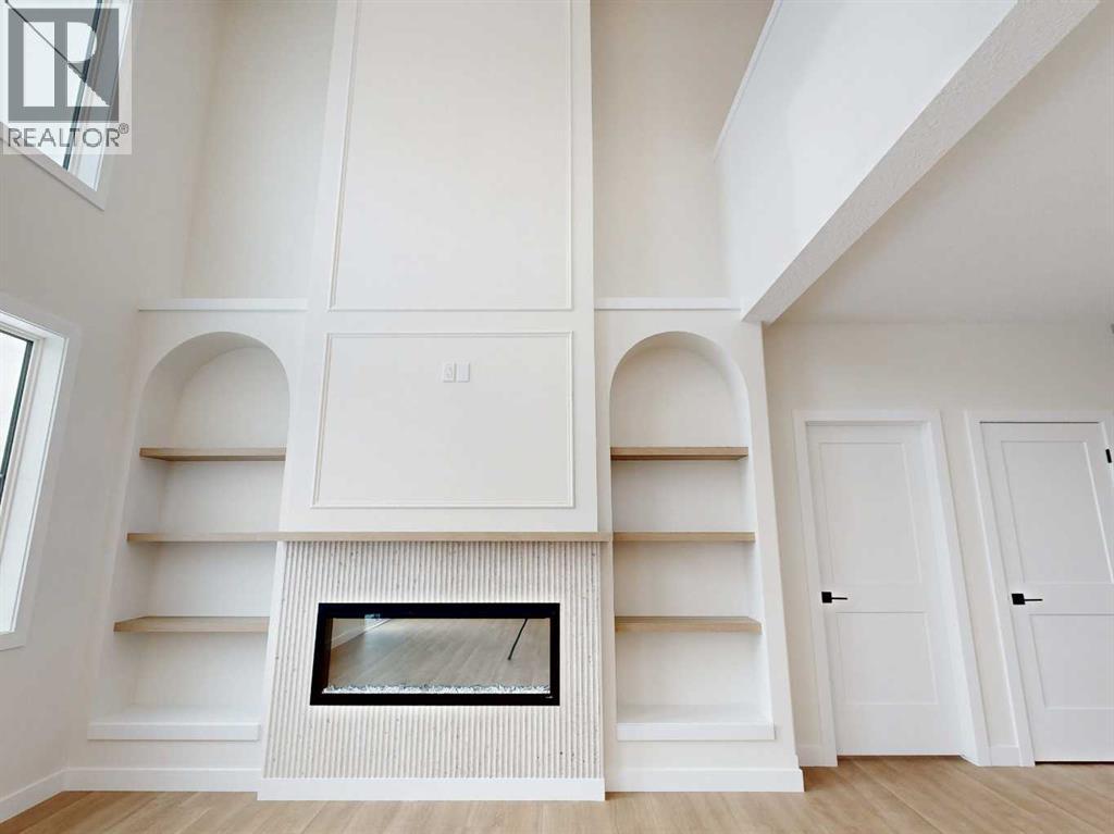 Brand-new, high-end, and truly move-in ready. This 2,004 sq. ft. custom-built home stands out with 3 bedrooms plus a main-floor office, 3 bathrooms, and exceptional attention to detail throughout. The living room makes an immediate statement with soaring ceilings, oversized windows, and a striking floor-to-ceiling fireplace flanked by custom built-in shelving.Designed for both everyday living and entertaining, the kitchen offers generous counter space and a clean, modern layout, while durable vinyl plank flooring runs throughout the home for style and easy maintenance. Upstairs, the primary bedroom retreat features an oversized tiled shower in the ensuite, and all closets include custom built-in organizers for maximum functionality. The conveniently located upper-floor laundry adds to the home’s thoughtful design.Outside, enjoy a large yard fenced on three sides with plenty of room for outdoor living, plus a spacious 26’ x 24’ garage, ideal for vehicles, storage, or a workshop. Premium upgrades include triple-pane energy-efficient windows, quality custom finishes, and a smart, modern layout rarely found in new construction. (id:53676)