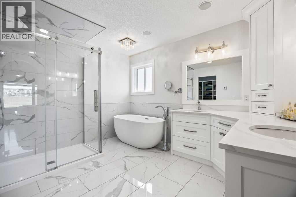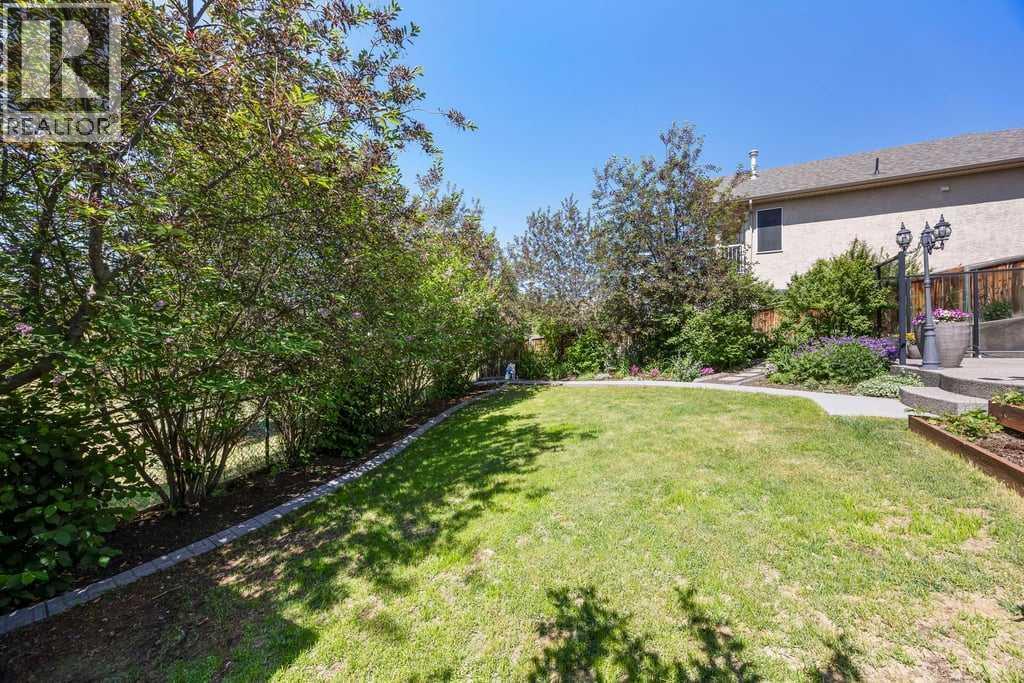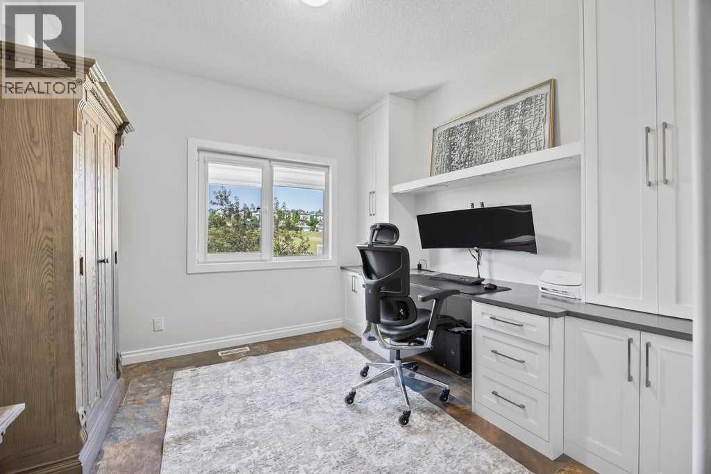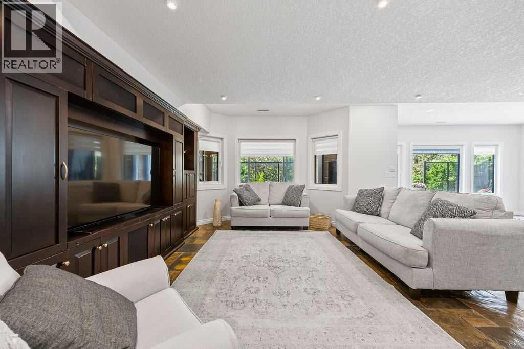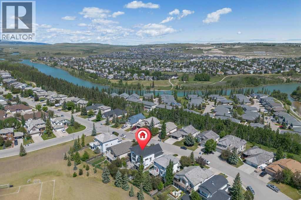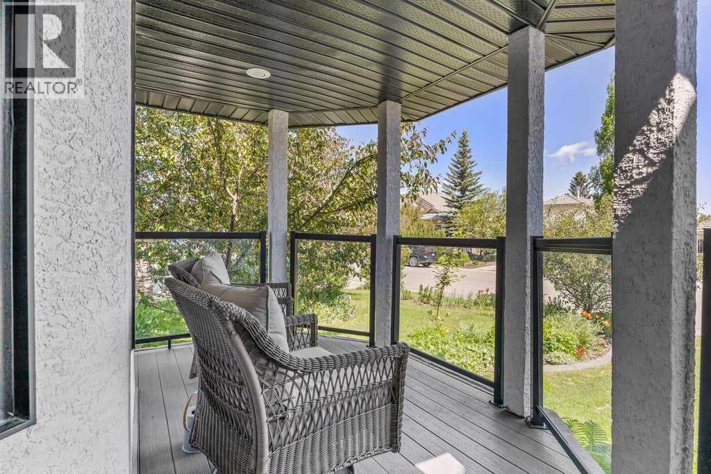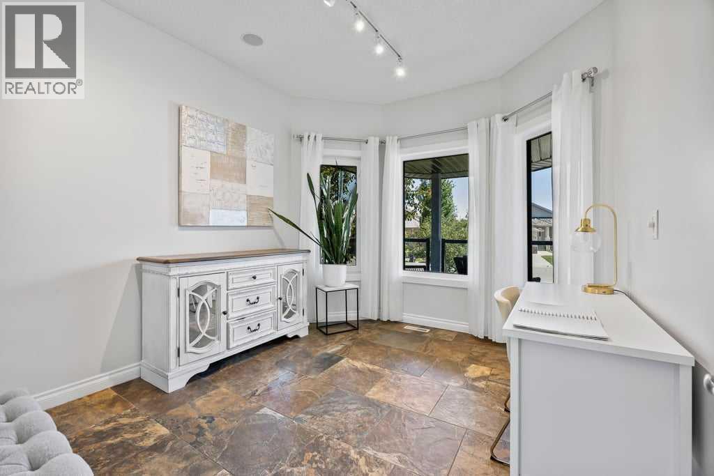 Unparalleled Value In This fully renovated walkout home in a quiet Cochrane cul-de-sac backs directly onto green space with gated access to the community sports field. Surrounded by lush landscaping, gardens, and curb-edged pathways, the 5-bedroom, 3.5-bathroom home offers nearly 4,000 sq ft of thoughtfully upgraded living space—including a fully finished basement designed for versatile indoor-outdoor living.The main floor blends warmth and function, centred around a striking double-sided stone fireplace linking the living and dining areas. The chef-inspired kitchen (2018) features granite counters, a 48” built-in KitchenAid fridge/freezer with ice and water, dual 30” Dacor wall ovens, a 36” Dacor gas cooktop, Bosch ultra-quiet dishwasher, Vent-A-Hood range, and a Panasonic Prestige microwave. Timeless cabinetry, under-cabinet lighting, and stylish finishes complete the space.Off the entry are two bright offices—perfect for remote work or creative pursuits. One was professionally customized in 2021 with built-in cabinetry and a quartz desk. Rich hardwood floors, large windows, and triple-pane exterior doors (2023) add to the home’s inviting feel. A front porch and powder room near the garage entry offer additional convenience.Upstairs, a vaulted bonus room creates a flexible family zone. The spacious primary suite includes a custom walk-in closet (2018) and a fully renovated ensuite with quartz double vanity, tiled shower, soaker tub, and heated floors. Two additional bedrooms share another beautifully updated full bath.The walkout basement adds in-floor heating, two more bedrooms, a full bathroom, and a kitchenette with under-counter fridge and built-in microwave. Step into the glass-enclosed sunroom (2019) through a 13' sliding door—perfect for morning coffee or quiet evenings overlooking the yard.Additional Features & Upgrades:Roof replaced (2021)Large triple pane windows and new exterior doors (2023), custom blinds & drapes throughout.Two high-efficiency Lennox furnaces with built-in dehumidifiers (2018)Two Comfort Aire 2.5-ton A/C units (2023)NTI condensing boiler & timed hot water recirculation (2018)Oversized insulated garage with 50,000 BTU Big Maxx heater.Widened driveway & rear gate walkway (2020)Curb-Ease concrete edging (2023) around yard.Keter Artisan 7x7 resin shed (2022)Whole-home speaker system with outdoor zones,Kenmore Elite washer/dryer with steam.Located steps from parks, pathways, and everyday amenities, this home combines high-end finishes with peace-of-mind upgrades—offering truly move-in-ready living in one of Cochrane’s most established communities. (id:53676)