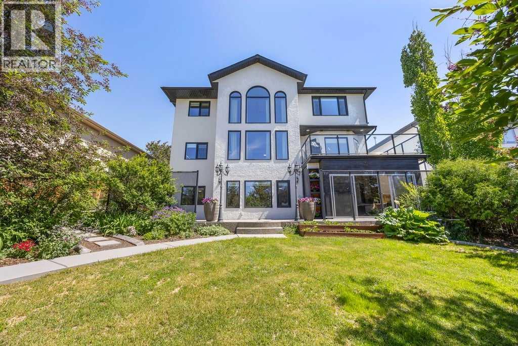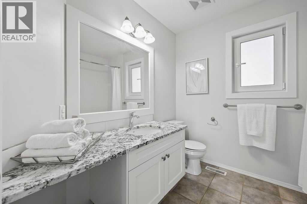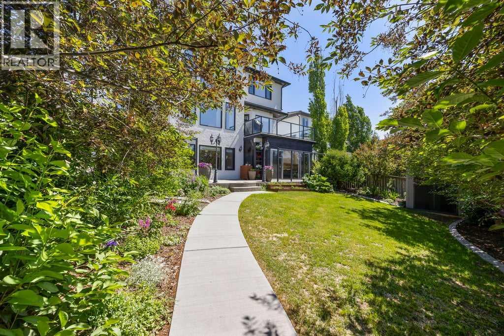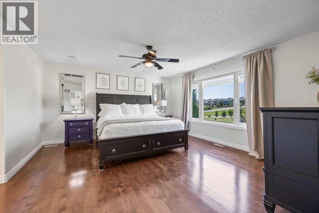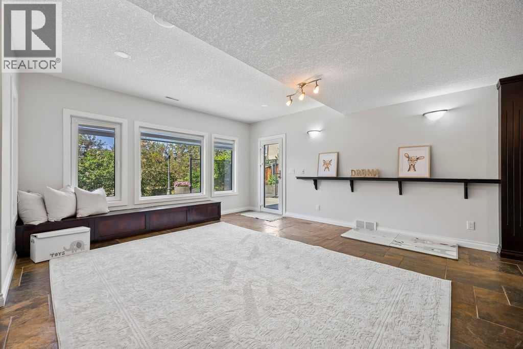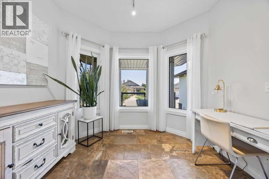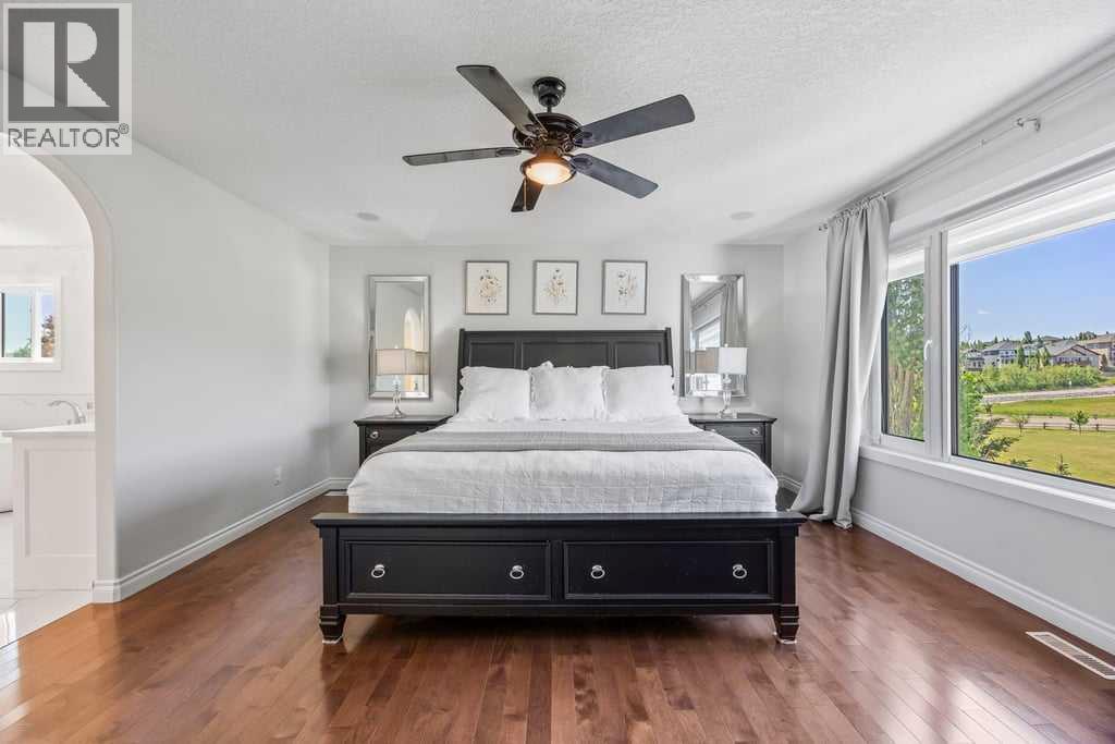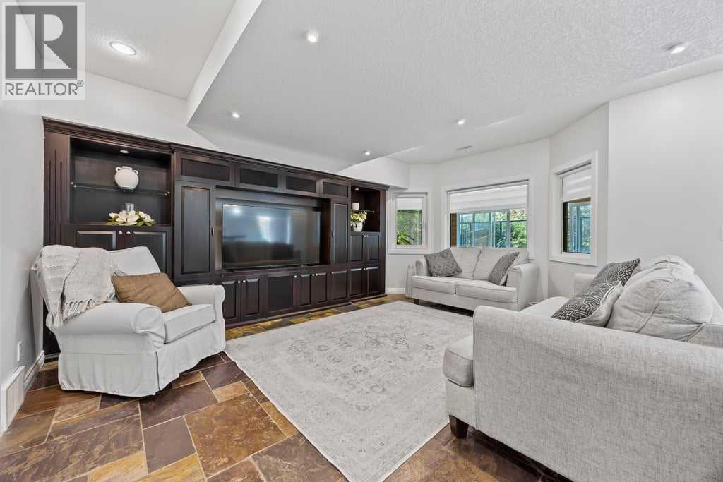 Unparalleled Value In This fully renovated walkout home in a quiet Cochrane cul-de-sac backs directly onto green space with gated access to the community sports field. Surrounded by lush landscaping, gardens, and curb-edged pathways, the 5-bedroom, 3.5-bathroom home offers nearly 4,000 sq ft of thoughtfully upgraded living space—including a fully finished basement designed for versatile indoor-outdoor living.The main floor blends warmth and function, centred around a striking double-sided stone fireplace linking the living and dining areas. The chef-inspired kitchen (2018) features granite counters, a 48” built-in KitchenAid fridge/freezer with ice and water, dual 30” Dacor wall ovens, a 36” Dacor gas cooktop, Bosch ultra-quiet dishwasher, Vent-A-Hood range, and a Panasonic Prestige microwave. Timeless cabinetry, under-cabinet lighting, and stylish finishes complete the space.Off the entry are two bright offices—perfect for remote work or creative pursuits. One was professionally customized in 2021 with built-in cabinetry and a quartz desk. Rich hardwood floors, large windows, and triple-pane exterior doors (2023) add to the home’s inviting feel. A front porch and powder room near the garage entry offer additional convenience.Upstairs, a vaulted bonus room creates a flexible family zone. The spacious primary suite includes a custom walk-in closet (2018) and a fully renovated ensuite with quartz double vanity, tiled shower, soaker tub, and heated floors. Two additional bedrooms share another beautifully updated full bath.The walkout basement adds in-floor heating, two more bedrooms, a full bathroom, and a kitchenette with under-counter fridge and built-in microwave. Step into the glass-enclosed sunroom (2019) through a 13' sliding door—perfect for morning coffee or quiet evenings overlooking the yard.Additional Features & Upgrades:Roof replaced (2021)Large triple pane windows and new exterior doors (2023), custom blinds & drapes throughout.Two high-efficiency Lennox furnaces with built-in dehumidifiers (2018)Two Comfort Aire 2.5-ton A/C units (2023)NTI condensing boiler & timed hot water recirculation (2018)Oversized insulated garage with 50,000 BTU Big Maxx heater.Widened driveway & rear gate walkway (2020)Curb-Ease concrete edging (2023) around yard.Keter Artisan 7x7 resin shed (2022)Whole-home speaker system with outdoor zones,Kenmore Elite washer/dryer with steam.Located steps from parks, pathways, and everyday amenities, this home combines high-end finishes with peace-of-mind upgrades—offering truly move-in-ready living in one of Cochrane’s most established communities. (id:53676)