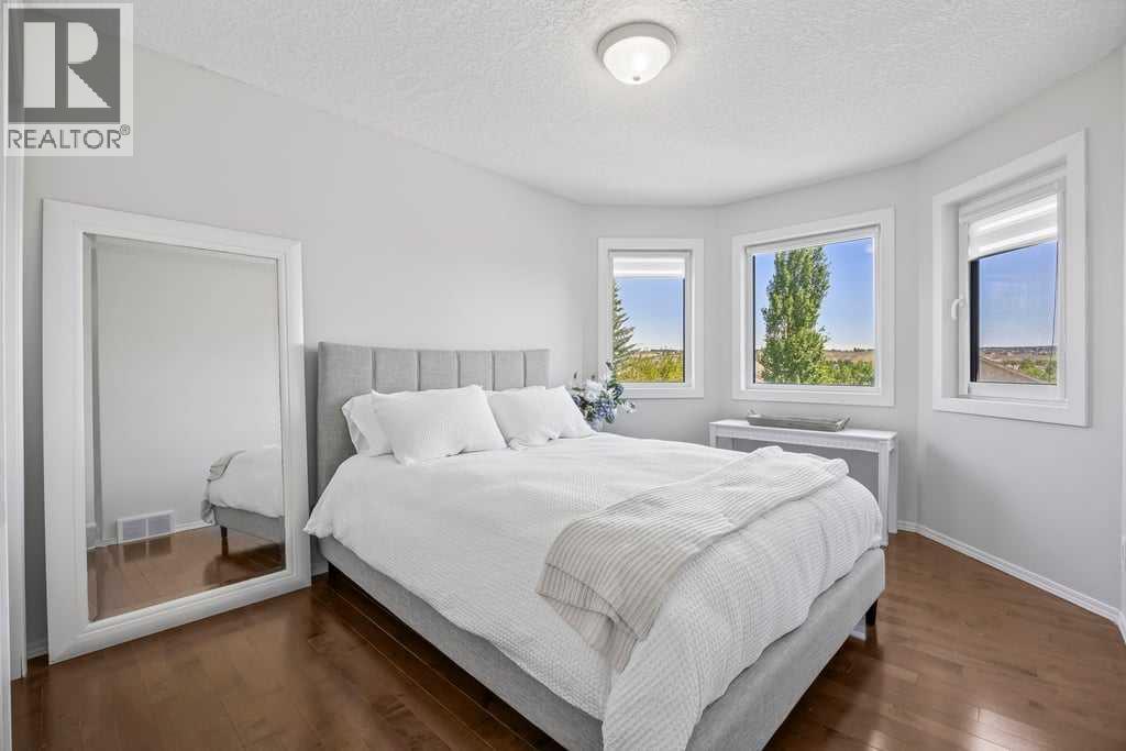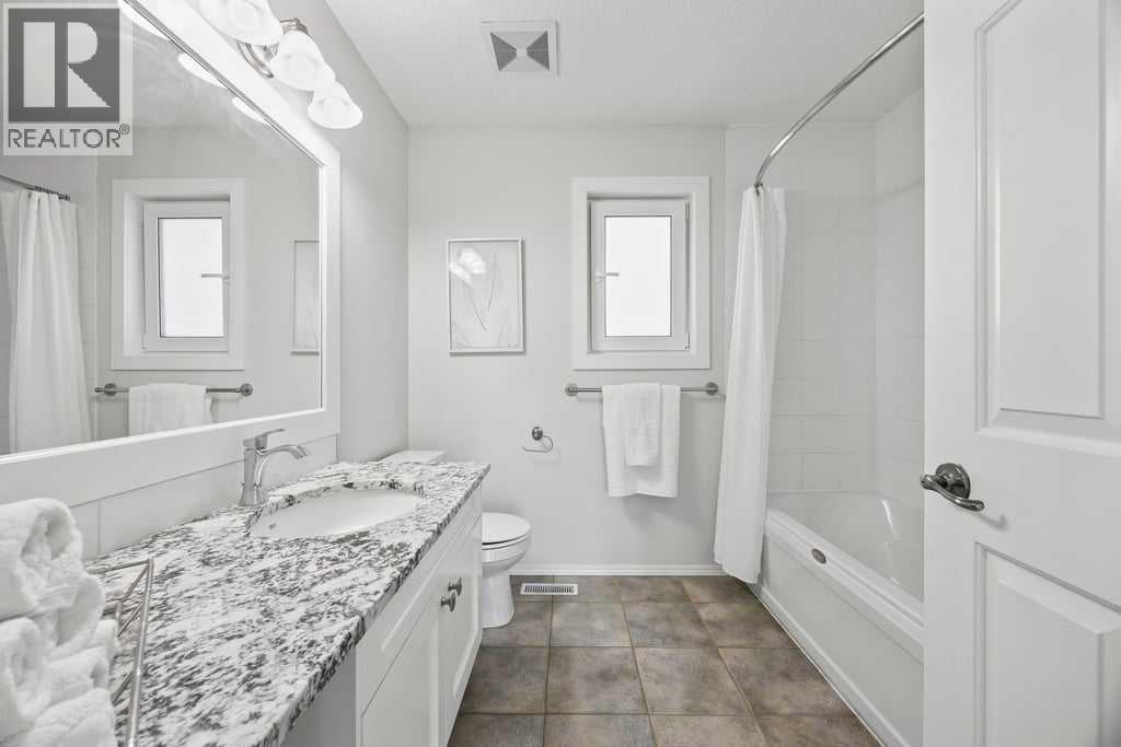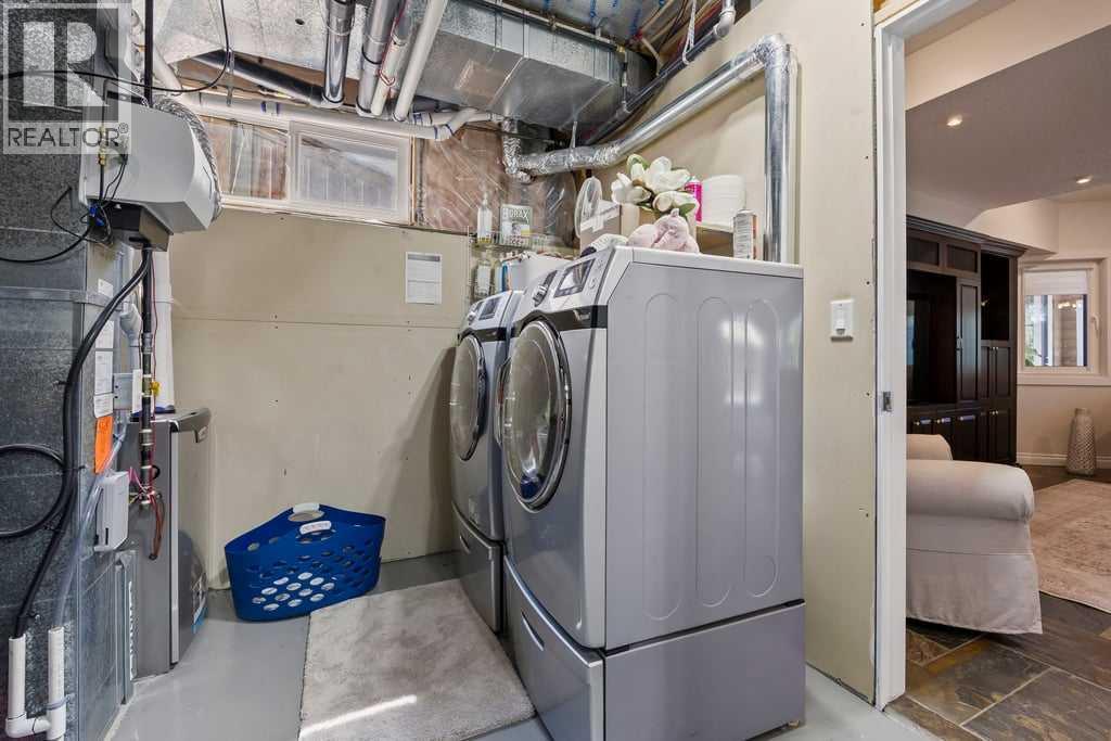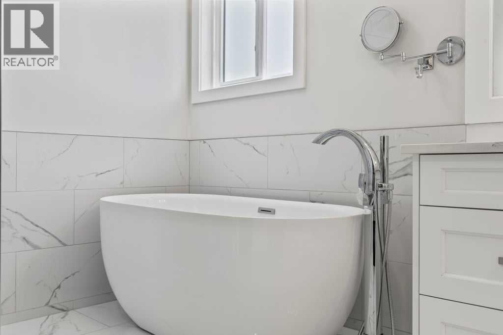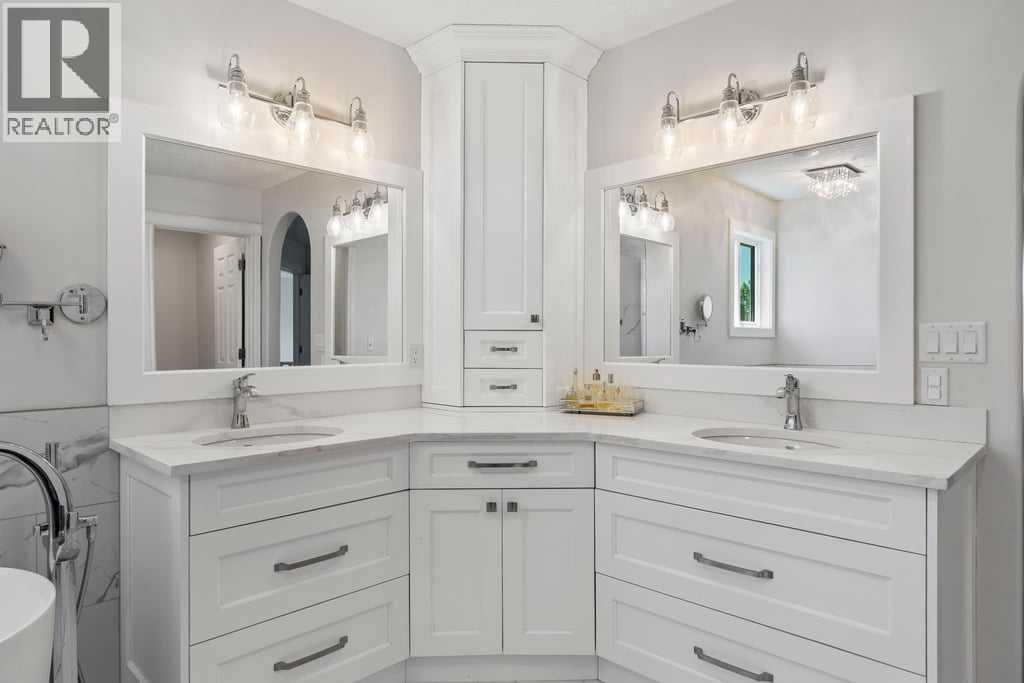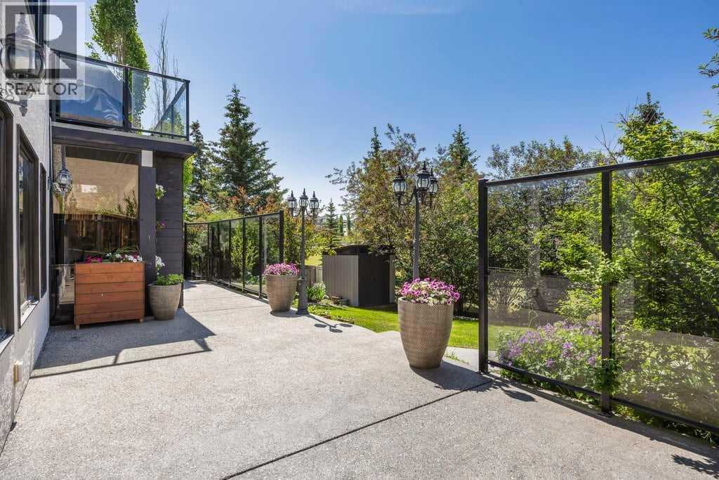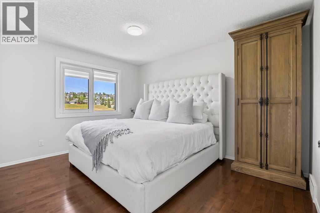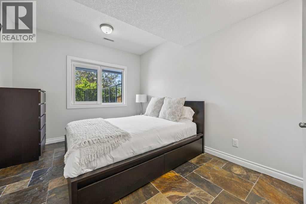 Unparalleled Value In This fully renovated walkout home in a quiet Cochrane cul-de-sac backs directly onto green space with gated access to the community sports field. Surrounded by lush landscaping, gardens, and curb-edged pathways, the 5-bedroom, 3.5-bathroom home offers nearly 4,000 sq ft of thoughtfully upgraded living space—including a fully finished basement designed for versatile indoor-outdoor living.The main floor blends warmth and function, centred around a striking double-sided stone fireplace linking the living and dining areas. The chef-inspired kitchen (2018) features granite counters, a 48” built-in KitchenAid fridge/freezer with ice and water, dual 30” Dacor wall ovens, a 36” Dacor gas cooktop, Bosch ultra-quiet dishwasher, Vent-A-Hood range, and a Panasonic Prestige microwave. Timeless cabinetry, under-cabinet lighting, and stylish finishes complete the space.Off the entry are two bright offices—perfect for remote work or creative pursuits. One was professionally customized in 2021 with built-in cabinetry and a quartz desk. Rich hardwood floors, large windows, and triple-pane exterior doors (2023) add to the home’s inviting feel. A front porch and powder room near the garage entry offer additional convenience.Upstairs, a vaulted bonus room creates a flexible family zone. The spacious primary suite includes a custom walk-in closet (2018) and a fully renovated ensuite with quartz double vanity, tiled shower, soaker tub, and heated floors. Two additional bedrooms share another beautifully updated full bath.The walkout basement adds in-floor heating, two more bedrooms, a full bathroom, and a kitchenette with under-counter fridge and built-in microwave. Step into the glass-enclosed sunroom (2019) through a 13' sliding door—perfect for morning coffee or quiet evenings overlooking the yard.Additional Features & Upgrades:Roof replaced (2021)Large triple pane windows and new exterior doors (2023), custom blinds & drapes throughout.Two high-efficiency Lennox furnaces with built-in dehumidifiers (2018)Two Comfort Aire 2.5-ton A/C units (2023)NTI condensing boiler & timed hot water recirculation (2018)Oversized insulated garage with 50,000 BTU Big Maxx heater.Widened driveway & rear gate walkway (2020)Curb-Ease concrete edging (2023) around yard.Keter Artisan 7x7 resin shed (2022)Whole-home speaker system with outdoor zones,Kenmore Elite washer/dryer with steam.Located steps from parks, pathways, and everyday amenities, this home combines high-end finishes with peace-of-mind upgrades—offering truly move-in-ready living in one of Cochrane’s most established communities. (id:53676)