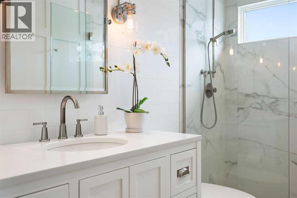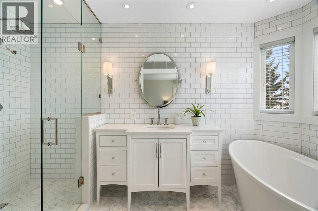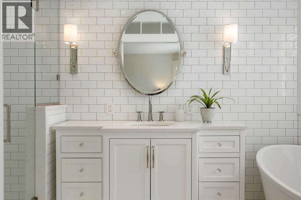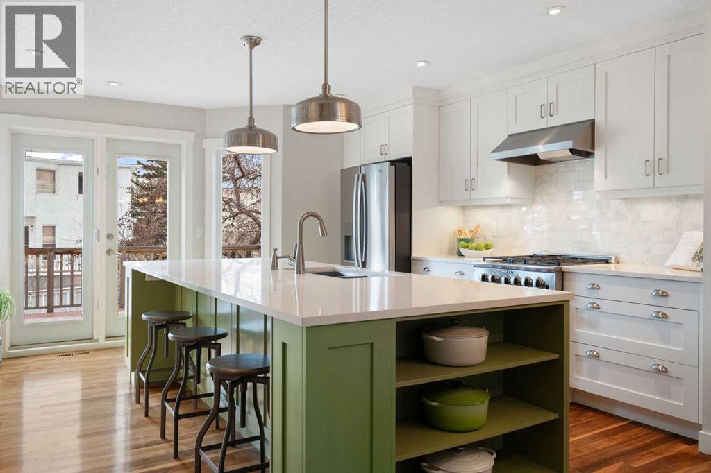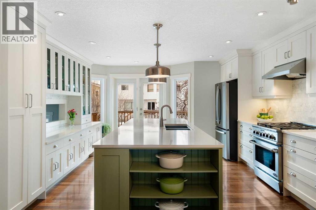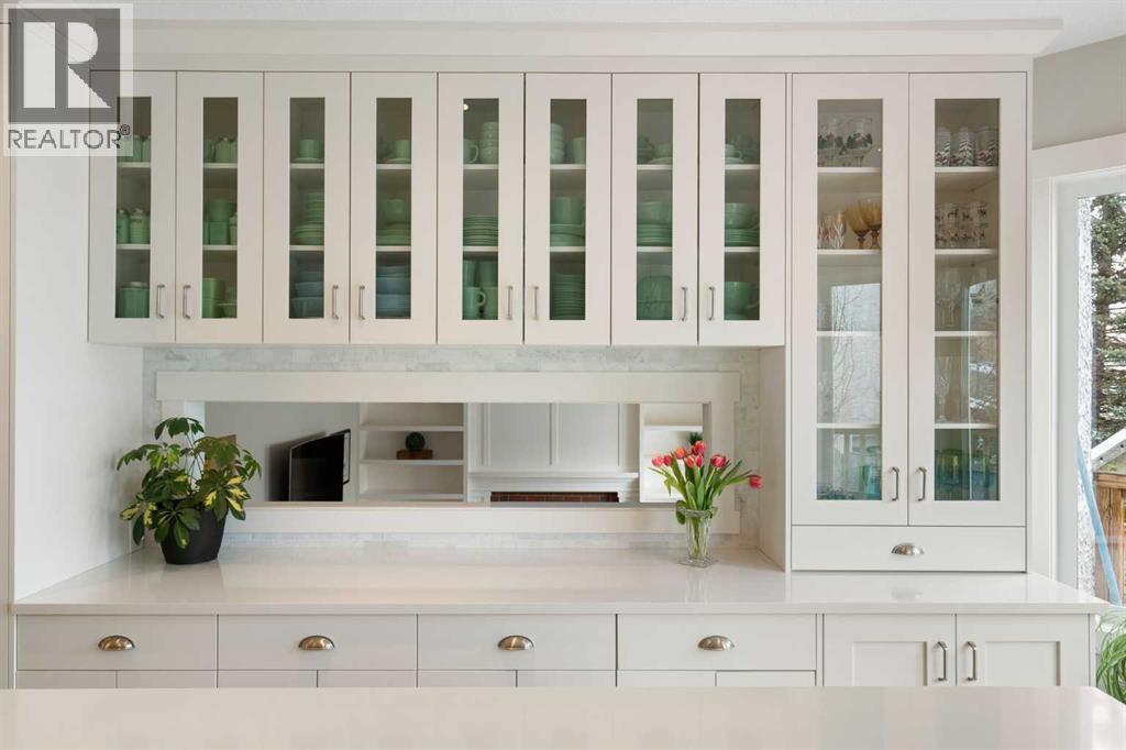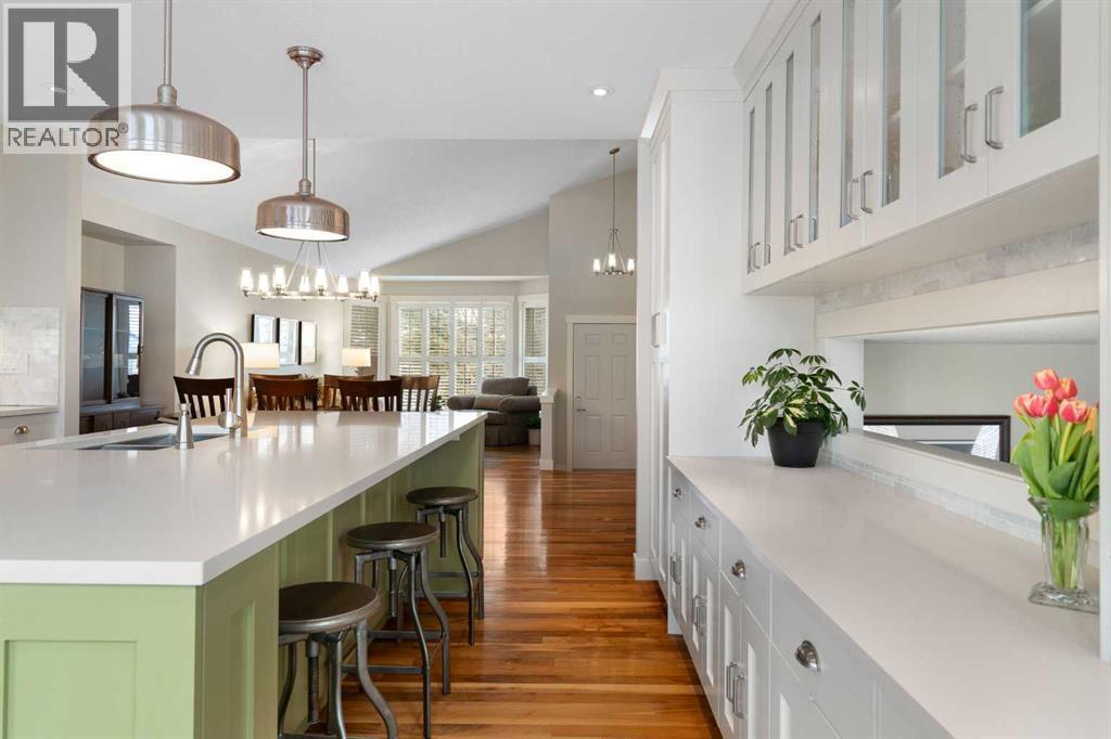 Nestled on a quiet cul-de-sac in the heart of Signal Hill, this exceptional home has been extensively renovated to offer a blend of timeless design, custom craftsmanship + everyday comfort. Thoughtfully curated with a focus on enduring quality, the home is distinguished by its extensive custom millwork, beautifully tailored built-ins, and rich walnut hardwood flooring. Central air conditioning adds an extra layer of comfort, keeping the home cool and inviting throughout the warm summer months. From the moment you enter, vaulted ceilings and large windows adorned with classic shutters create a sense of light and elegance. The formal living and dining rooms are gracious in scale, designed for both intimate evenings and larger gatherings, while the refined finishes throughout lend the home a quiet sophistication. The kitchen has been beautifully reimagined with impeccable attention to detail. Custom white ceiling height cabinetry is paired with quartz countertops, stainless steel appliances, a gas range, and a substantial centre island designed for casual dining and conversation. A practical built-in pantry and hutch with glass-inlay cabinetry provide both functional and architectural interest. With direct access to the expansive deck and south-facing backyard, the kitchen transitions effortlessly into the home’s outdoor living space. The upper level is anchored by a beautifully appointed primary retreat. The spacious walk-in closet features functional organization, while the ensuite bath offers the feel of a private spa with heated floors, a freestanding soaker tub, corner glass shower, and exquisite tilework. Two additional bedrooms complete the upper level and provide flexibility for guests, family, or a home office. The beautifully renovated 3-piece bathroom has been finished with the same elevated attention to detail, featuring custom cabinetry, meticulous tilework, refined fixtures, and a spacious glass-enclosed shower - creating a welcoming space for family or g uests. On the lower level, custom millwork continues to define the home’s character. The inviting family room is warmed by a fireplace and framed by rich walnut floors and beautifully crafted built-in bookcases, creating a warm and distinguished setting for relaxing or entertaining. A combined powder room and laundry room is thoughtfully positioned on this level for everyday convenience. The basement offers versatility, with a spacious recreation room ideal for movie nights, fitness, or games, along with a fourth bedroom perfectly suited for guests or a private office. A large crawlspace provides an abundance of space to keep everything neatly tucked away. The drywalled garage features a newer garage door + app controlled LiftMaster system. This home is moments from shopping, dining, LRT Station, downtown, schools, parks, tennis/pickleball courts. Elegant and impeccably finished, this is a home that offers both beauty & substance in equal measure. (id:53676)