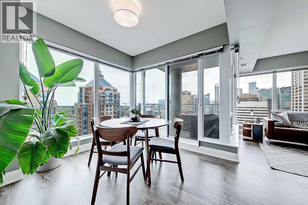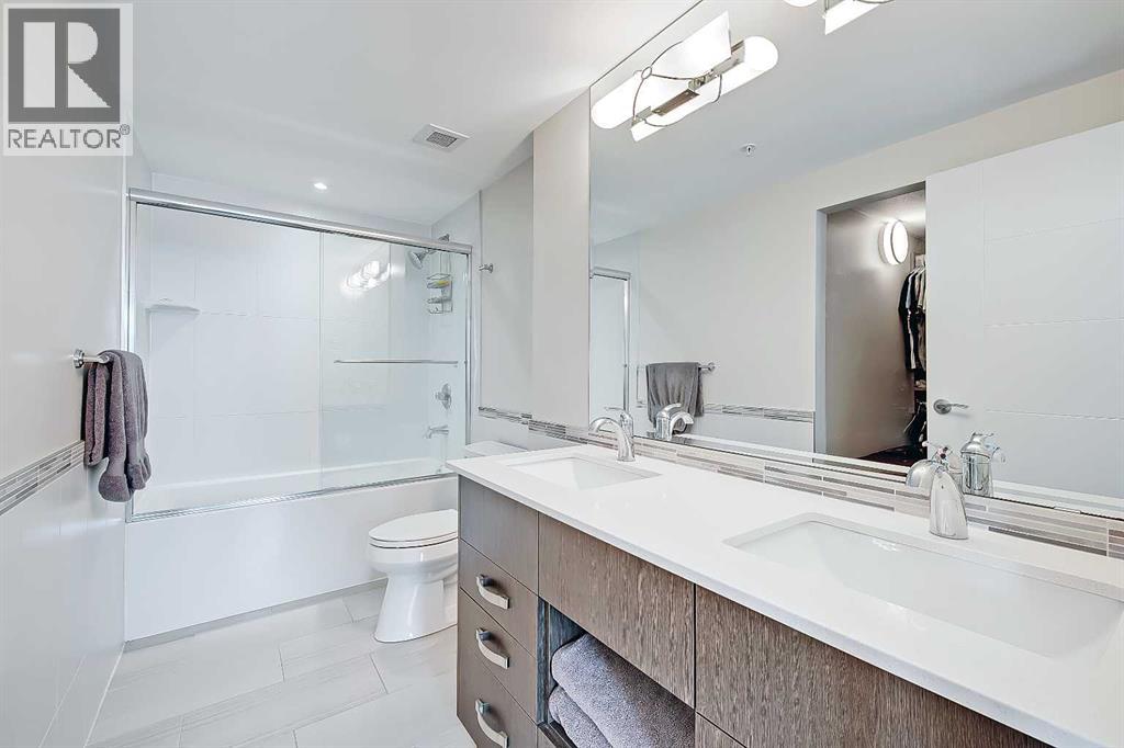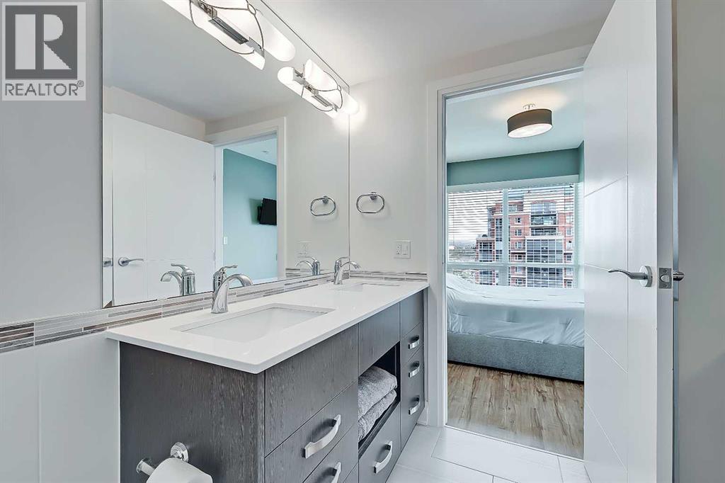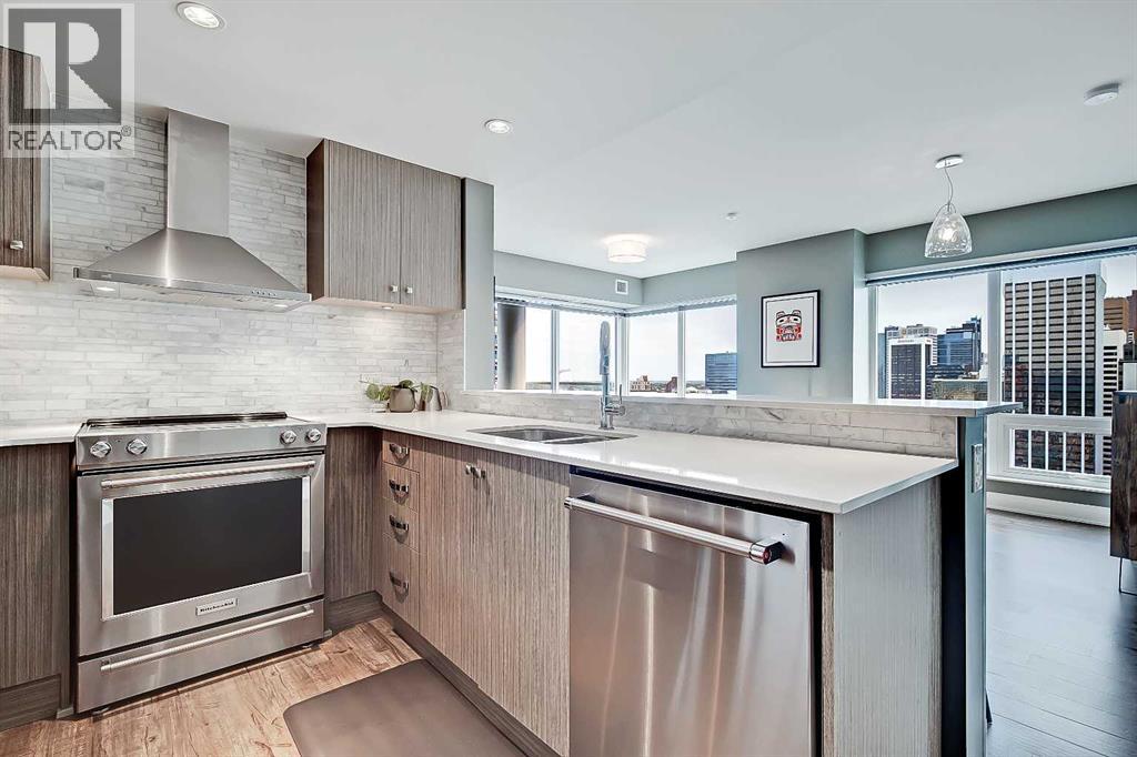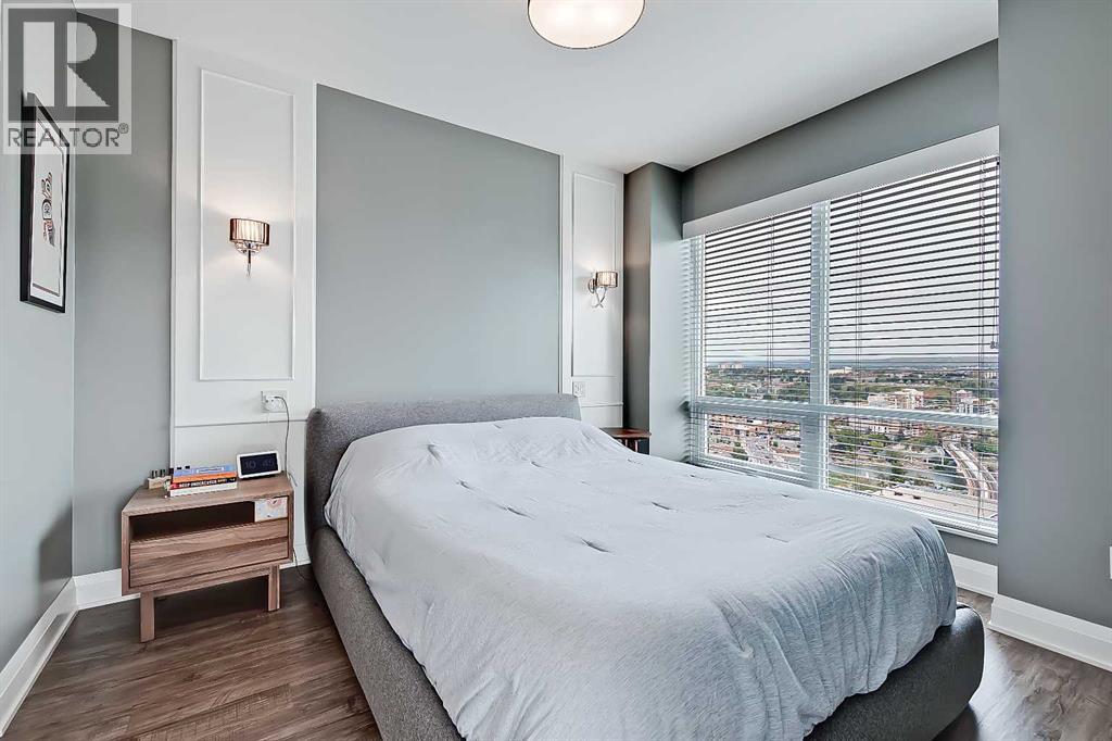 *VISIT MULTIMEDIA LINK FOR FULL DETAILS INCLUDING IMMERSIVE 360 VT & FLOORPLANS!** Wow, check out this 2 bed & den/2bath NE CORNER UNIT with PHENOMENAL RIVER & CITY VIEWS! There are only 4 floors in the upscale Vogue building that were specially customized for Bedouin Suites, and this is one of them! EXCLUSIVE ‘BEDOUIN’ FEATURES include upgraded hallways and common areas, as well as INCREDIBLE UNIT UPGRADES like upgraded appliances & lighting including dimmers throughout, custom bedroom panelling including convenience plugs and sconce lighting, upgraded bathrooms with tile wainscoting and glass shower doors, built-in closet organizers throughout, built-in walnut entertainment units, a Smart Sensor energy management system for the eco-minded buyer and MORE! Highly upgraded, this open-concept condo features floor-to-ceiling windows and upgraded luxury vinyl plank flooring throughout. Contemporary woodgrain cabinets line the kitchen w/ modern hardware & under cabinet lighting, quartz counters, a marble-style tile backsplash, dual basin undermount S/S sink, & upgraded stainless steel appliances, including a chimney-style hoodfan. Breakfast bar seating adds a casual dining option, or sit down for meals in the dining room with 2x walls of windows. The open main living area also features floor-to-ceiling windows and an extensive balcony w/ gas line for a BBQ & with the most stunning views of downtown Calgary and the Bow River. A split floorplan is great for privacy between the bedrooms. The large primary suite features large windows w/ panoramic views, custom paneling with sconce lighting and convenince plugs, a generous closet w/ built-in organizers, & a 5-pc ensuite w/ tile flooring, extended modern vanity with dual undermount sinks, modern faucets, quartz countertops, tile backsplash, & fully tiled tub/shower w/ upgraded glass door. The 2nd bedroom features a generous sized closet & large windows w/ panoramic views. It has quick access to the main 3-pc bath w/ tile floo rs & an oversized glass shower w/ full height tile. Complete w/ central AC, in-suite laundry, titled indoor parking & a private storage locker, and 3 mounted TVs included! VOGUE is a high-end building w/ executive amenities including a gorgeous lobby, full-time concierge, fitness room, games room, large party room w/ kitchen, owners lounge, meeting room, and more. Surrounded by parks, transit, the LRT, shopping & more, & within easy walking distance to the downtown core & all Kensington shops & services – this location offers the best urban lifestyle in the Downtown Commercial Core! ATTENTION INVESTORS - THIS UNIT IS TENANT OCCUPIED @ $2900/MONTH UNTIL MAY 31, 2026 AND THE TENANT WOULD BE WILLING TO STAY LONGER IF WANTED. *Multiple Units & Floorplans Available in this Building - Visit Multimedia Links for Full Details!* (id:53676)