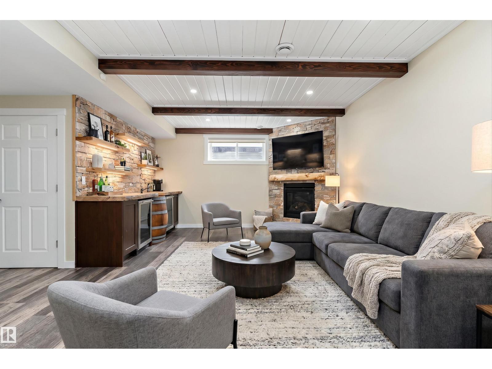 Step into luxury in this impeccably finished residence where craftsmanship meets sophisticated design. The open-concept main floor creates an inviting atmosphere, highlighted by the flow of engineered hardwood and premium tile. The stylish kitchen beckons with granite countertops and stainless appliances. Retreat upstairs to a sprawling bonus room with a cozy gas fireplace and a primary suite featuring a luxurious 5-piece ensuite. The finished basement is an entertainer's dream, complete with a modern bath, wet bar with beverage cooler, and a second fireplace. Discover the unique charm of a hidden room - perfect for a wine cellar or hobby space. The heated triple attached garage features custom cabinetry. Step outside to your expansive deck, an ideal backdrop for summer gatherings. Complete with A/C, water softener, and on-demand hot water, this home is truly move-in ready. Don’t miss this incredible opportunity to own a home where every detail has been thoughtfully curated! (id:53676)