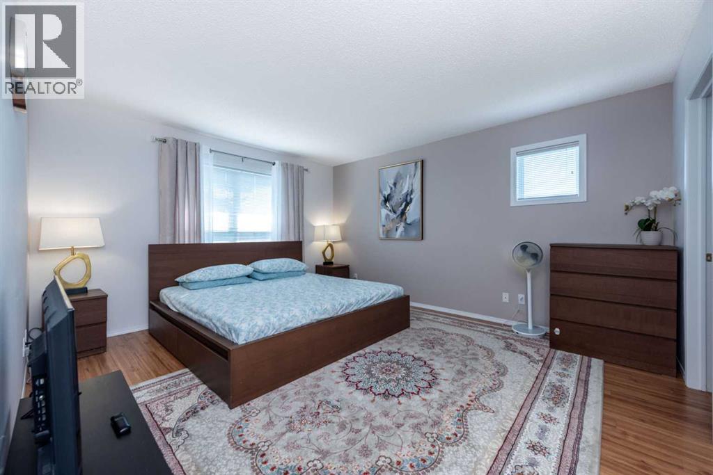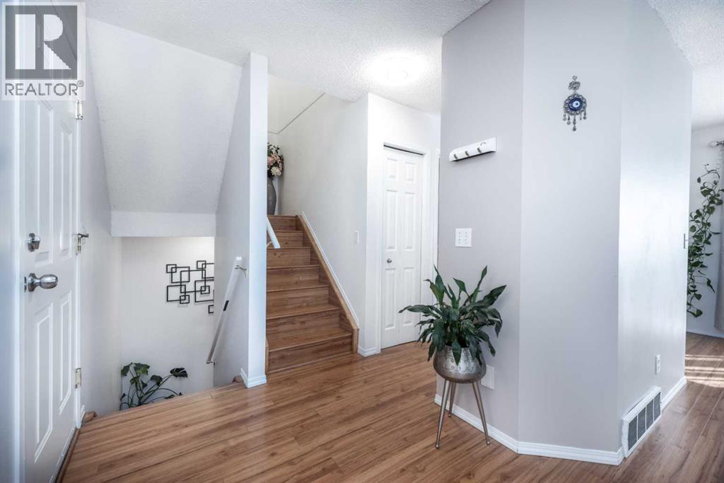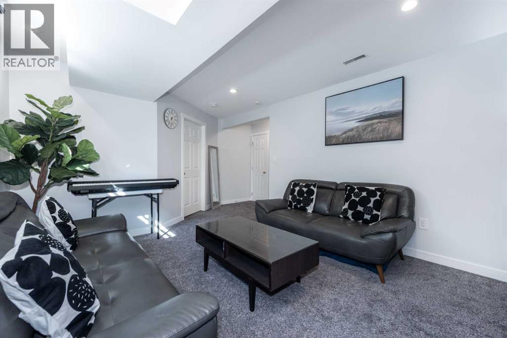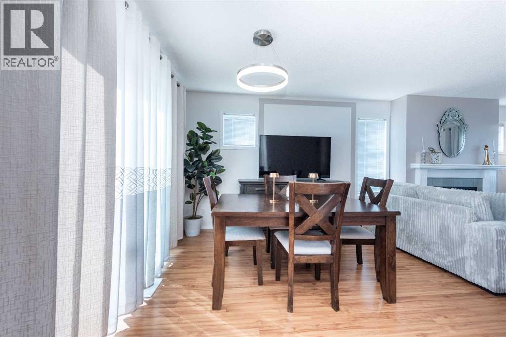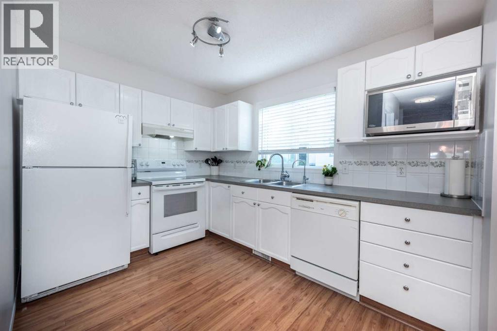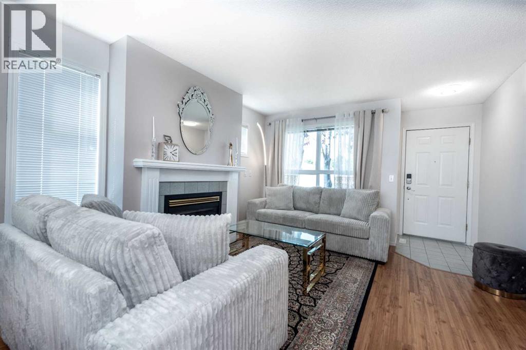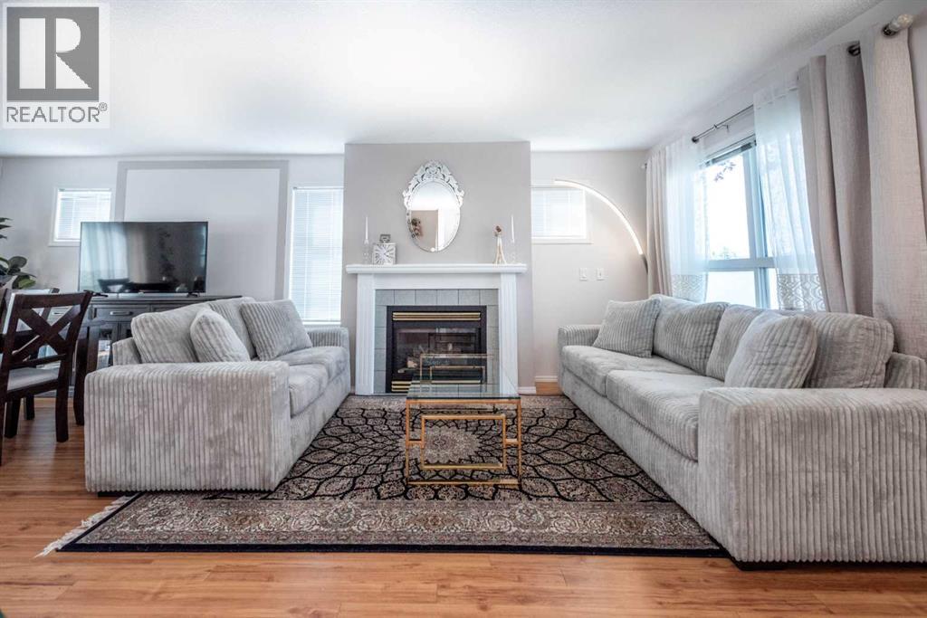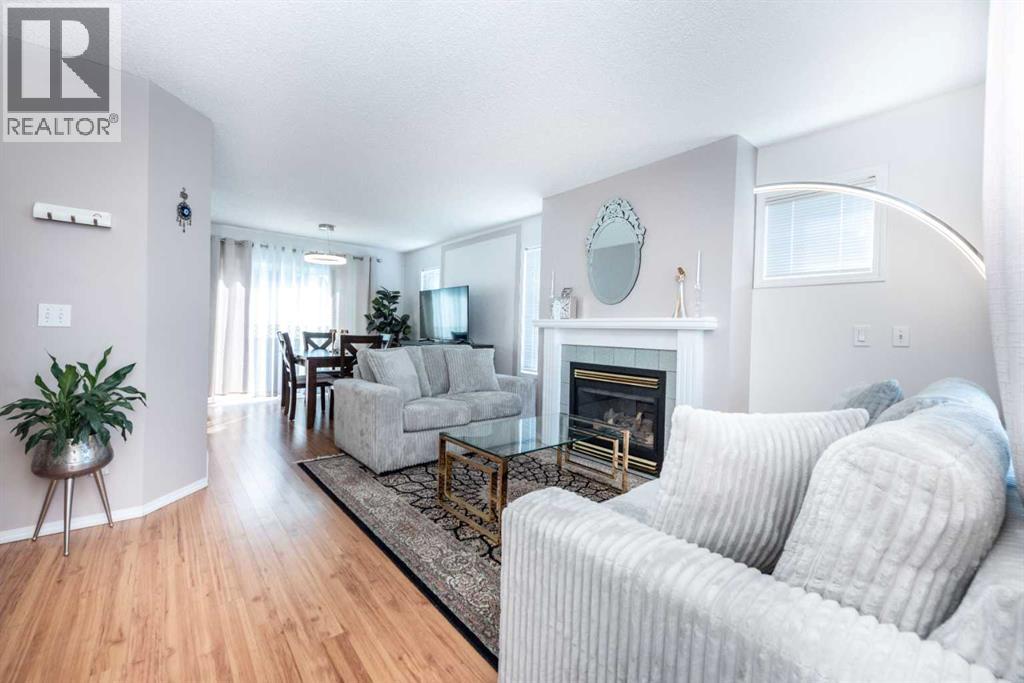 Welcome to this spacious and beautifully maintained end-unit townhouse condo, offering over 2,000 sq. ft. of fully finished living space. With 4 bedrooms, 4 bathrooms, a single attached garage plus a 2-car driveway, this home provides exceptional comfort and convenience for families or professionals alike.The main floor features a warm and inviting living room highlighted by a cozy gas fireplace with oak and tile surround, flowing seamlessly into the dining area with patio doors to a sunny south-facing deck—complete with gas hookup for your BBQ. The European-style kitchen boasts light oak cabinetry, pot drawers, upgraded faucet with vegetable sprayer, garburator, dedicated drinking water tap, tiled backsplash, and stainless/modern appliances. Gorgeous laminate floors run throughout the main living areas.Upstairs, you’ll find 3 generously sized bedrooms including the primary suite with walk-in closet and private 3-piece ensuite.A loft/home office nook offers added versatility. The 4-piece main bath includes a tiled tub surround.The fully developed basement adds even more space with a large recreation room, additional bedroom, full 4-piece bathroom with granite vanity, and a separate laundry/furnace room. Upgrades include a Navien tankless water heater and a Goodman furnace for energy efficiency and peace of mind.This home is ideally located in a quiet cul-de-sac with visitor parking right next door. Enjoy the convenience of nearby shopping, dining, entertainment, and easy access to major routes including Deerfoot, Airport Trail, and Beddington Trail. Just minutes from the airport and surrounded by countless amenities, this property has it all.Don’t miss the opportunity to own this rare 4-bedroom, end-unit townhouse in highly desirable Harvest Hills! (id:53676)