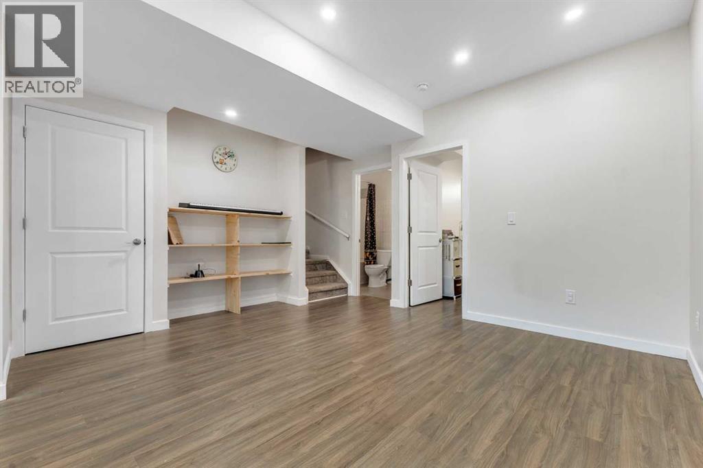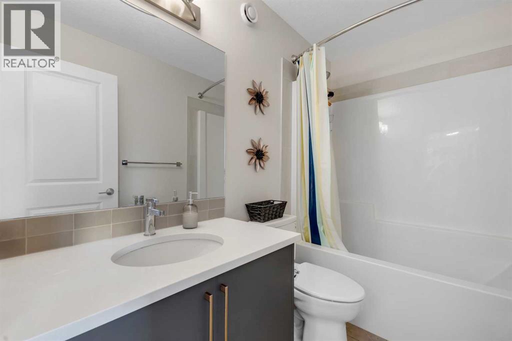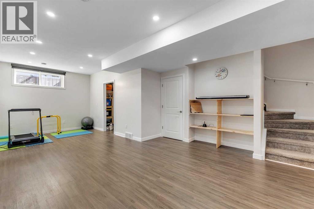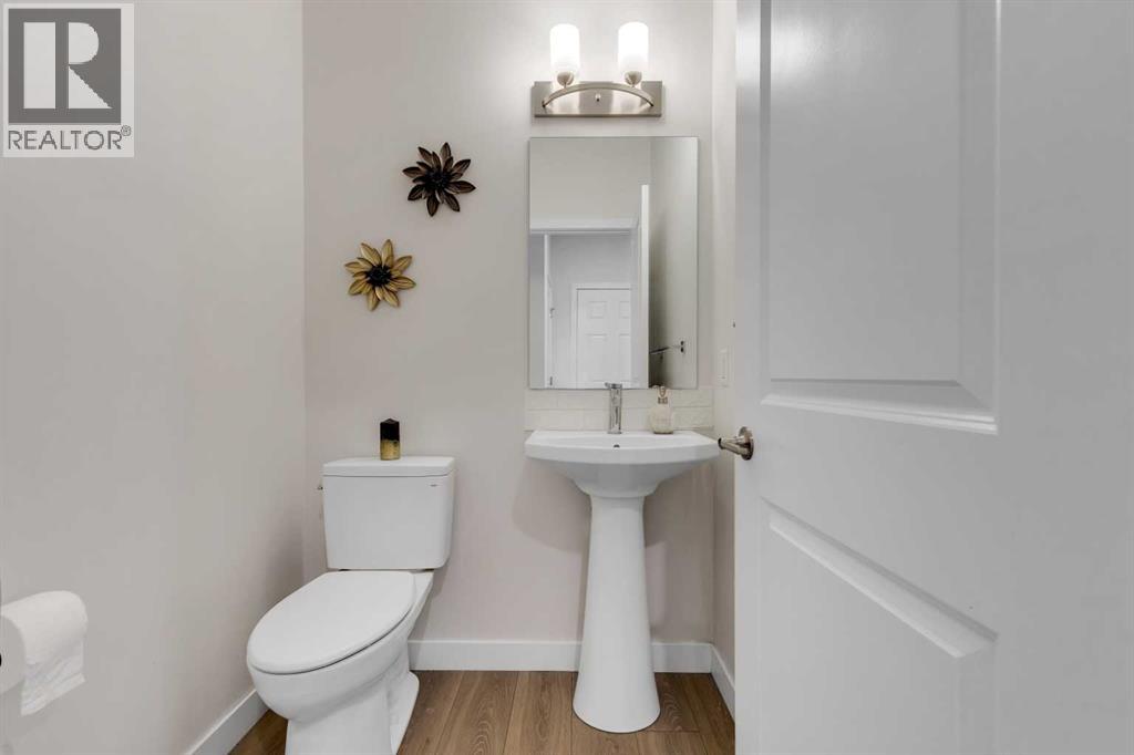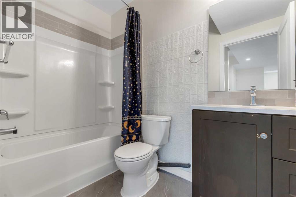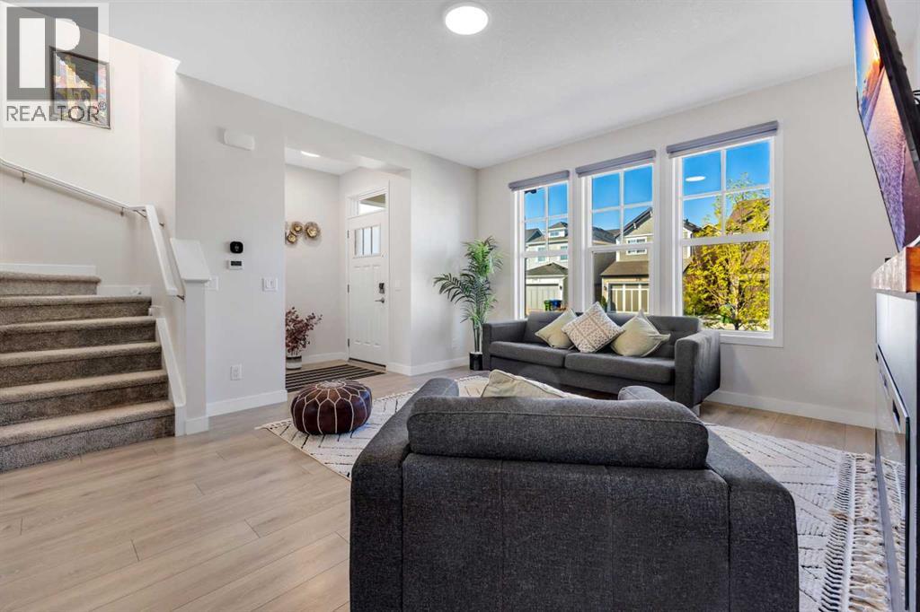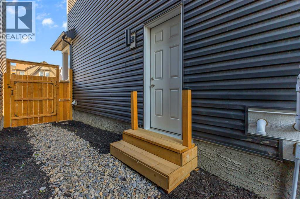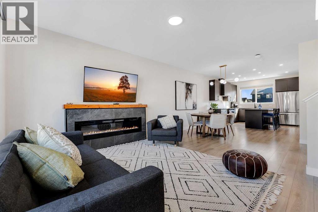 4 BEDROOMS|3.5 BATHROOMS|FULLY DEVELOPED BASEMENT WITH SIDE ENTRANCE|FULLY LANDSCAPED. Situated in the innovative and vibrant community of Rangeview, this beautifully designed, open-concept home combines modern style with everyday comfort. With over 2,000 sq. ft. of developed living space, high-quality finishes, and thoughtful upgrades throughout, this home is sure to impress. Step inside to 9' ceilings and luxury vinyl plank flooring that flow seamlessly across the main level. The spectacular kitchen is masterfully designed for efficiency and entertaining. Featuring quartz countertops, upgraded stainless steel appliances, built-in microwave, a stylish chimney hood fan, and a sprawling island. The kitchen flows seamlessly into a spacious dining area and living room, complete with a cozy fireplace, ideal for gatherings and relaxation. A convenient powder room and mudroom complete the main floor. Upstairs, the second floor continues to impress with a convenient laundry room and a 4-piece main bathroom, serving two versatile secondary bedrooms. The primary suite offers a cozy and intimate retreat with a thoughtfully designed walk-in closet and a luxurious 3-piece ensuite with quartz countertops, a spacious upgraded shower with sliding glass door, and modern finishes. The fully developed basement, with its own side entrance, expands your living options with a large family room, 9' ceilings, a spacious bedroom, and a full 4-piece bathroom — perfect for guests or extended family. Step outside to your fully landscaped backyard, complete with a rear deck, full fencing, and a rear gravel parking pad with a double covered parking shelter. Additional features include triple pane windows, tankless hot water heater, BBQ gas line, solar panels (owned outright), and smart home technology solutions. This home is ideally positioned on a quiet street and is less than a 2-minute walk to a future school, parks, and walking paths, making it a fantastic choice to call home. Rangeview is a vibrant, family-oriented community designed around garden-to-table living. Here, you’ll find community gardens, orchards, and greenhouses woven together with parks, playgrounds, and scenic pathways. (id:53676)