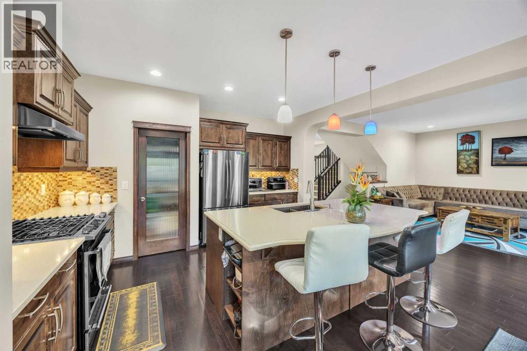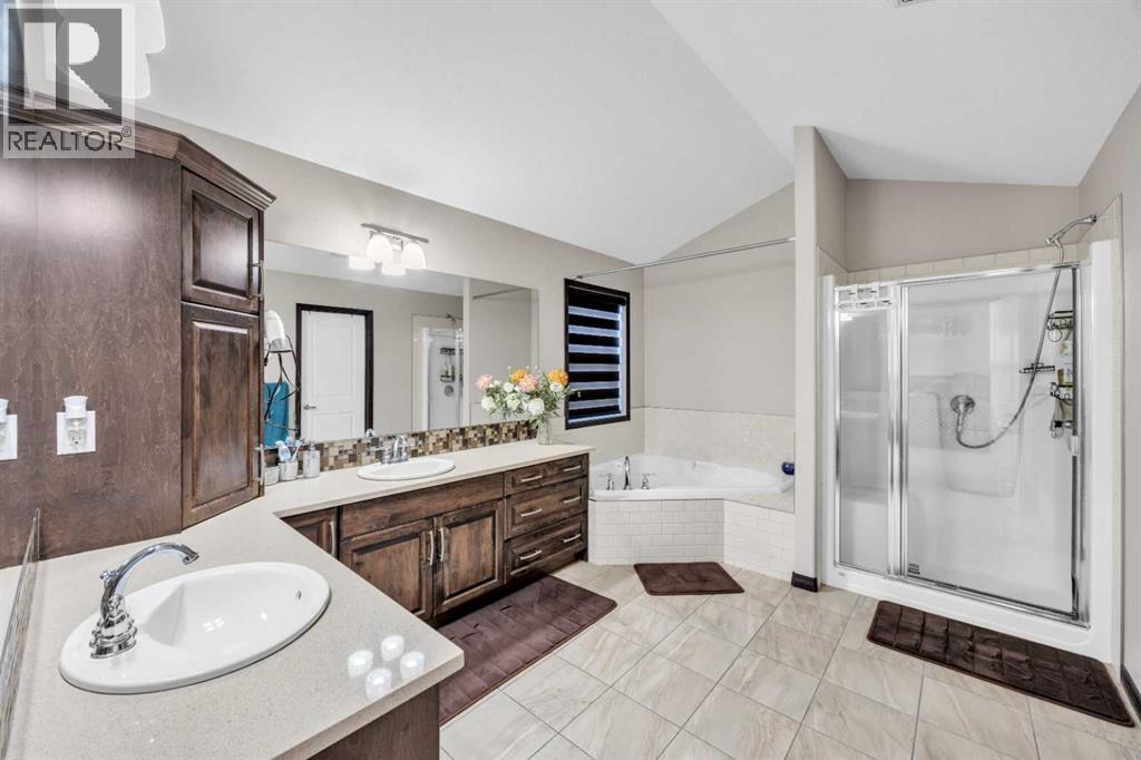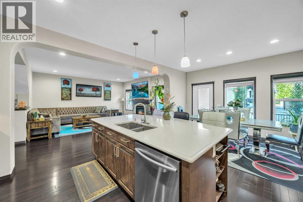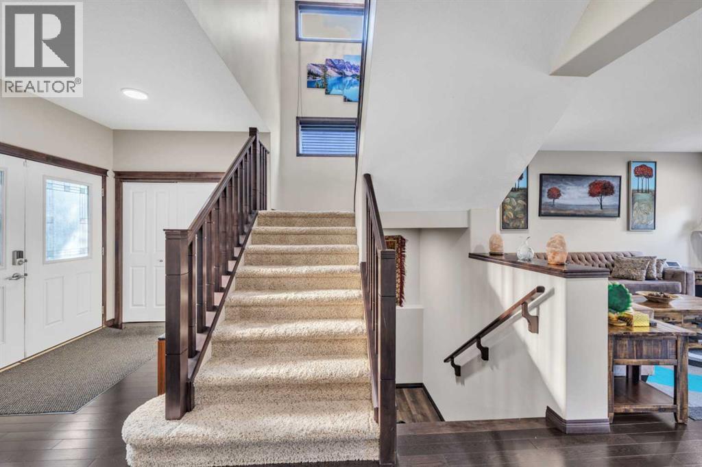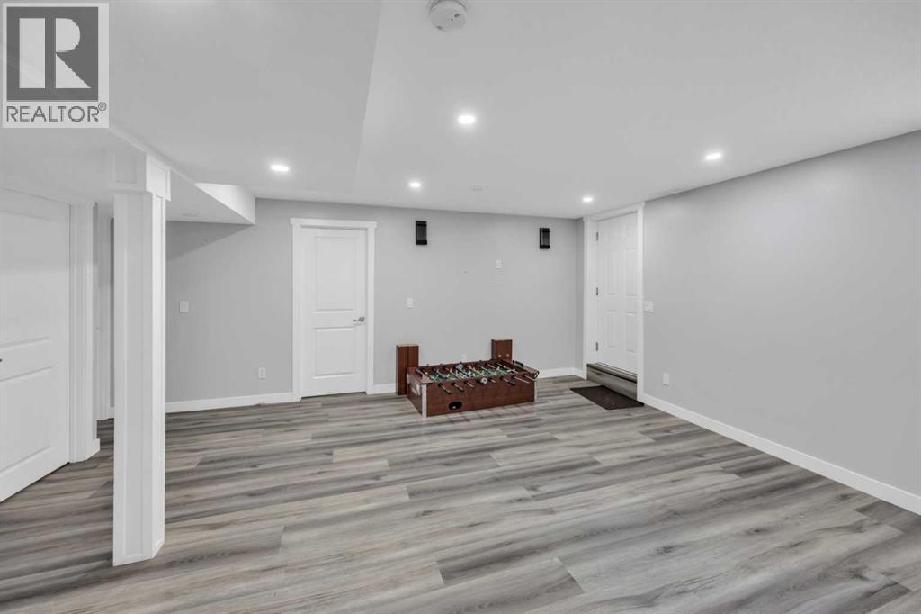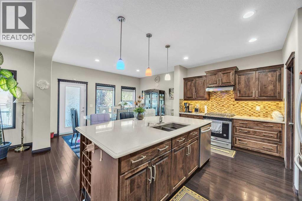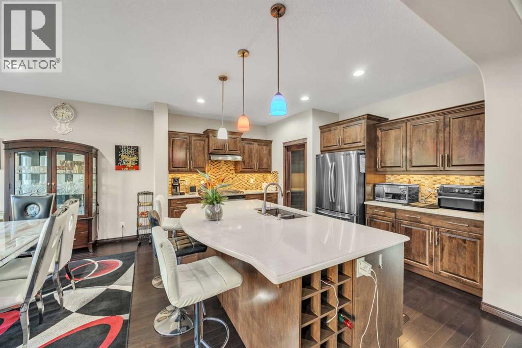 Welcome to 233 Aspenmere Circle—a STUNNING, FULLY UPGRADED HOME in the prestigious community of WESTMERE, CHESTERMERE, where LUXURIOUS DESIGN meets modern family living. From the moment you enter, you’re greeted by RICH HARDWOOD FLOORING, a bright OPEN-CONCEPT LAYOUT, and ELEGANT MODERN STAIRCASE RAILINGS that lead you through the main floor. The spacious living area centers around a GAS FIREPLACE, while the chef’s kitchen boasts a LARGE ISLAND WITH A BUILT-IN WINE RACK, GRANITE COUNTERTOPS, STAINLESS STEEL APPLIANCES, and a WALK-THROUGH PANTRY—perfect for both daily life and entertaining. A rare MAIN FLOOR BEDROOM adds ideal flexibility for guests or multi-generational living.Upstairs, the home continues to impress with a thoughtfully designed layout. The PRIMARY RETREAT is a true sanctuary featuring a SOAKER TUB, DOUBLE VANITY, STANDING SHOWER, and a generous WALK-IN CLOSET. Two additional bedrooms share a well-appointed SECOND BATHROOM, while a spacious BONUS ROOM offers versatile space for a family room, office, or play area. A convenient UPPER-FLOOR LAUNDRY ROOM completes this level, ensuring there’s room and functionality for the whole family.Descending into the lower level, you’ll find a beautifully developed basement. The ILLEGAL BASEMENT SUITE mirrors the home’s quality and comfort. Complete with TWO LARGE BEDROOMS, a PRIVATE KITCHEN, SEPARATE LAUNDRY, and EXTRA STORAGE, this space is ideal for extended family. A PRIVATE SIDE ENTRANCE WITH CONCRETE STEPS ensures total independence and privacy.Step outside to a PRIVATE BACKYARD OASIS featuring a spacious DOUBLE-TIERED DECK and a CONCRETE PATIO—perfect for entertaining and relaxing. The beautifully LANDSCAPED YARD includes mature trees for added privacy, a lush lawn, and a GARDEN BED ready for your green thumb. The yard is PARTIALLY FENCED, offering a balance of openness and security. Completing the outdoor space is a HEATED TRIPLE CAR GARAGE with durable EPOXY FLOORING and a convenient STORAGE SHED for tools and equipment.Situated in the lakeside community of CHESTERMERE, you're just minutes from SCHOOLS, PARKS, SHOPPING, and the beautiful CHESTERMERE LAKE, where residents enjoy BOATING, PADDLEBOARDING, FISHING, and year-round recreation. This is more than a home—it’s a lifestyle. (id:53676)