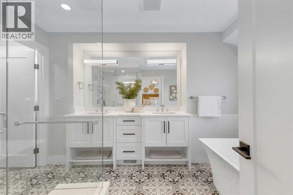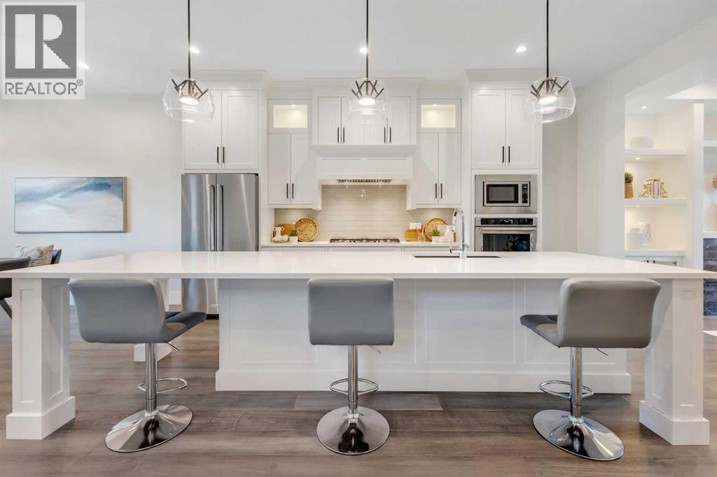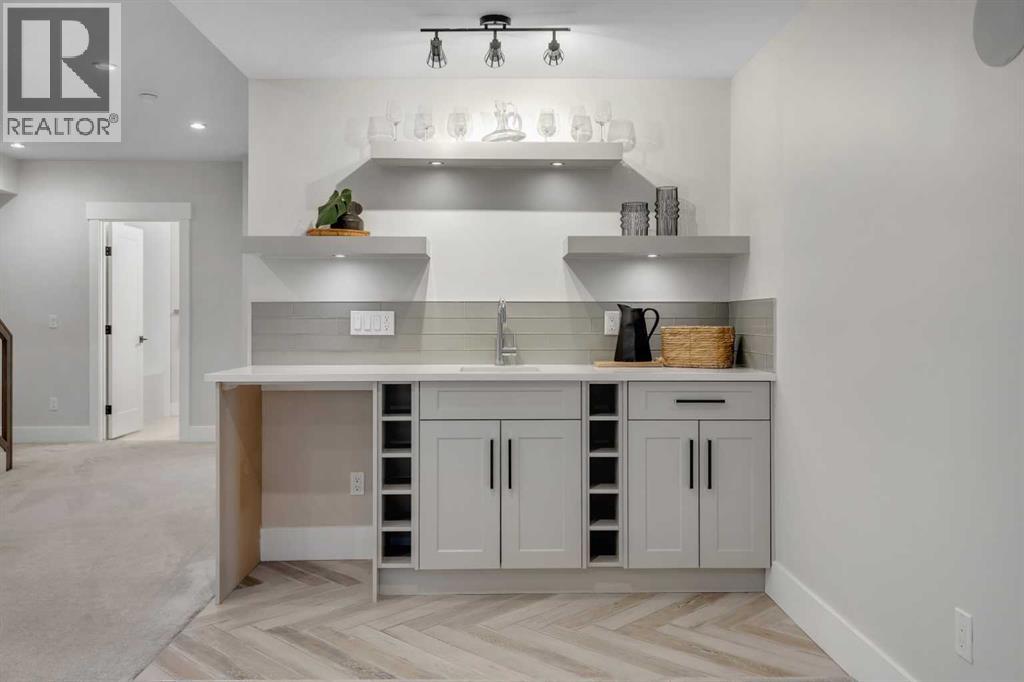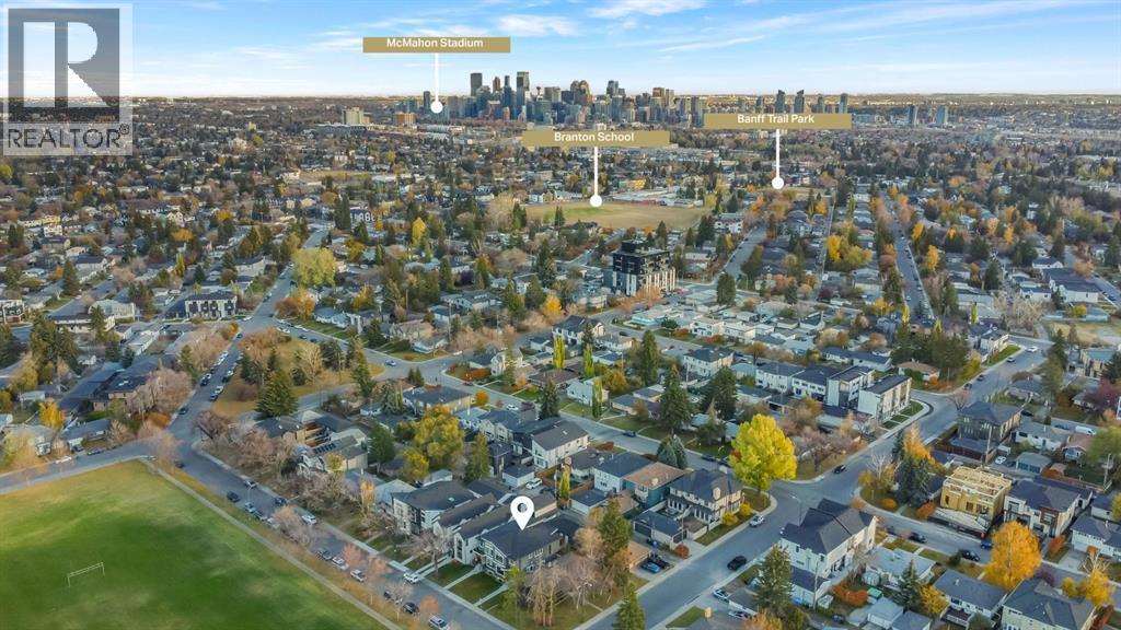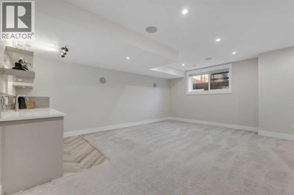 Sophisticated and thoughtful, this modern infill in BANFF TRAIL faces a GREEN SPACE and delivers everyday function wrapped in elevated style. With over 2,700 sq. ft. of living space, four bedrooms, a fully finished basement, and a double garage, it’s a home that balances upscale design with everyday practicality – ideal for busy professionals and growing families alike. Step inside and you’ll feel an immediate sense of light and space. The open main floor was made for both living and entertaining, blending clean lines with warm finishes that make the home feel grounded and welcoming. The front foyer opens into a bright front dining area that sits perfectly under a designer light fixture with wide windows that fill the room with sunlight. At the center, the kitchen takes the spotlight with its oversized island, full-height cabinetry, quartz countertops, and gas range. Every detail feels intentional – from the sleek subway backsplash to the deep drawers for storage. It’s a kitchen that works as hard as it looks good. Beyond the island, the living area brings everyone together with a feature fireplace framed by built-in shelving and oversized windows overlooking the backyard, with a high tray ceiling with built-in LED lighting for added ambience. The atmosphere is equal parts polished and comfortable, creating the kind of space where kids can play while the adults unwind. The rear mudroom adds real-life practicality with custom built-ins, hooks, and exterior access to the backyard and garage – keeping everything organized and out of sight. A discreet powder room sits off the hallway, rounding out the main floor. Upstairs, the layout keeps family life in mind. The primary suite spans the front of the home, creating a private retreat with soft light, a walk-in closet, and a spa-like ensuite featuring a freestanding soaker tub, dual vanities, and a glass-enclosed shower. Two additional bedrooms are bright and generous in size, each with good closet space. The upstairs la undry room makes day-to-day living simple, with lots of storage options and laundry sink. Downstairs extends the home’s versatility even further. A large rec room with built-in media centre and full wet bar offers the perfect setup for movie nights, weekend entertaining, or a play space that can evolve as kids grow. There’s also a fourth bedroom and full bathroom, ideal for guests, teenagers, or a quiet home office. Set in the heart of Banff Trail, this home sits in one of Calgary’s most connected inner-city communities. Families love the quick walk to schools, green spaces, and community parks, while professionals appreciate the easy access to the UofC, McMahon Stadium, Foothills Medical Centre, and SAIT. The Banff Trail LRT station is just minutes away, offering a quick train ride to downtown or the university. The neighbourhood’s quiet, tree-lined streets and established charm create a sense of calm right in the city, perfect for those who want space for family life without giving up convenience. (id:53676)