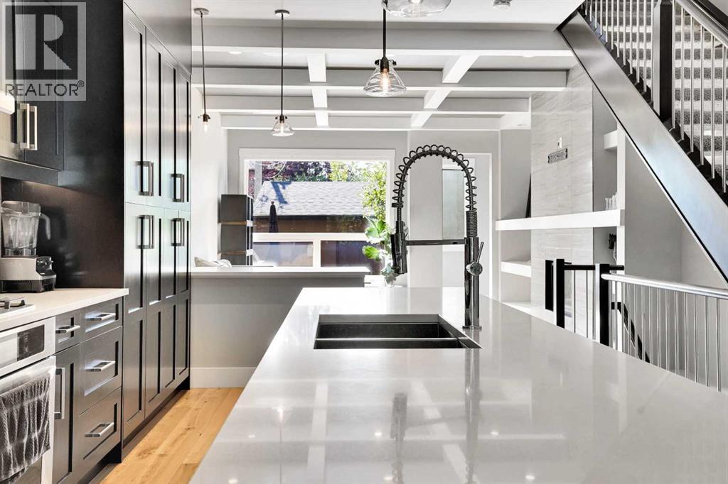 Bright, spacious, modern, detached 1942 square foot two storey located on one of the most desirable Avenues in Crescent Heights. Walking distance to restaurants, parks and shopping makes this Crescent Heights location perfect for the urban inner city dweller. Thoughtfully designed to make the best use of space and light. Open, inviting floor open plan; crafted with plenty of windows for fantastic natural light, soaring 10 ft ceilings, wide plank hardwood floors, large centre island all provide a seamless flow, ideal for entertaining or family gatherings. Upstairs, the primary bedroom has a great vibe with views of the lush tree canopy, a convenient walk-in closet and a 5-piece ensuite. There are two more generously sized bedrooms with lovely light, a laundry room with a convenient utility basin completes the second level. The basement is equally inviting, offering a spacious family room, roomy bedroom, full bathroom with an awesome steam shower and built-in bench, plus a storage room.Soak in the sun on the south deck and yard, with easy egress to an insulated and drywalled, double garage. You will love the Crescent Heights, vibrant, inner-city location with a walk score of 76/100. A great place to jump on your bike, e-scooter, or explore on foot. The amenity score is 10/10; steps to Rotary Park, Off Leash dog park, Tennis Courts, Lawn bowling, Splash Park, Mini Art Galleries plus a 10 minute walk to downtown, the Bow River pathway and Prince's Island! (id:53676)