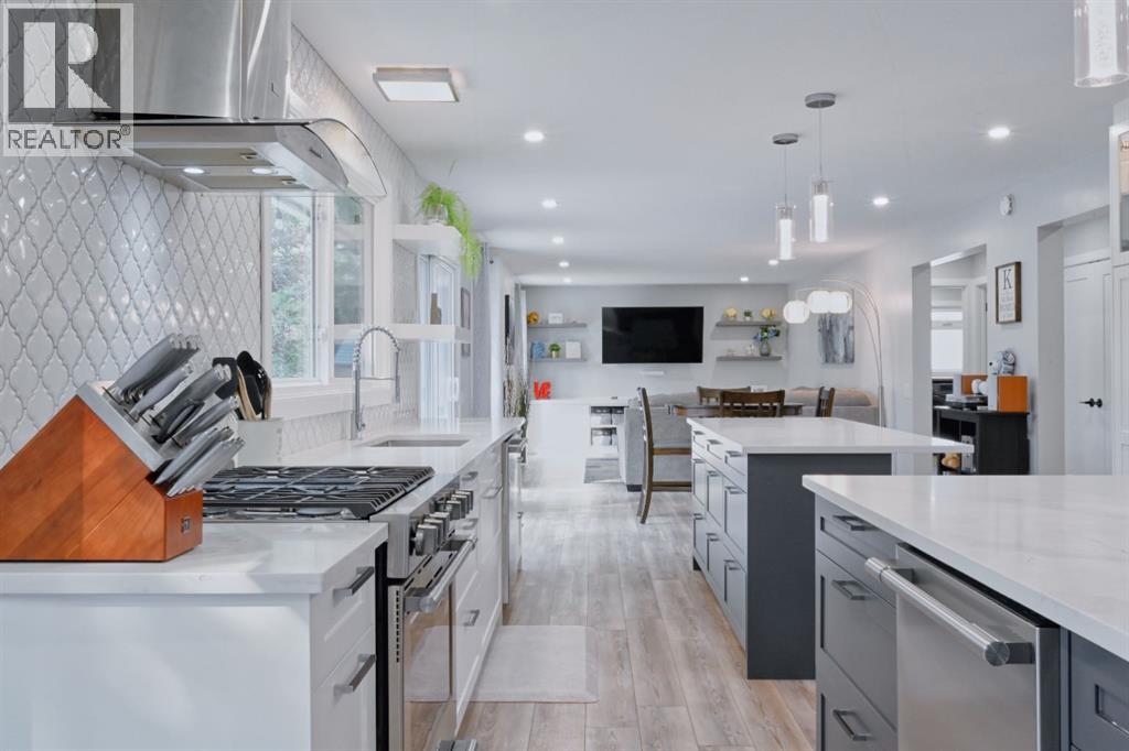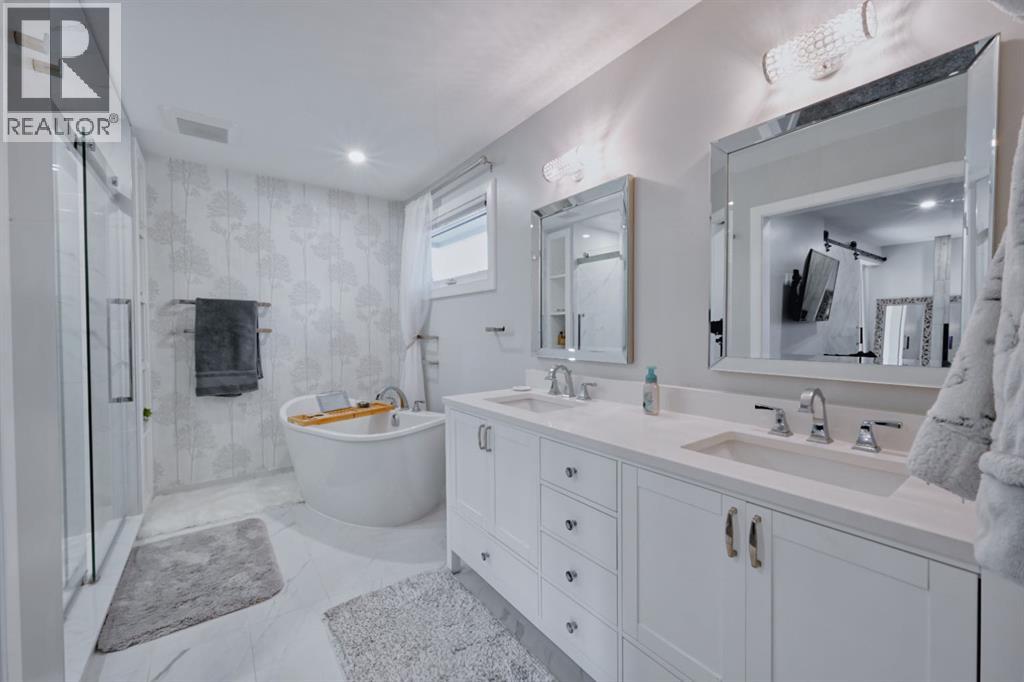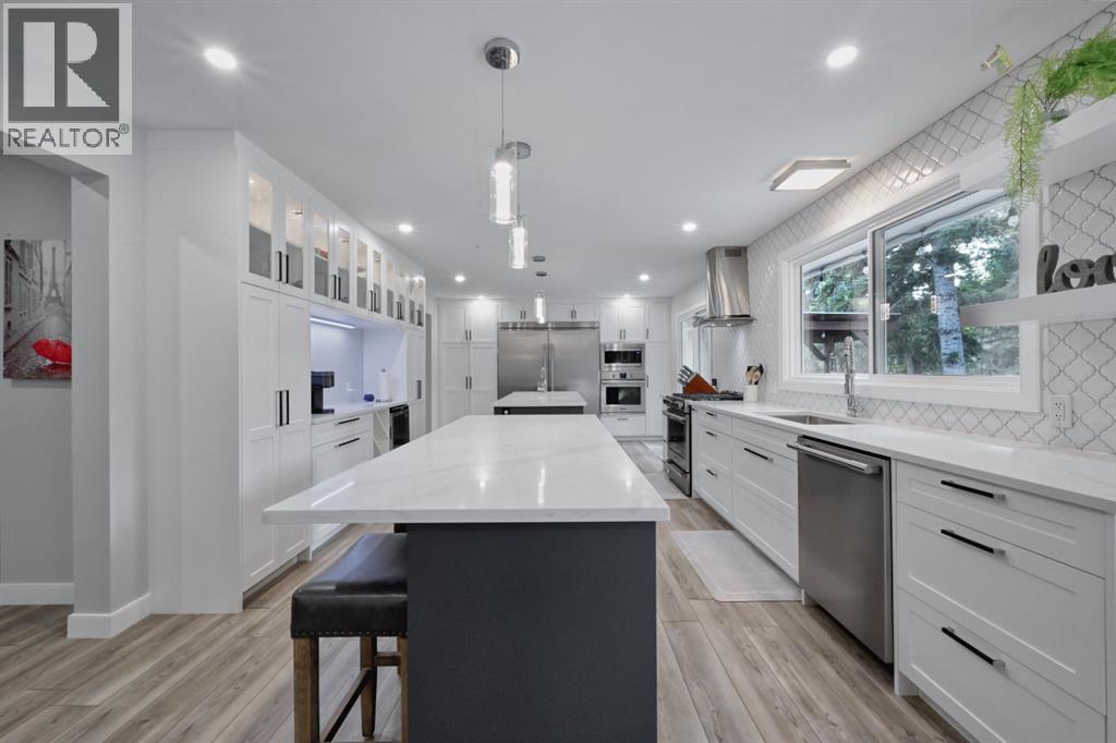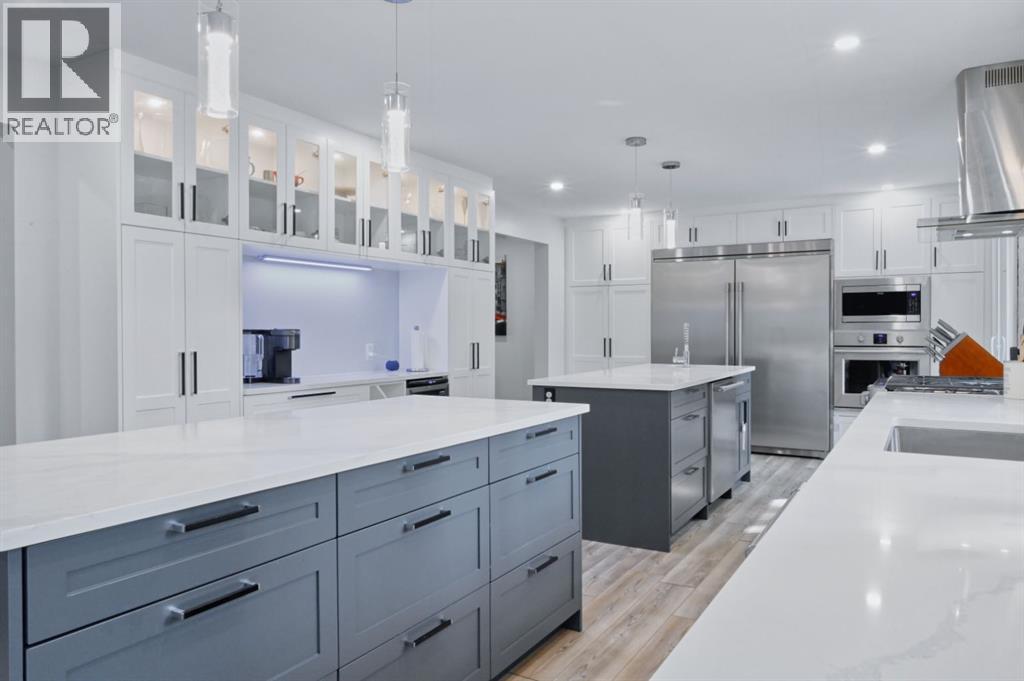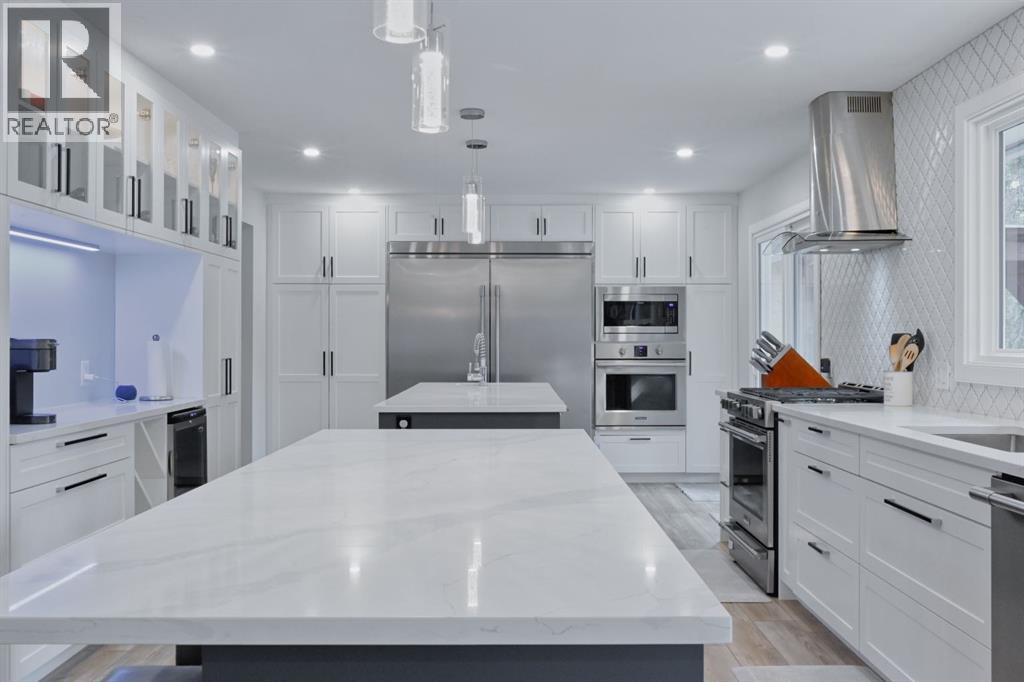 "OPEN HOUSE OCT 5, 2PM-4PM " Welcome to this extraordinary residence in the highly coveted Canyon Meadows Estates, tucked away on a quiet cul-de-sac and offering 4,600 sq. ft. of meticulously finished living space that blends elegance, modern comfort, and timeless design. From the moment you step inside, you’re greeted by soaring ceilings, an abundance of natural light, and an open-concept main floor designed to impress. The heart of the home is the chef-inspired kitchen, showcasing double islands with quartz countertops, double dishwashers, a gas range, wall oven with built-in microwave, massive built-in refrigerator, and endless custom cabinetry — a true entertainer’s dream. Flow seamlessly into the spacious family room or step out to your private backyard oasis featuring a composite deck, custom fire pit seating, dual BBQ gas lines, and lush landscaping, perfect for gatherings in every season. A formal living room, full bathroom, private office, and heated double garage with epoxy flooring and an oversized driveway complete the main level. Upstairs, retreat to the luxurious primary suite with a spa-inspired ensuite boasting a soaker tub, glass shower, dual vanities, walk-in closet, and private balcony overlooking the mature tree-lined yard. Two additional oversized bedrooms, each with walk-in closets, share a generous full bathroom, creating the perfect family-friendly layout. The professionally renovated basement (2023) is a showstopper, offering a custom wet bar, expansive recreation space, cozy fireplace, home gym, guest bedroom, and stylish full bathroom — ideal for entertaining or relaxing. Additional upgrades include new energy-efficient windows (2022), ensuring long-term comfort and peace of mind. All of this in an unbeatable location just minutes from Fish Creek Provincial Park, Canyon Meadows Golf & Country Club, top-rated schools, shopping, dining, and the C-Train for an easy downtown commute. This is more than a home — it’s a lifestyle, and it truly c hecks every box for today’s discerning buyer. (id:53676)