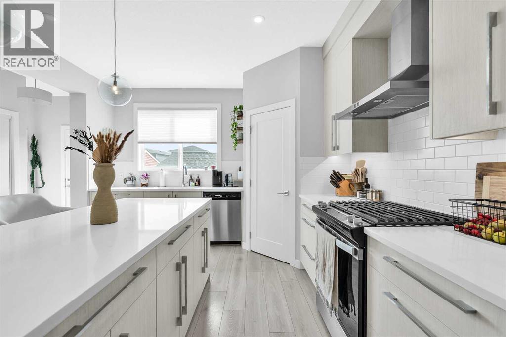 Welcome to your dream home in the heart of Chelsea, Chestermere!This beautifully designed 2-storey detached home with a double detached garage offers everything you need—and more—in one of Chestermere’s most vibrant and fast-growing communities, just 10 minutes from Calgary.Step inside to a bright and welcoming main floor, where the open-concept living and dining areas create the perfect space for both everyday living and entertaining. At the back of the home, the modern kitchen is a true showstopper, featuring luxury vinyl plank flooring, stainless steel appliances, full-height cabinetry, a large island, and a spacious walk-in pantry. Love to cook? This home comes complete with a fully equipped spice kitchen, ideal for preparing flavourful meals while keeping your main kitchen fresh and tidy.Upstairs, you’ll find a generous primary retreat with a 4-piece ensuite and a walk-in closet, along with two additional well-sized bedrooms, a full bathroom, and a conveniently located laundry room.Looking for rental potential or multigenerational living? The home includes a separate side entrance to the unfinished basement, giving you the flexibility to develop it to suit your needs—whether it’s a legal suite, in-law space, or extended living area.Located in the thoughtfully planned community of Chelsea, this home gives you access to over 320 acres of family-friendly amenities, including scenic walking paths, parks, storm ponds, and future local shopping. With quick access to Stoney Trail and East Hills Shopping Centre—featuring Costco, Walmart, Cineplex, banks, and restaurants—you’re perfectly positioned for both convenience and lifestyle.Chelsea is where small-town charm meets urban convenience. Whether you're upsizing, investing, or looking for the perfect place to raise a family, this home offers it all—style, space, and opportunity. (id:53676)