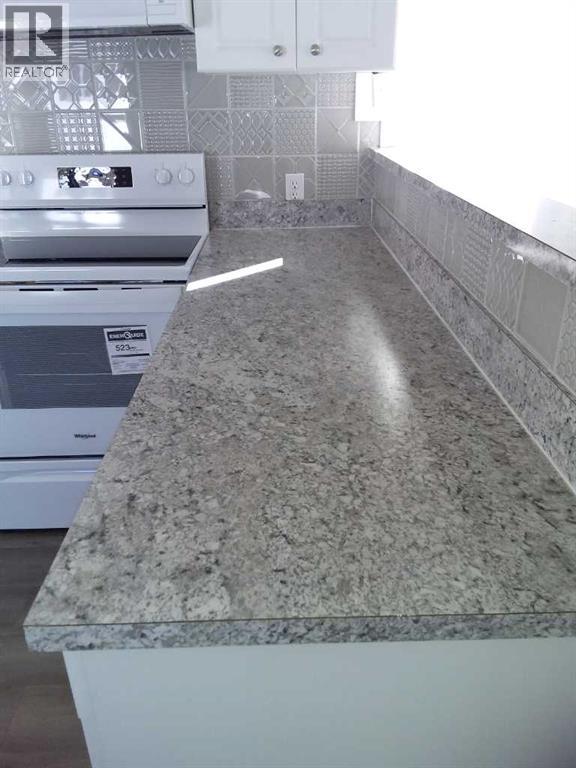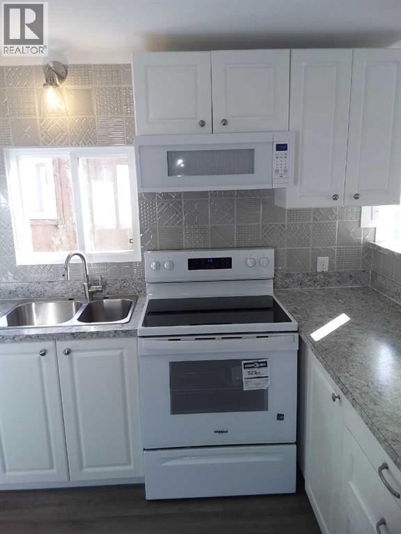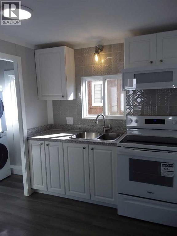Affordable living at its best! Available immediately! This 2 bedroom, 1 bath beauty has been refurbished with stylish vinyl plank flooring throughout and completely repainted. The bright kitchen has modern white cabinets, a huge peninsula and a stylish, modern backsplash. The home includes all new appliances, (with warranties) including a stacked washer / dryer set and microwave / hood fan with direct ventilation. The bedrooms are a good size, with double closets in each. New light fixtures throughout, including LED lights and bulbs. Kitchen and bath fixtures are new and upgraded. Every inch of this home is clean and fresh! The exterior has been clad in maintenance free vinyl siding plus a aluminum soffits. Double paned vinyl windows with new drapes add to the comfort. This home is on a large, level lot that is partially fenced and includes a garden shed on a new base. The parking pad in front has space for 2 vehicles. Listing agent is the current owner. (id:53676)