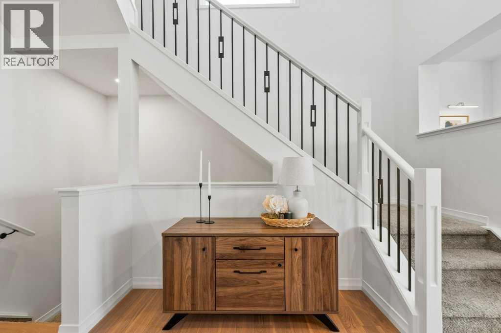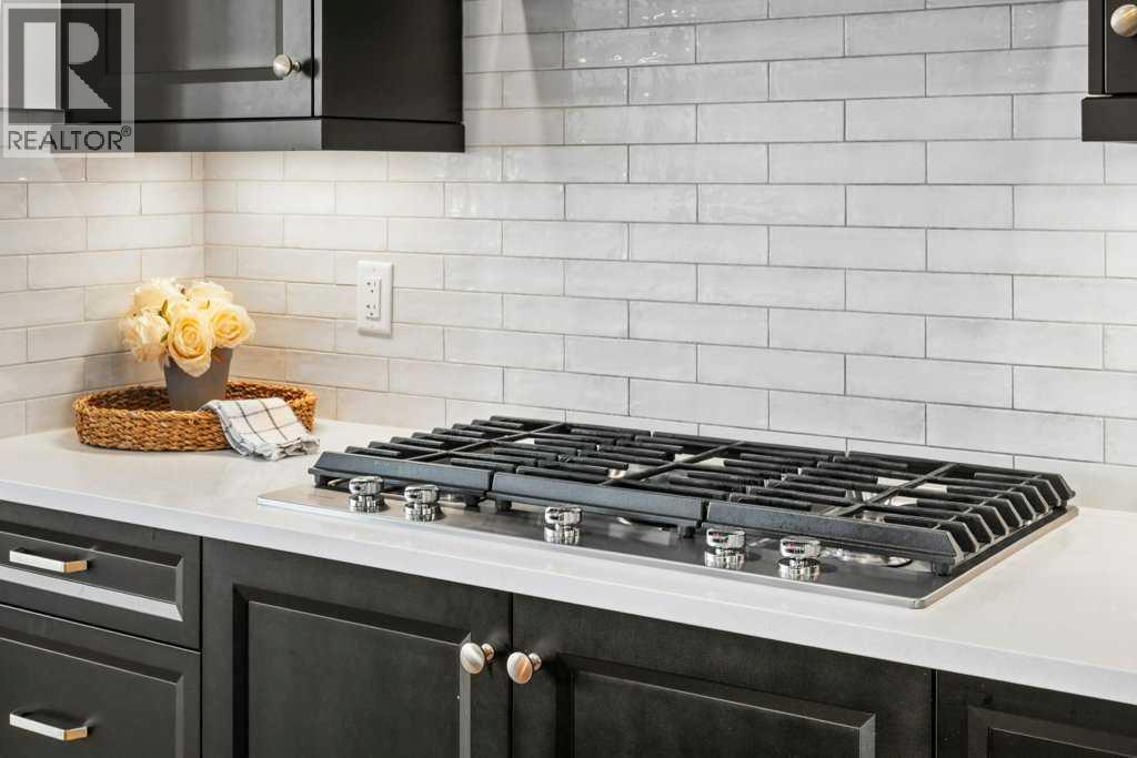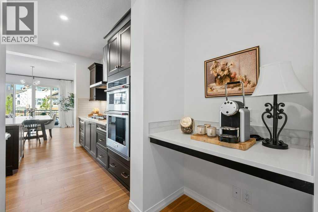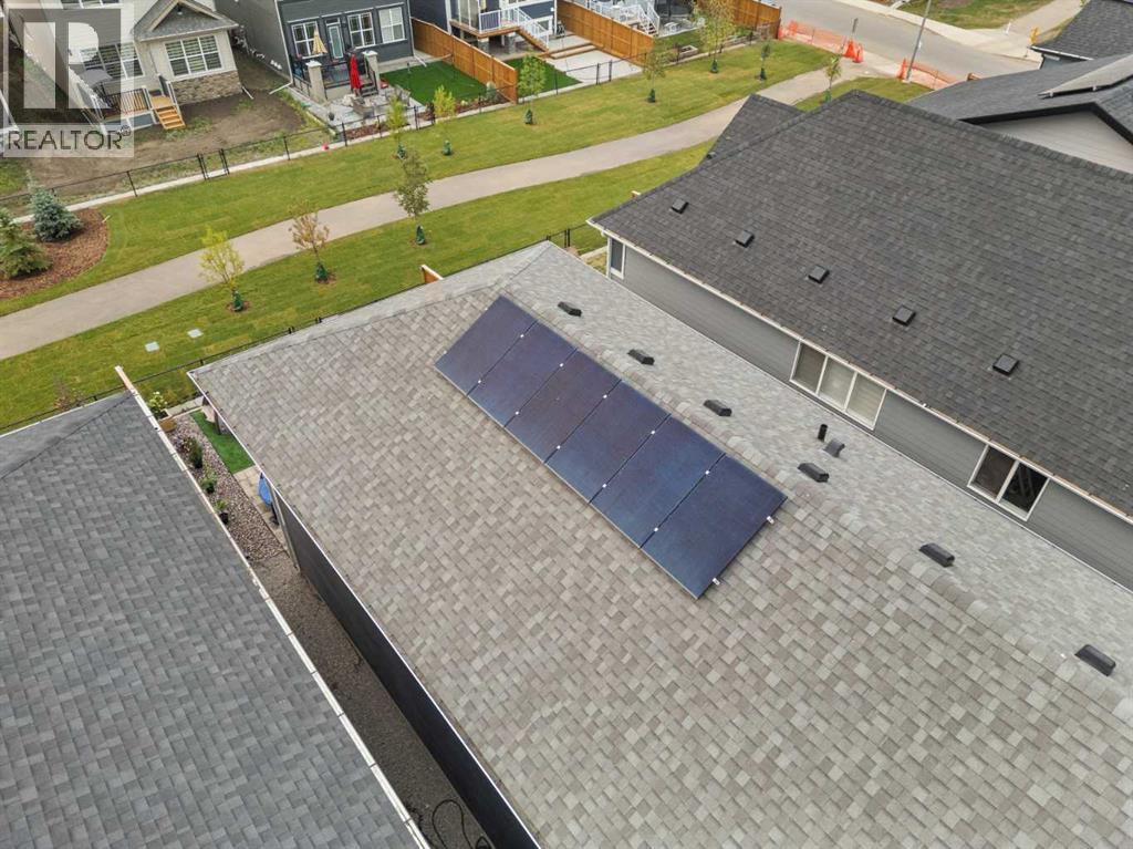 EXQUISITE 4 BEDROOM HOME – BACKING ONTO A GREEN BELT LEADING TO A NEARBY PLAYGROUND & BASKETBALL COURT!This is more than a home—it’s where your family’s best memories begin. Perfectly positioned just 50 meter's from a playground and 350 meter's from a future K–9 Catholic school and farmer’s market, this built-green home blends modern comfort with everyday convenience.Step inside to a tiled entryway and a spacious walk-in closet. The main floor features 9' knockdown ceilings, engineered hardwood flooring, and a front den with a glass insert—ideal for a home office or playroom. A stylish 2-piece bath and a tiled mudroom with built-in bench lead to a walk-through pantry and quartz coffee bar.The chef’s kitchen is a showstopper: quartz countertops, subway tile backsplash, Blanco Silgranit sink, soft-close cabinetry, and premium KitchenAid built-in appliances—including a 36" gas cooktop and convection microwave/oven. A large island with seating anchors the space, while the dining area is bathed in natural light from 8' dual sliding doors.The lifestyle room offers a cozy electric fireplace, and the west-facing backyard is built for family life—featuring a spacious deck, lower patio, synthetic grass, and mesh fencing. Backing onto a green belt with direct access to the playground and basketball courts, you can supervise the kids while grilling dinner.Upstairs, plush carpet leads to a central bonus room, tiled laundry with quartz storage, and a 5-piece guest bath with separate water closet. Four bedrooms include a front-facing room with walk-in closet, a side bedroom, and a rear-facing primary suite with dual walk-in closets, ceiling fan, and a spa-inspired 5-piece en-suite with deep tub, tiled shower, and his-and-her quartz vanities.The finished double garage with EV charger, developed basement stairs, and energy-efficient features—hot water on demand, HRV, 6 solar panels, UV air purification, and water softener—complete this exceptional package.Book your priv ate showing today. This is the family home you’ve been waiting for. (id:53676)