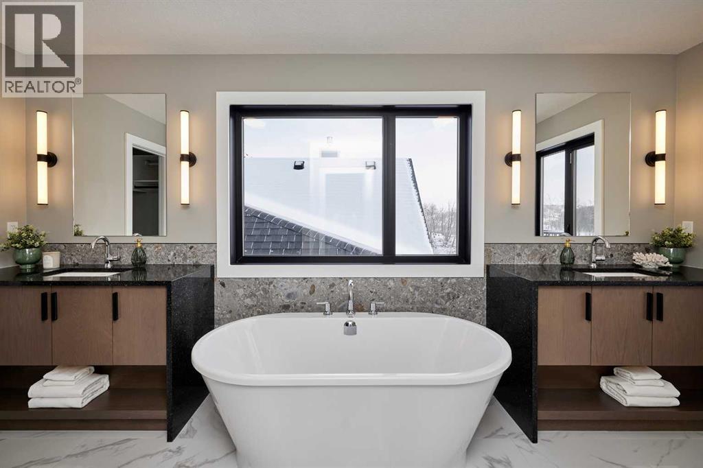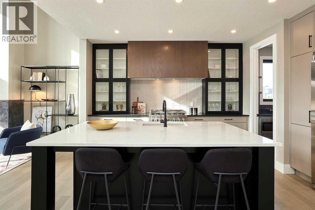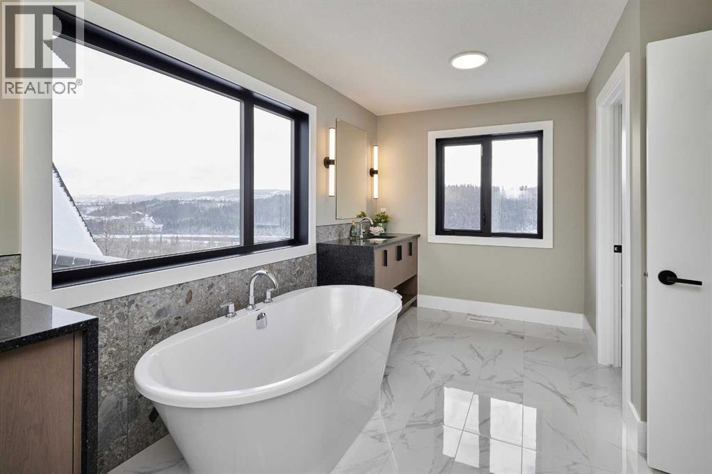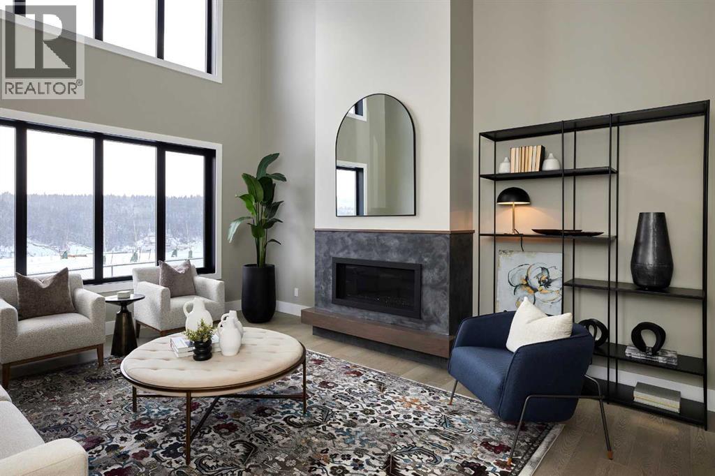 5-BEDS | 4.5 BATHS | 4,850 TOTAL SQ.FT | 3-CAR GARAGE | SOUTH-FACING BACKYARD | LUXURY FINISHINGS | RIVER VALLY VIEWS | Set on a premium, south-exposed lot overlooking the Bow River valley, this brand-new Crystal Creek home offers nearly 4,850 sq ft of well-appointed living space, designed to make the most of its incredible location. The open-to-above great room is filled with natural light, with expansive rear windows that frame the view and a sleek fireplace that adds warmth and style. The kitchen features premium appliances, full-height cabinetry, quartz counters, and a functional walk-through butler's pantry connecting to the mudroom. Near the dining area, sliding doors open to a covered rear deck, perfect for taking in the valley views or extending your living space outdoors on warm evenings. A dedicated front office on the main floor provides a quiet space to work from home. Upstairs, the south-facing primary suite features a private balcony with river valley views, a spa-inspired ensuite with freestanding tub and oversized glass shower, and a custom walk-in closet. Three additional bedrooms share both a Jack-and-Jill bath and a separate full bath, while a central bonus room and nearby laundry room offer practical space for family life. The finished basement includes a rec room with wet bar, a dedicated gym area, a flexible den, a fifth bedroom, and a full bathroom. An oversized triple garage, A/C, energy-efficient construction, and full new-home warranty complete the package. Located in Rockland Park with future schools, scenic pathways, and a private residents’ clubhouse with pool, this move-in-ready estate home offers one of the best views in northwest Calgary. Book your private showing today before it's gone. (id:53676)