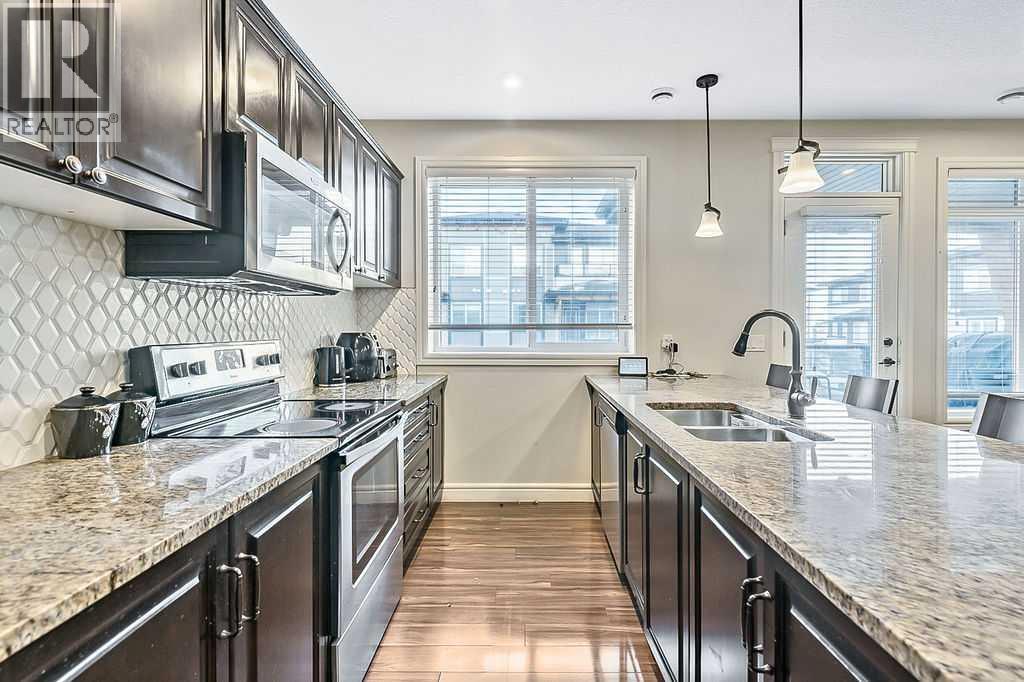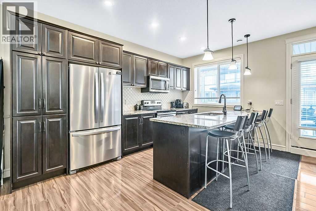 Welcome to your new home in the heart of Saddle Ridge!This stylish and spacious two-storey townhome offers the perfect blend of comfort, functionality, and modern design—ideal for families or anyone looking for a vibrant community lifestyle. Featuring 3 generously sized bedrooms and 2.5 bathrooms, this open-concept layout is filled with natural light, creating a warm and inviting atmosphere throughout.The main floor is designed for effortless entertaining and everyday living, showcasing a large contemporary kitchen complete with stainless steel appliances, quartz countertops, and elegant flooring. Step out onto the private deck, perfect for summer BBQs, outdoor dining, or simply unwinding at the end of the day.Upstairs, you'll find a serene primary suite with a walk-in closet and a private ensuite bathroom. Two additional bedrooms, a modern 4-piece bath, and convenient upper-level laundry round out the upper floor.Enjoy the practicality of a single attached garage, offering both security and convenience. Located just steps from parks, schools, shopping centers, the LRT, and the YMCA, this home offers the perfect mix of suburban tranquility and urban accessibility.Don’t miss your chance—contact your favorite Realtor to schedule a showing today! (id:53676)