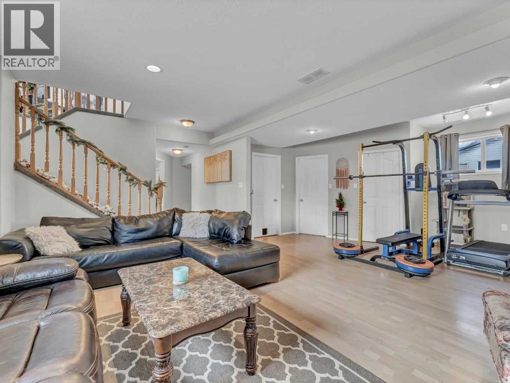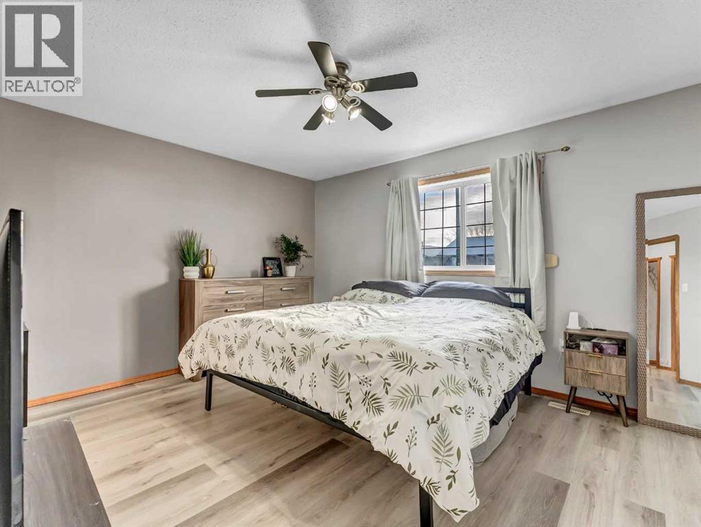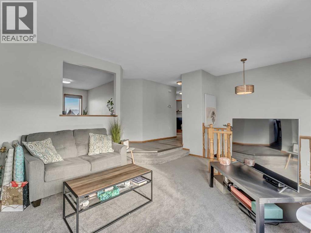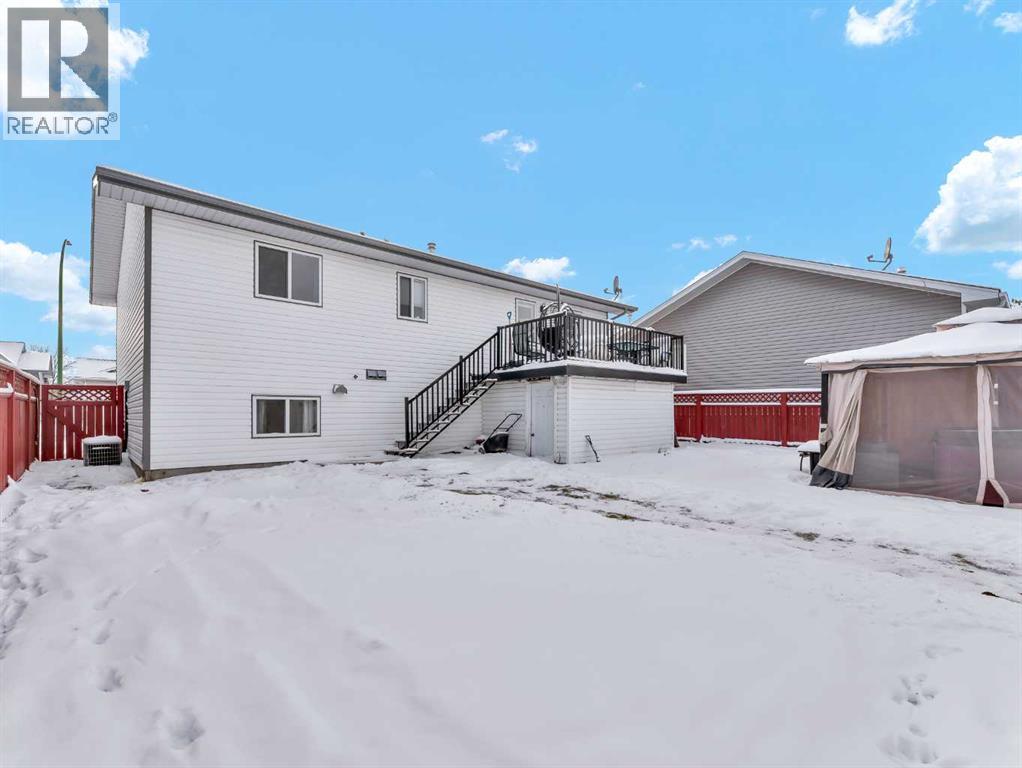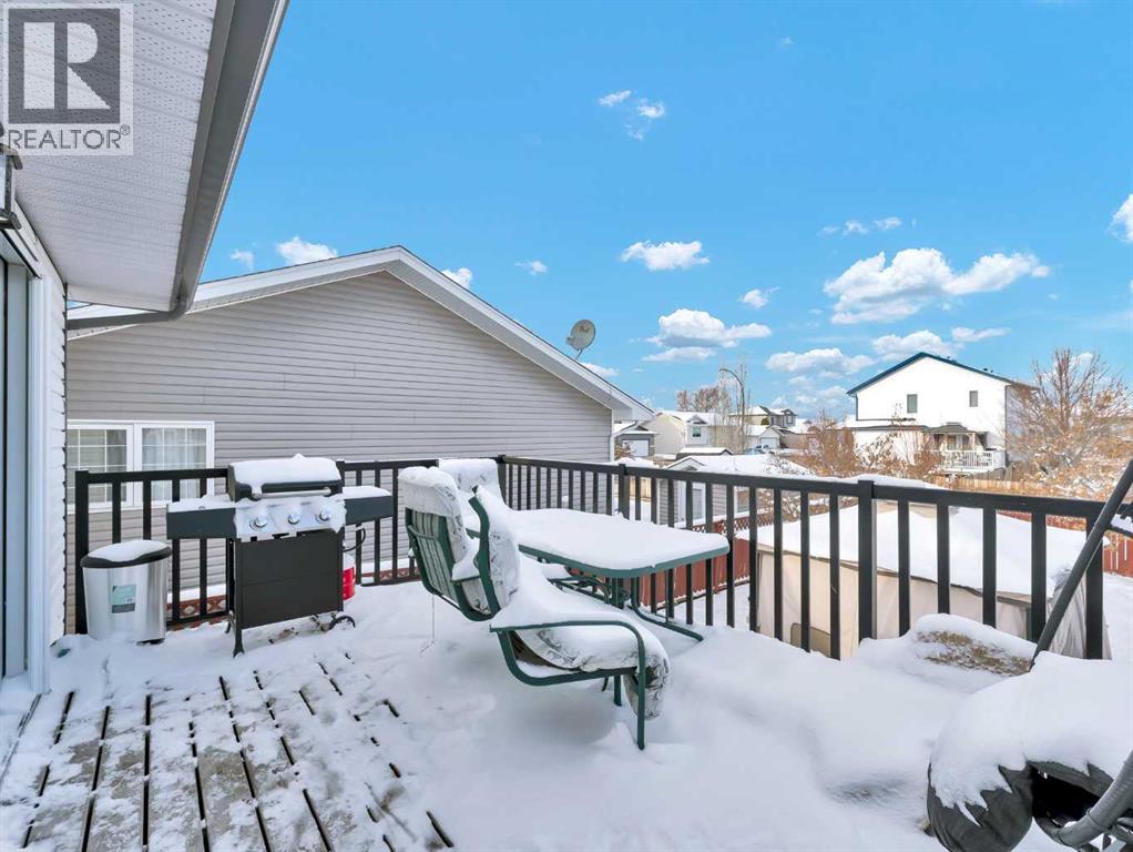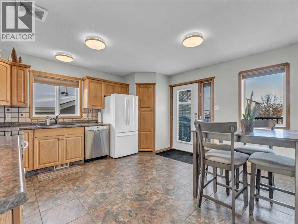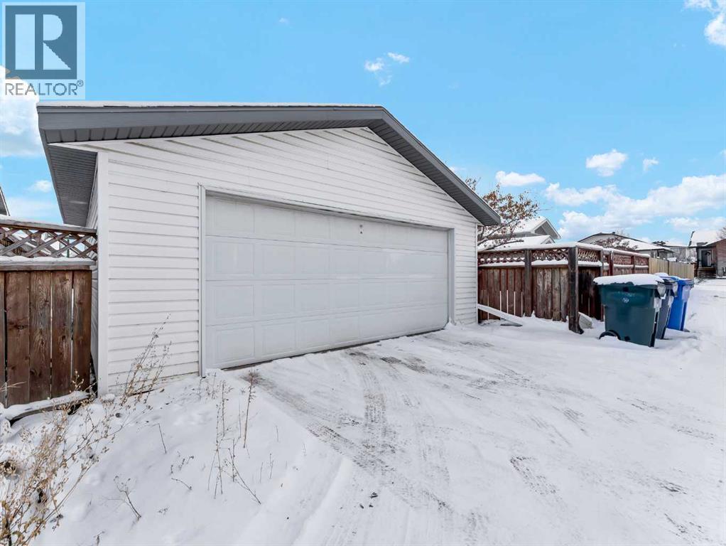 Bright and inviting, this great home offers 4 bedrooms and 3 bathrooms across a functional and comfortable layout. The upper level features a distinctive living room that creates impressive ceiling height, with two short steps leading up to a spacious, eat-in kitchen. This kitchen offers an efficient L-shaped design, a pantry and door onto the back deck over looking the yard. Down the hall, you’ll find main-floor laundry, a generous 4-piece bathroom, a secondary bedroom, and the primary suite, complete with a 3-piece ensuite and double closets. The fully developed basement provides a versatile open area. It also includes a 2-piece bathroom with a door to one of the basement bedrooms, along with an additional fourth bedroom to complete the floor plan.Outside, the property offers an upper deck, a fully fenced and landscaped yard, and a double heated detached garage with alley access. The charming curb appeal is enhanced by a double driveway, providing ample overflow parking. This is a perfect place to call home. (id:53676)