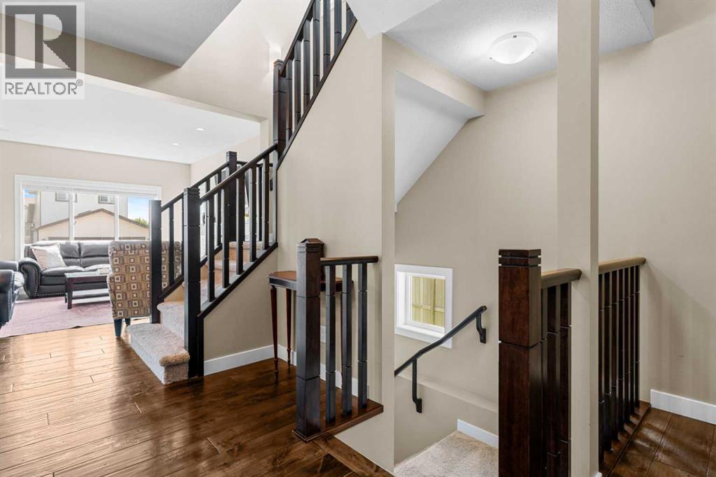 Welcome to this exceptional estate style home situated on an oversized corner lot, offering rare gated alley access for RV, boat, or trailer parking in addition to the double garage and front driveway. This beautifully upgraded property features a large, private south-facing backyard—perfect for relaxing or entertaining—with a spacious deck (stained 2025), built-in outdoor speakers, and a BBQ gas line ready for summer nights. Step inside and you’re greeted by a spacious foyer and show-stopping open-to-above staircase with upgraded solid wood railings. The main floor boasts gleaming hardwood floors, a chef-inspired kitchen with wood cabinetry, ample storage, stainless steel appliances, an eat-up bar, island and a walk-through pantry for added convenience. The open-concept living and dining space is warm and inviting, complete with a gas fireplace and direct access to the back deck while stepping through an expansive three-pane sliding glass door. Additional details of the main floor include coat closets at both entry points, and stylish 2-piece powder room. Upstairs, a spacious bonus room separates the serene primary retreat—with a walk-in closet and spa-like ensuite featuring a double vanity, soaker tub, and separate shower—from two generously sized bedrooms, a full 4-piece bathroom, and a dedicated laundry room with ample shelving for all your linens. The fully finished basement (developed by the builder to match the home’s high-end finishes) includes a custom bar, large rec/family room, an additional bedroom, another full bathroom, storage, and a generous mechanical room. Additional features include: Central air conditioning, Built-in speaker system (including outdoors), Bird irrigation system (front and back yard), Central vacuum, Water softener, Zoned HVAC for custom climate control on each floor, Tons of added windows for natural light throughout, all NEW exterior including the roof 2020, garage door repainted 2024, Garage sports Screen with Synthetic ice for t he sports enthusiasts. This home truly has it all—space, function, luxury, and lifestyle. Don’t miss your chance to own this one-of-a-kind property! (id:53676)