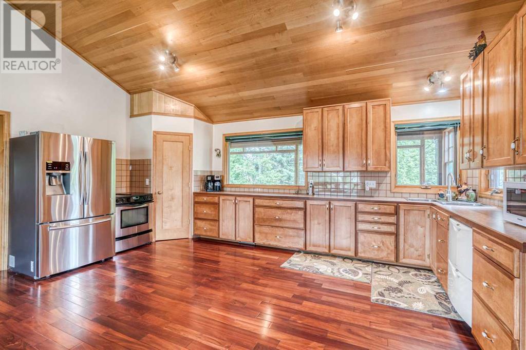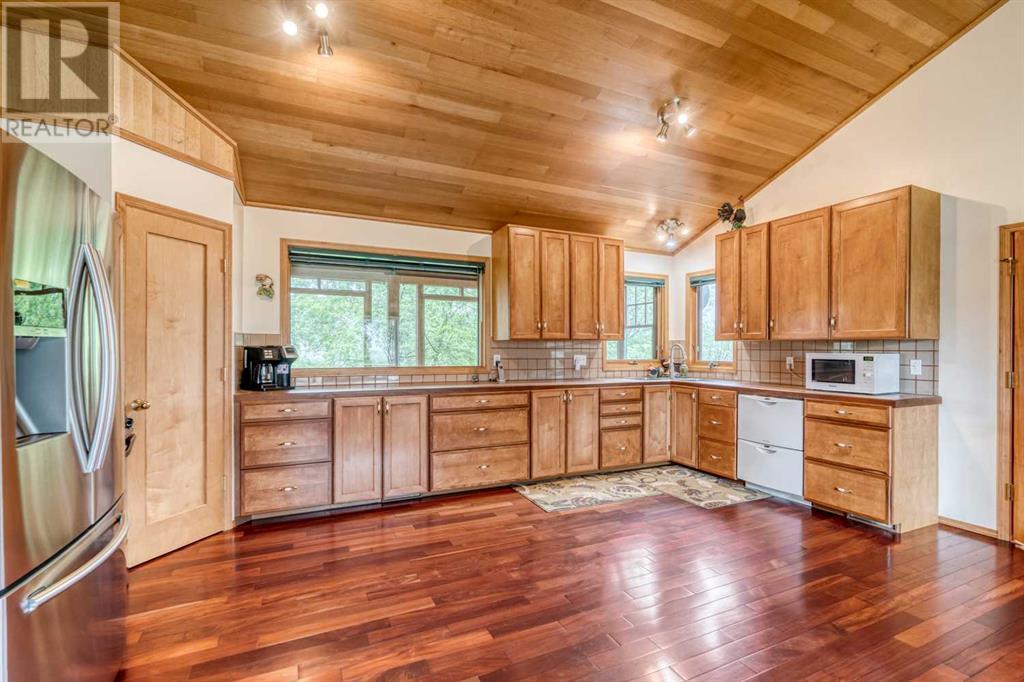 Tranquility, Privacy, Beauty, are just a few words to describe this remarkable property. Sitting on top of the hill with stunning views of the valley, this 15 acre property has mature trees, a creek, open meadows, and marsh lands. Located on the edge of Carbon, you feel like you are away from it all yet you can walk to groceries, restaurants, the swimming pool, beach volleyball, and the kids can walk to school. Not only that, the property has municipal water and sewer – WOW! Adding even more value is the ability to subdivide the property if desired. Easy commutes to Calgary (under an hour), Airdrie (45 min), or Drumheller (20 min). The home rests beautifully amongst a variety of mature trees and rolling landscape… walk the property and pick saskatoon berries off the bursting bushes, and in the winter, enjoy the amazing toboggan hill and flat meadow as a great place to build a hockey rink. With 2,543sq’ above grade, there is plenty of room in this home where pride of ownership boasts stunning condition. Develop the 817sq’ unfinished basement for a total of 3,360sq’. 3 bedrooms, 3.5 bathrooms, this home would be fantastic as a multi-generational home, Bed & Breakfast, or AirBnb. Enter the home to find a spacious foyer leading to the converted log cabin turned bedroom! Complete with vaulted paneled ceiling, lofted storage and half bath. An additional 4-piece bathroom can be accessed from the hallway. The mudroom features plenty of storage and front load washer and dryer. Acting as a secondary entrance to the home, the mudroom can be entered through the expansive east facing enclosed porch. The heart of the home is the massive kitchen with hardwood floors and vaulted ¼ in white oak paneled ceiling detail. The spacious family room and living room feature a Mt Vernon Quadrafire 50lb hopper pellet stove and access to a west facing deck. Another bedroom and 3-piece bathroom complete the main level. Upstairs in the master retreat! Vaulted ceilings, spacious walk-in closet, 4 -piece ensuite with soaker tub, and private west facing deck to take in the unbelievable views across the valley! There are so many other incredible features in this home… All bathroom and bedroom walls are insulated for privacy, bedrooms have solid core doors, the ceiling below the master bedroom is insulated, Jeldwin and Lux windows, vaulted ceilings nearly everywhere in the home, Central Vacuum, metal roof, R/O to the laundry room sink and kitchen fridge, NEW 2-stage furnace, and NEW propane hot water tank (2021). Throughout the property, there are several out-buildings including, a couple sheds, heated workshop, storage, and lean-to. There is plenty of room to build a secondary workshop or large garage. Come and see this spectacular acreage! (id:53676)