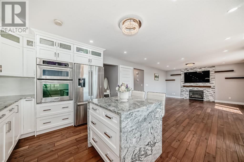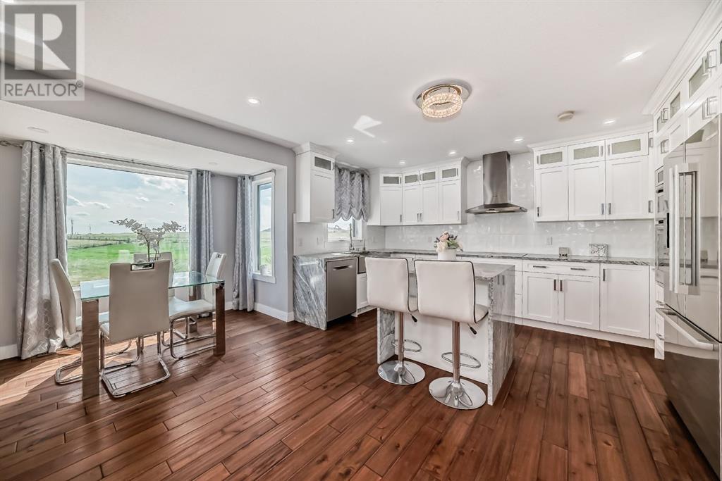 Welcome to this beautiful home in Paradise! Conveniently located only few minutes away from Calgary and all amenities of Chestermere. This home is situated on 4 acres of land and has been substantially renovated in last 5 years. New kitchen, appliances, bathrooms, hardwood and custom stone tiled floors on the inside and windows, doors, new roof, Hardie board and stone siding, new septic tank on the outside. Home features 4 bedroom, 2 offices and open concept kitchen, large living room with tons of natural light thouout the house. Downstairs is 2 bedroom illegal suite with large eat in kitchen and separate entrance. Oversized double attached garage has been remodelled and space for workshop or small business shop created. There is lots of parking space including RV parking and lots of space for gardening, a storage shed is included. Call your realtor to book a viewing. The city of Chestermere allowed a subdivision of this type of lots recently. (id:53676)