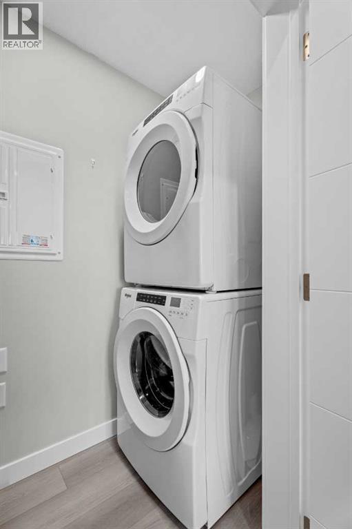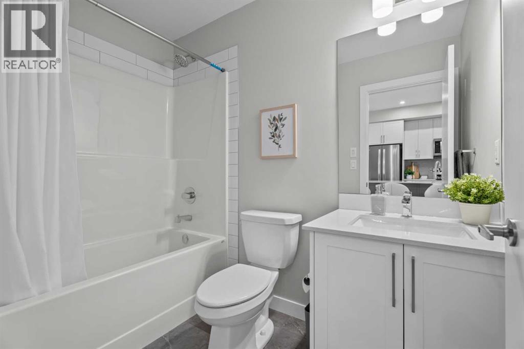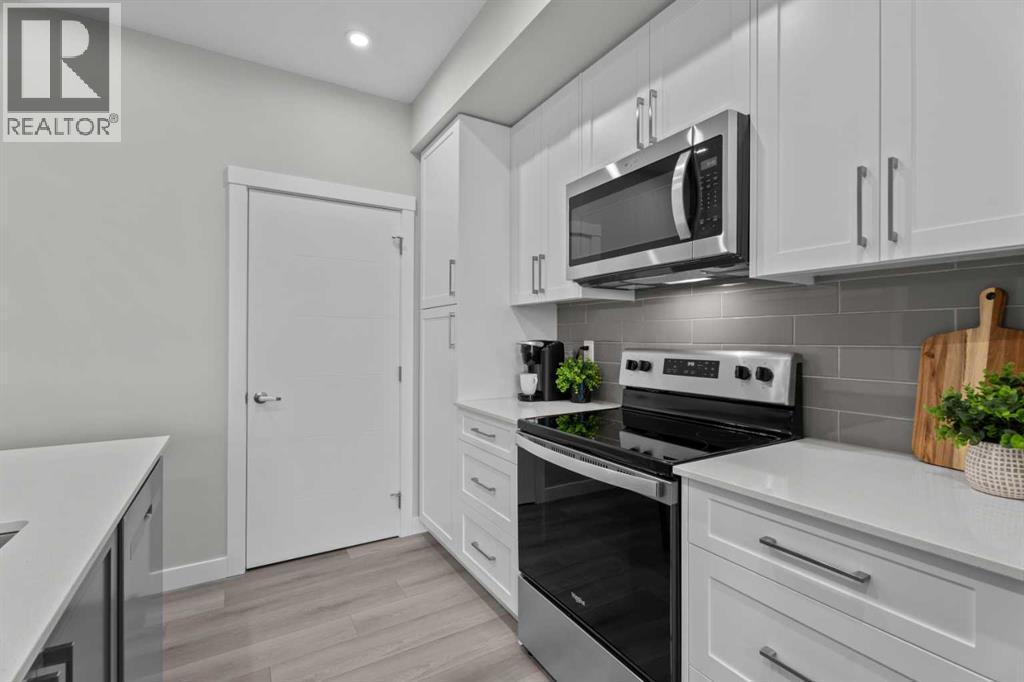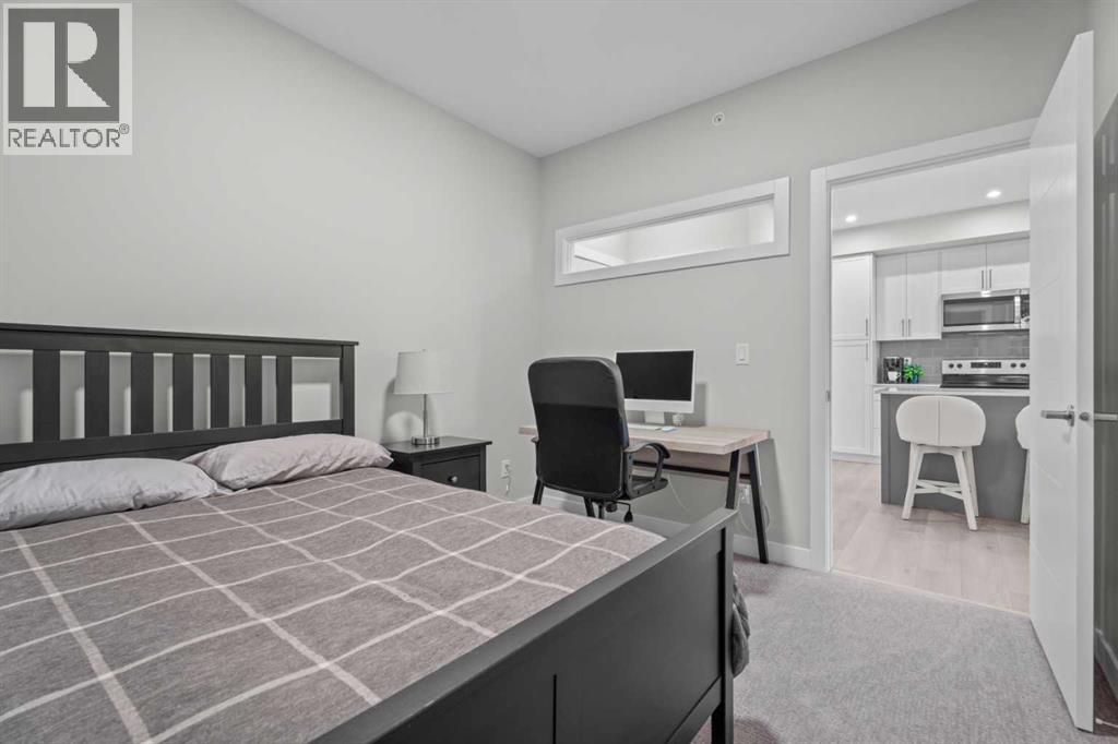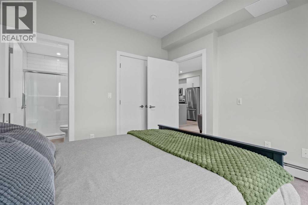 Better Than New in Lawrie Park! Gorgeous new construction without the wait!!Welcome to this gorgeous, upgraded 2 bedroom, 2 bathroom TOP FLOOR condo in the desirable Lawrie Park building in Wedderburn, Okotoks. Still under warranty and loaded with thoughtful upgrades, this home blends comfort, function, and style.Step into a bright white kitchen featuring a massive island, quartz countertops, and durable LVP flooring throughout the main living space. The open concept layout is perfect for entertaining or everyday living. Both bedrooms are spacious, with the primary suite offering a full ensuite and great closet space.Extras like in suite laundry, air conditioning, and a large balcony (with mountain views on a clear day!) overlooking the dog park make this home even more appealing, especially in a pet friendly building! You'll also enjoy the convenience of a heated underground parking stall, separate storage locker, and low condo fees.Located in vibrant Wedderburn, you're close to walking paths, schools, and exciting new commercial development. This condo truly feels better than new, move in and enjoy maintenance free living at its finest! (id:53676)