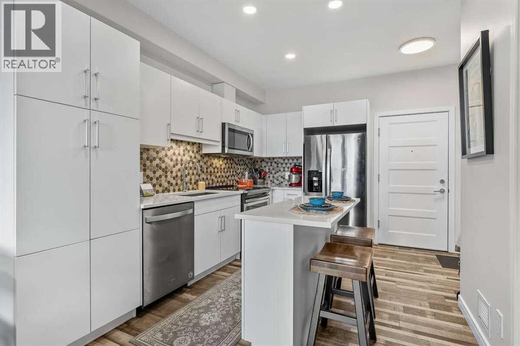 *** For more information, please click the "More Information" button. *** Welcome to Your New Home in Greenwich, Calgary! Nestled in the sought-after Greenwich community, this charming 1-bedroom condo offers the perfect blend of modern convenience and urban living. Located just steps away from the Calgary Farmers' Market West, you'll enjoy easy access to fresh local produce, artisanal goods, and delicious eats – all year round! Inside, this condo boasts an open-concept layout with plenty of natural light, creating a welcoming and airy atmosphere. The spacious living area is perfect for both relaxation and entertaining, while the well-appointed kitchen features sleek, contemporary finishes and ample storage space. Key Features: 1 generous bedroom with walkthrough closet; Bright and inviting living area with large windows; Large balcony with natural gas hook-up; LVP flooring with in-floor heating; Upgraded kitchen with quartz countertops, upgraded stainless steel appliances, and functional island; laundry with full-size stacked washer and dryer for ultimate convenience. Condo fees include: Common area maintenance, Heat, Water, Natural gas (BBQ), Waste removal, Parking, Property Management, Reserve Fund contributions. Titled parking stall. Walkable to Calgary Farmers' Market West for easy shopping and dining. Easy access to WinSport, COP and GoodLifeFitness. Whether you're a first-time buyer or looking to downsize, this condo offers a perfect balance of comfort and location. Enjoy the best of both worlds – a peaceful retreat with quick access to vibrant shopping, dining, and recreation. Don't miss your chance to call this condo home. (id:53676)
