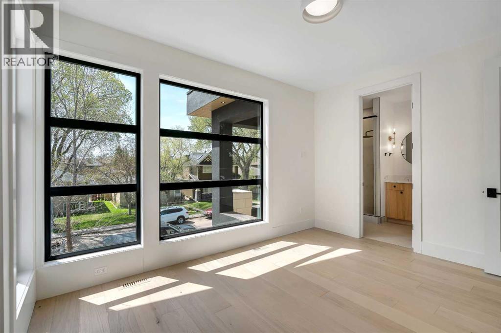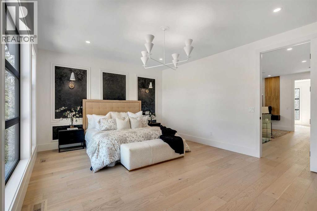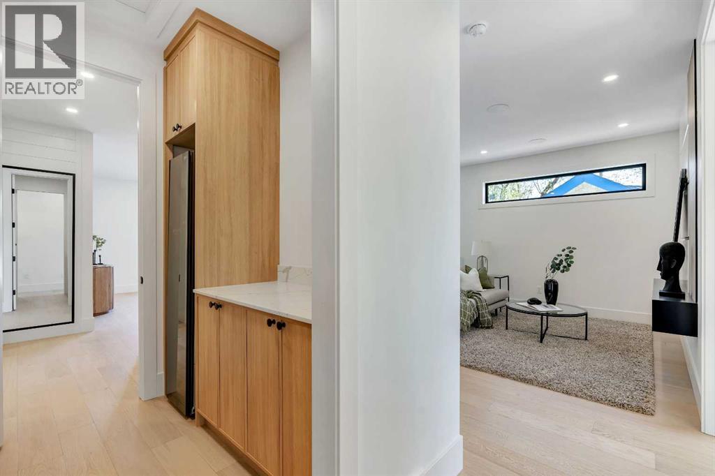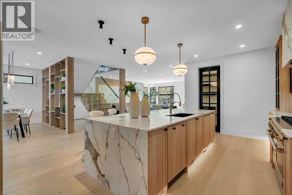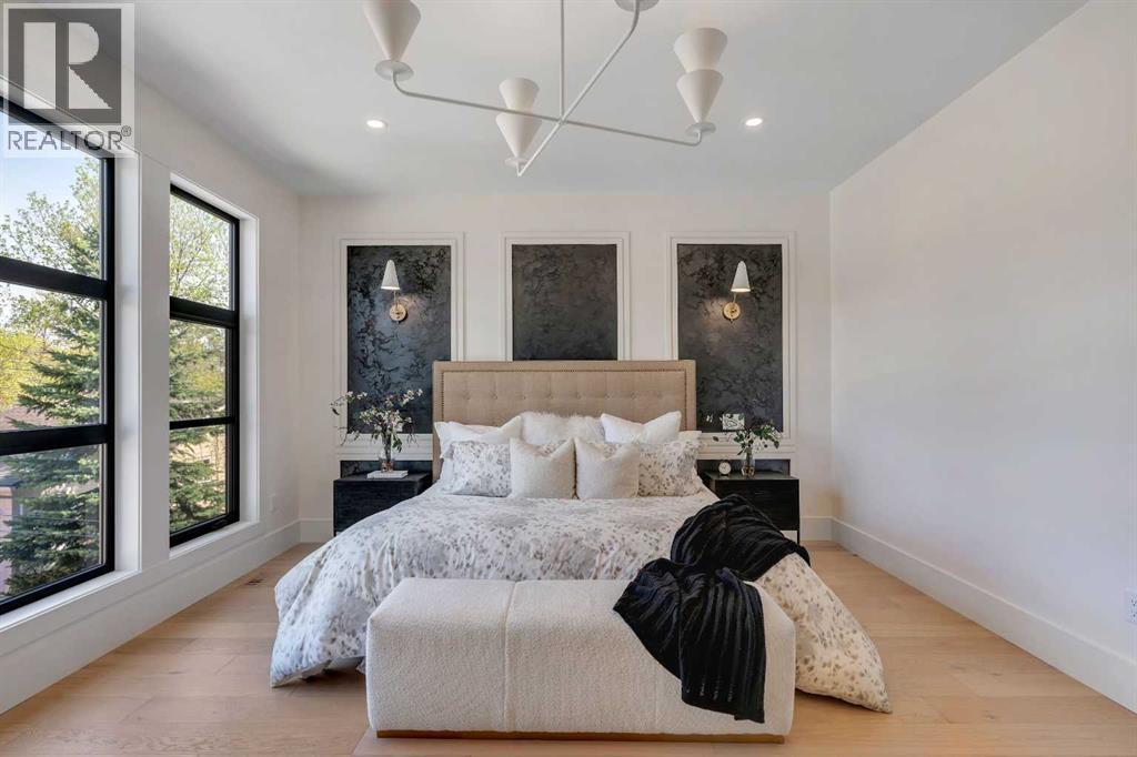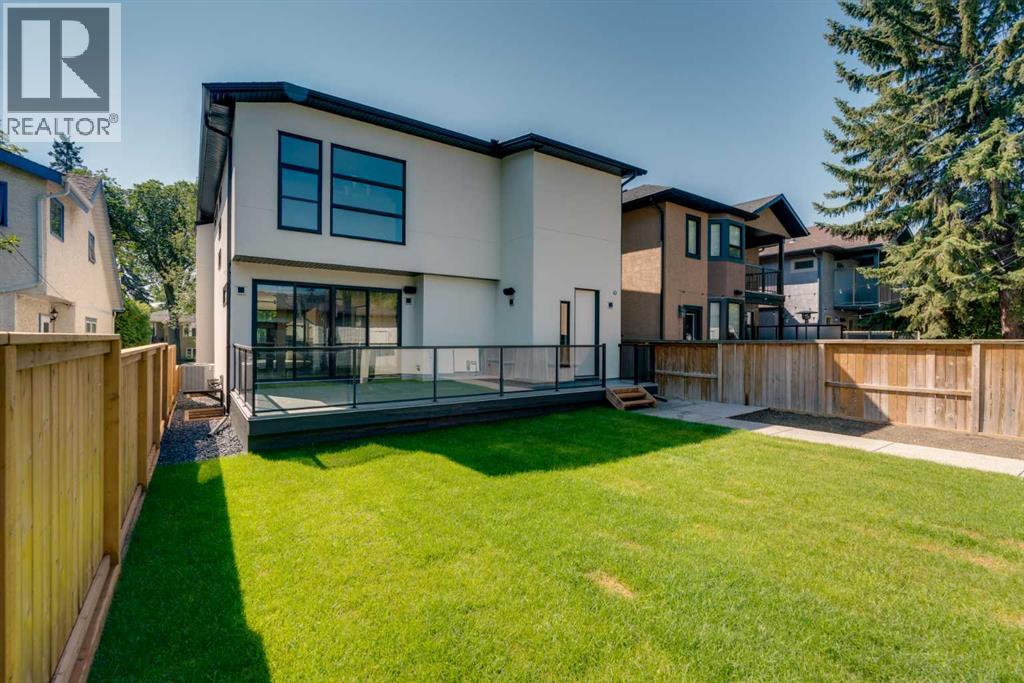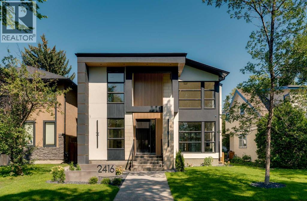 | BRAND NEW CUSTOM 2-STOREY DETACHED HOME | 4 BEDS | 4.5 BATHS | OVERSIZED 4 CAR GARAGE | OVER 4,300 SQFT OF LIVING SPACE | BONUS ROOM | CENTRAL VAC SYSTEM | AC UNIT | UPGRADED TANKLESS WATER SYSTEM | BASEMENT HEATED FLOOR BOILER SYSTEM | MUDROOM DOG WASH STATION | Welcome to a stunning custom-built luxury home in the well-known luxurious community West Hillhurst offering over 4,300 sqft of living space, tastefully designed with 4 bedrooms and 4.5 bathrooms. The modern architectural design complements the exterior entrance with stunning metal cladding detail, and modern stone feature designs enhance the floor-to-ceiling windows with a black and off-white stucco appearance. This home is like no other, including a detached 4-car garage with an upgraded third full-sized garage door for multi-use convenience, accessing your fully landscaped private backyard oasis. As you enter the main floor, you'll be greeted by an open concept floor plan curated for all your needs, featuring white oak hardwood upgraded on all three floors with oversized windows flooding the home with natural light. At the heart of the home, the chef’s kitchen showcases top-of-the-line Jenn-Air appliances, upgraded quartz countertops, a backsplash and a hood fan with a custom island featuring its breakfast nook table. The home is dressed with Delta and Brizo Artesso fixtures throughout. A full-sized pantry and a second butler's pantry provide additional prep and storage space, including a separate full-sized freezer and convection oven. The formal dining area and main floor full-sized wet bar are conveniently located with easy indoor to outdoor backyard access, making it easy to accommodate gatherings. Additional highlights include a main floor office upgraded with floor-to-ceiling glass walls, an exclusive alabaster lighting package, interior & exterior speakers, solid wooden 8ft doors, built-in walk-in closets in every room and upgraded in-floor heating systems in every bathroom, with custom wooden m illwork throughout the home and textured plastered walls. The upper-level floor plan offers a bonus room and two generously sized bedrooms with bathroom suites. The luxurious primary suite has a floor plan with convenient access to the laundry room as you walk through a fully custom oversized walk-in closet with floor-to-ceiling built-ins. A spa-like ensuite featuring a freestanding tub, his and hers vanities, a full custom steam shower with jets and a built-in mini vacuum system. The fully developed basement enhances the home with a large open-concept recreation room, with features including a wine cellar, a wet bar, a gym, an additional bedroom, and a full bathroom. The finishes of this home are like no other, a rare gem that is a must-see!! (id:53676)