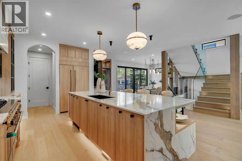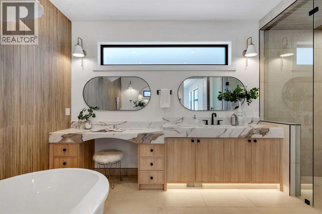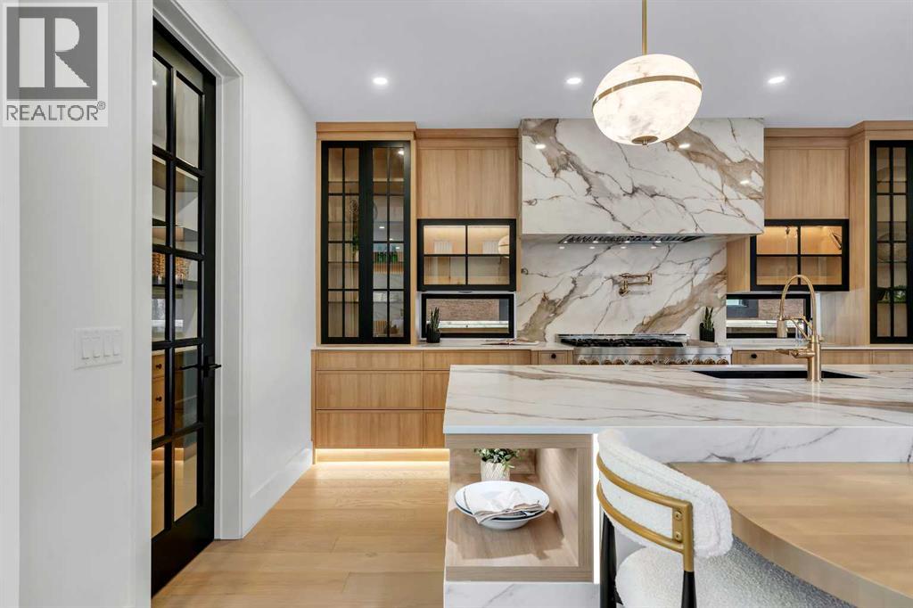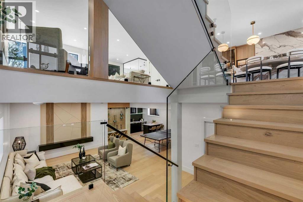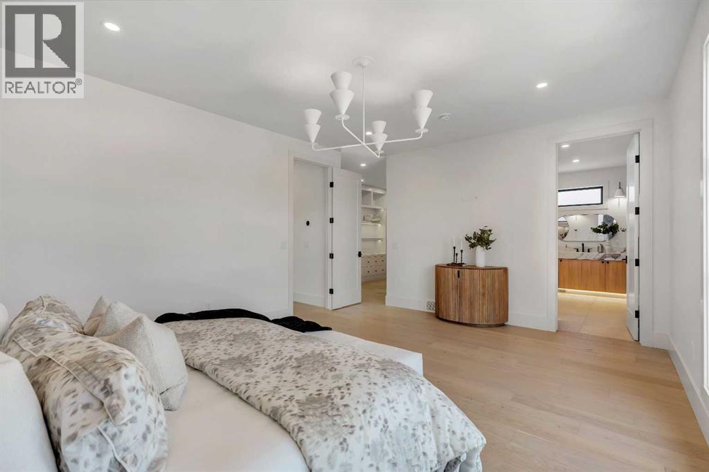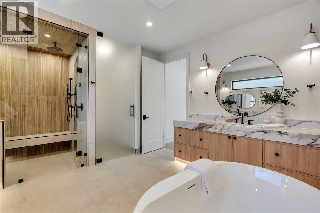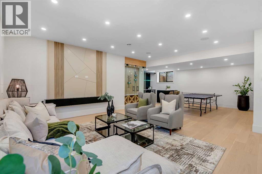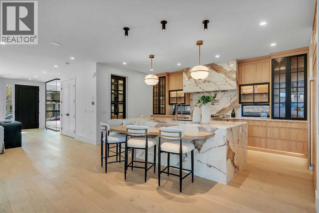 | BRAND NEW CUSTOM 2-STOREY DETACHED HOME | 4 BEDS | 4.5 BATHS | OVERSIZED 4 CAR GARAGE | OVER 4,300 SQFT OF LIVING SPACE | BONUS ROOM | CENTRAL VAC SYSTEM | AC UNIT | UPGRADED TANKLESS WATER SYSTEM | BASEMENT HEATED FLOOR BOILER SYSTEM | MUDROOM DOG WASH STATION | Welcome to a stunning custom-built luxury home in the well-known luxurious community West Hillhurst offering over 4,300 sqft of living space, tastefully designed with 4 bedrooms and 4.5 bathrooms. The modern architectural design complements the exterior entrance with stunning metal cladding detail, and modern stone feature designs enhance the floor-to-ceiling windows with a black and off-white stucco appearance. This home is like no other, including a detached 4-car garage with an upgraded third full-sized garage door for multi-use convenience, accessing your fully landscaped private backyard oasis. As you enter the main floor, you'll be greeted by an open concept floor plan curated for all your needs, featuring white oak hardwood upgraded on all three floors with oversized windows flooding the home with natural light. At the heart of the home, the chef’s kitchen showcases top-of-the-line Jenn-Air appliances, upgraded quartz countertops, a backsplash and a hood fan with a custom island featuring its breakfast nook table. The home is dressed with Delta and Brizo Artesso fixtures throughout. A full-sized pantry and a second butler's pantry provide additional prep and storage space, including a separate full-sized freezer and convection oven. The formal dining area and main floor full-sized wet bar are conveniently located with easy indoor to outdoor backyard access, making it easy to accommodate gatherings. Additional highlights include a main floor office upgraded with floor-to-ceiling glass walls, an exclusive alabaster lighting package, interior & exterior speakers, solid wooden 8ft doors, built-in walk-in closets in every room and upgraded in-floor heating systems in every bathroom, with custom wooden m illwork throughout the home and textured plastered walls. The upper-level floor plan offers a bonus room and two generously sized bedrooms with bathroom suites. The luxurious primary suite has a floor plan with convenient access to the laundry room as you walk through a fully custom oversized walk-in closet with floor-to-ceiling built-ins. A spa-like ensuite featuring a freestanding tub, his and hers vanities, a full custom steam shower with jets and a built-in mini vacuum system. The fully developed basement enhances the home with a large open-concept recreation room, with features including a wine cellar, a wet bar, a gym, an additional bedroom, and a full bathroom. The finishes of this home are like no other, a rare gem that is a must-see!! (id:53676)