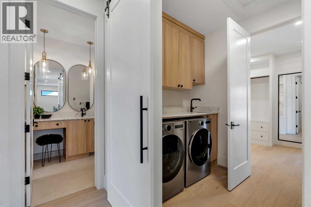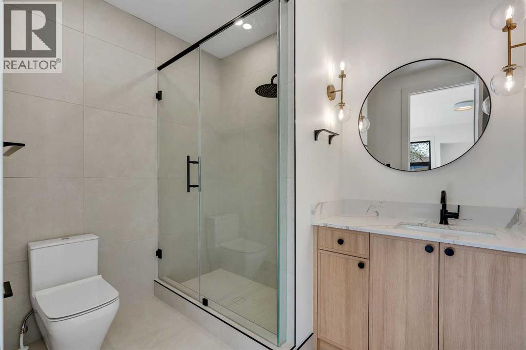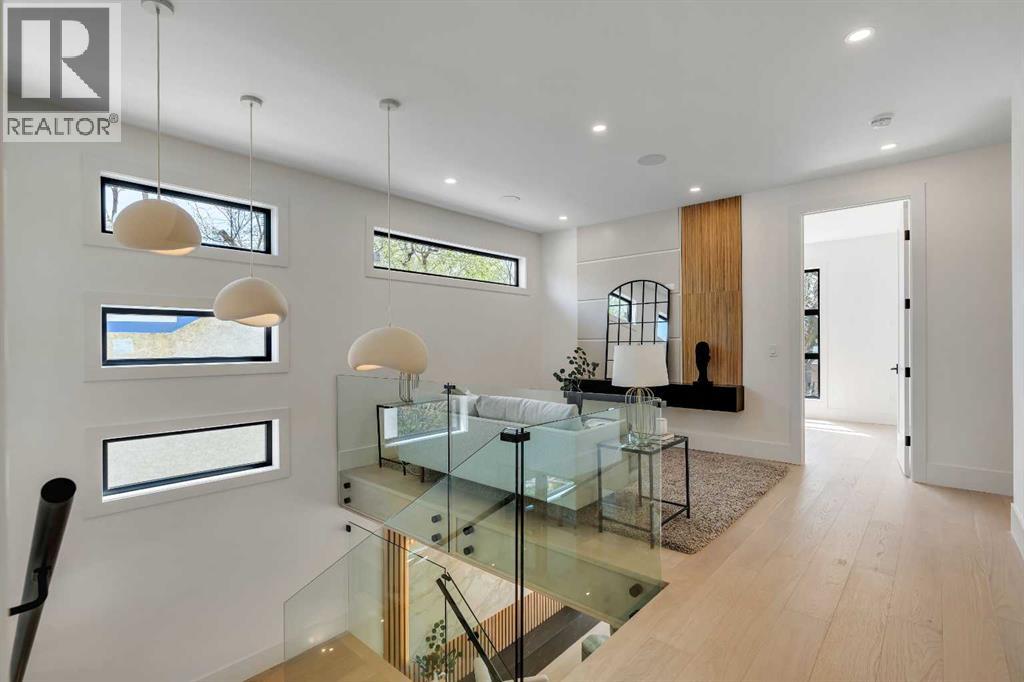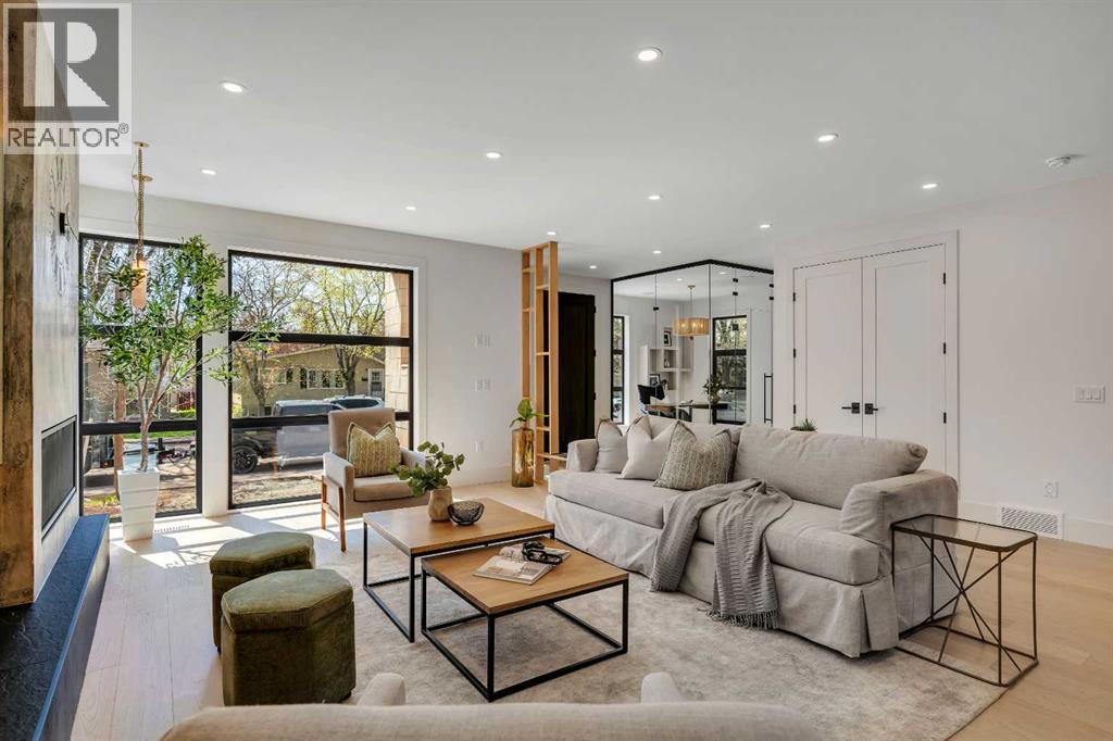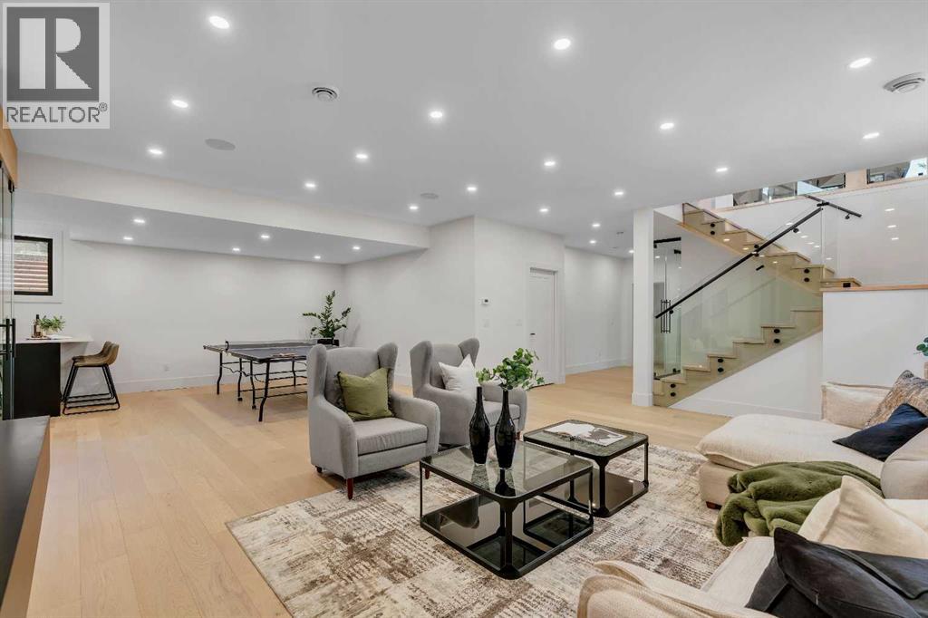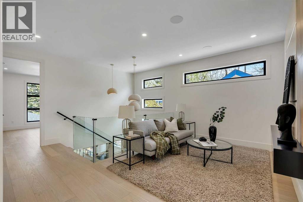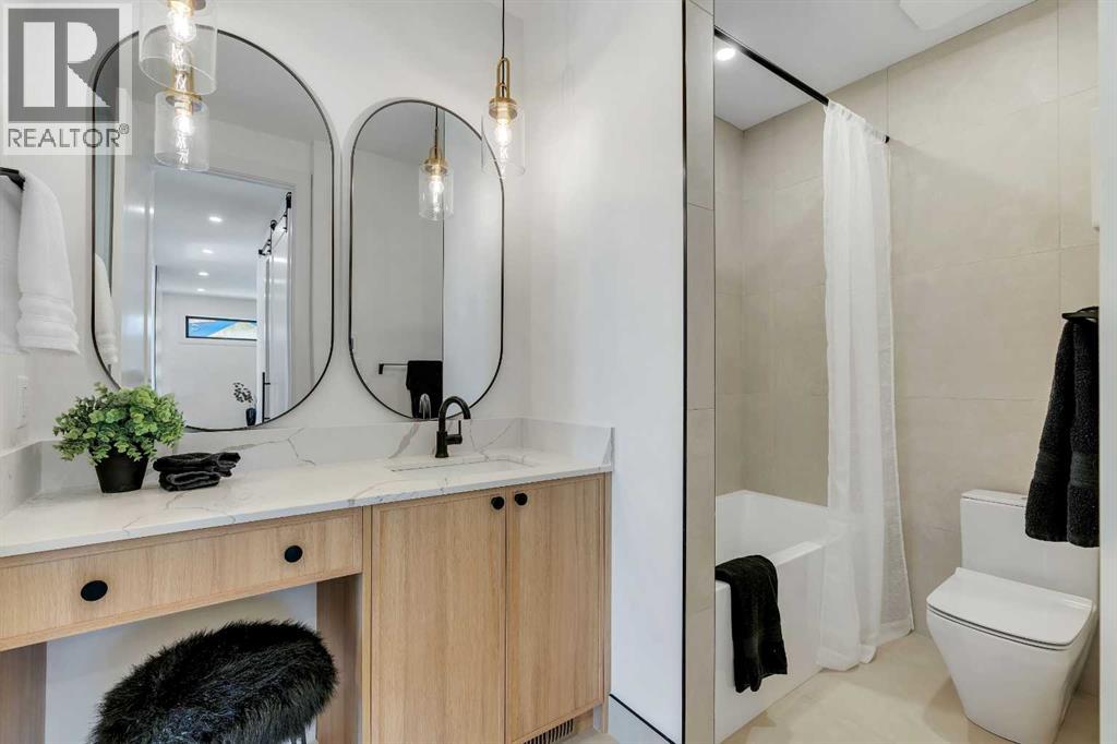 | BRAND NEW CUSTOM 2-STOREY DETACHED HOME | 4 BEDS | 4.5 BATHS | OVERSIZED 4 CAR GARAGE | OVER 4,300 SQFT OF LIVING SPACE | BONUS ROOM | CENTRAL VAC SYSTEM | AC UNIT | UPGRADED TANKLESS WATER SYSTEM | BASEMENT HEATED FLOOR BOILER SYSTEM | MUDROOM DOG WASH STATION | Welcome to a stunning custom-built luxury home in the well-known luxurious community West Hillhurst offering over 4,300 sqft of living space, tastefully designed with 4 bedrooms and 4.5 bathrooms. The modern architectural design complements the exterior entrance with stunning metal cladding detail, and modern stone feature designs enhance the floor-to-ceiling windows with a black and off-white stucco appearance. This home is like no other, including a detached 4-car garage with an upgraded third full-sized garage door for multi-use convenience, accessing your fully landscaped private backyard oasis. As you enter the main floor, you'll be greeted by an open concept floor plan curated for all your needs, featuring white oak hardwood upgraded on all three floors with oversized windows flooding the home with natural light. At the heart of the home, the chef’s kitchen showcases top-of-the-line Jenn-Air appliances, upgraded quartz countertops, a backsplash and a hood fan with a custom island featuring its breakfast nook table. The home is dressed with Delta and Brizo Artesso fixtures throughout. A full-sized pantry and a second butler's pantry provide additional prep and storage space, including a separate full-sized freezer and convection oven. The formal dining area and main floor full-sized wet bar are conveniently located with easy indoor to outdoor backyard access, making it easy to accommodate gatherings. Additional highlights include a main floor office upgraded with floor-to-ceiling glass walls, an exclusive alabaster lighting package, interior & exterior speakers, solid wooden 8ft doors, built-in walk-in closets in every room and upgraded in-floor heating systems in every bathroom, with custom wooden m illwork throughout the home and textured plastered walls. The upper-level floor plan offers a bonus room and two generously sized bedrooms with bathroom suites. The luxurious primary suite has a floor plan with convenient access to the laundry room as you walk through a fully custom oversized walk-in closet with floor-to-ceiling built-ins. A spa-like ensuite featuring a freestanding tub, his and hers vanities, a full custom steam shower with jets and a built-in mini vacuum system. The fully developed basement enhances the home with a large open-concept recreation room, with features including a wine cellar, a wet bar, a gym, an additional bedroom, and a full bathroom. The finishes of this home are like no other, a rare gem that is a must-see!! (id:53676)
