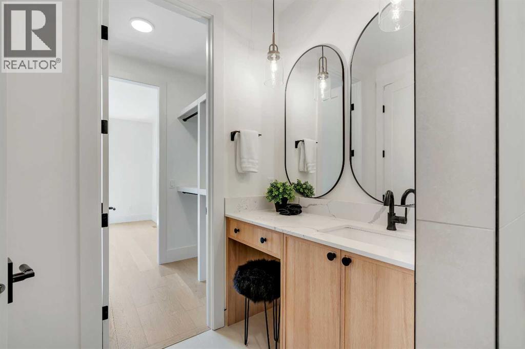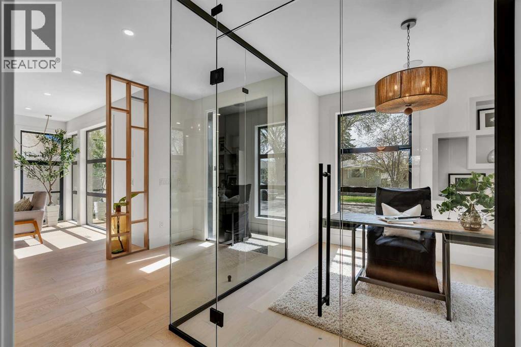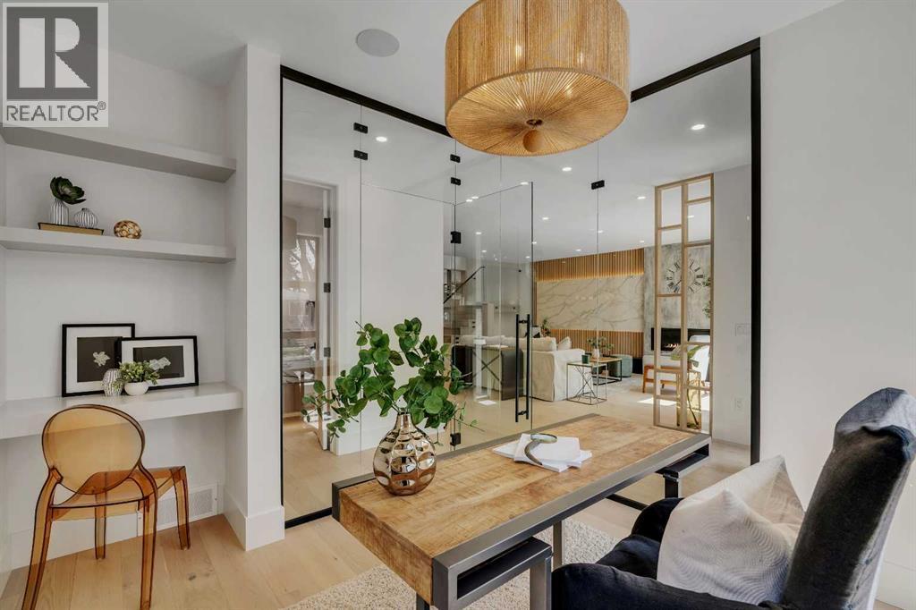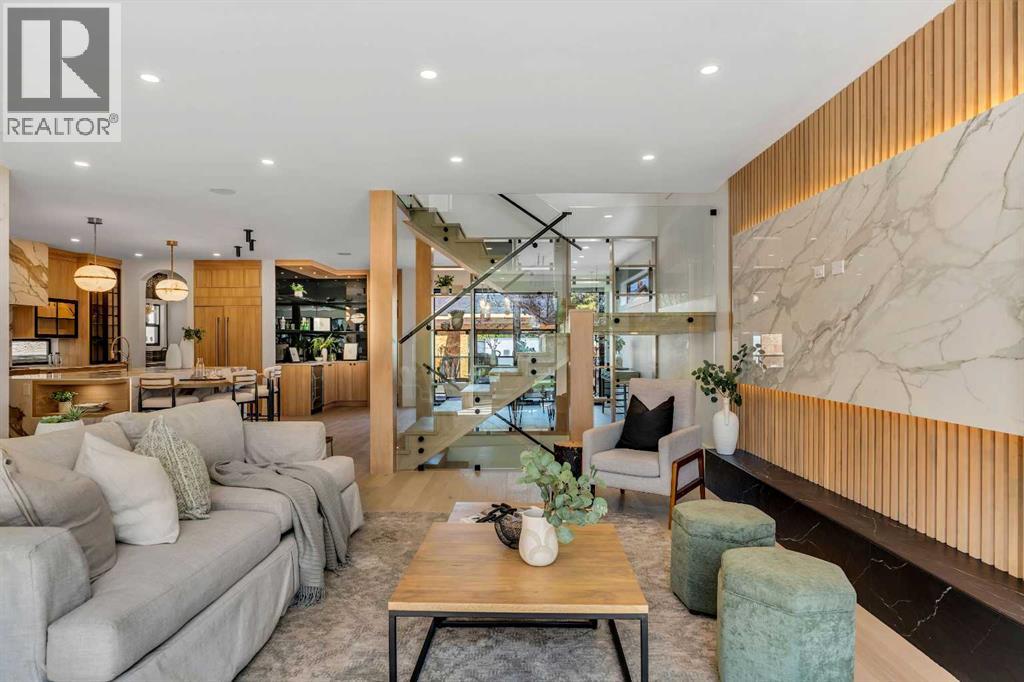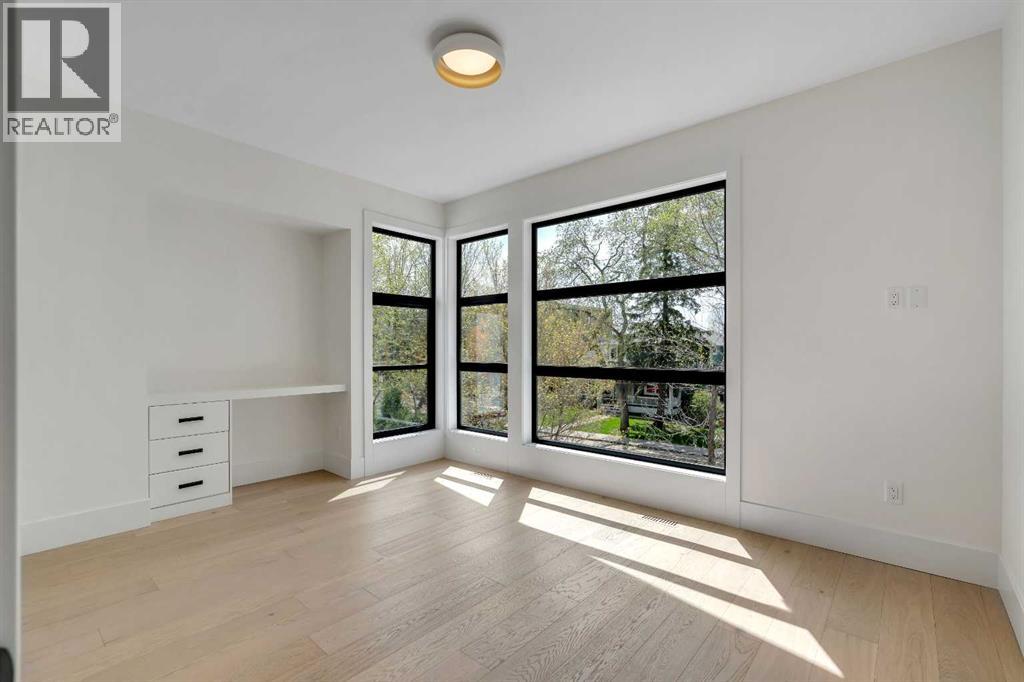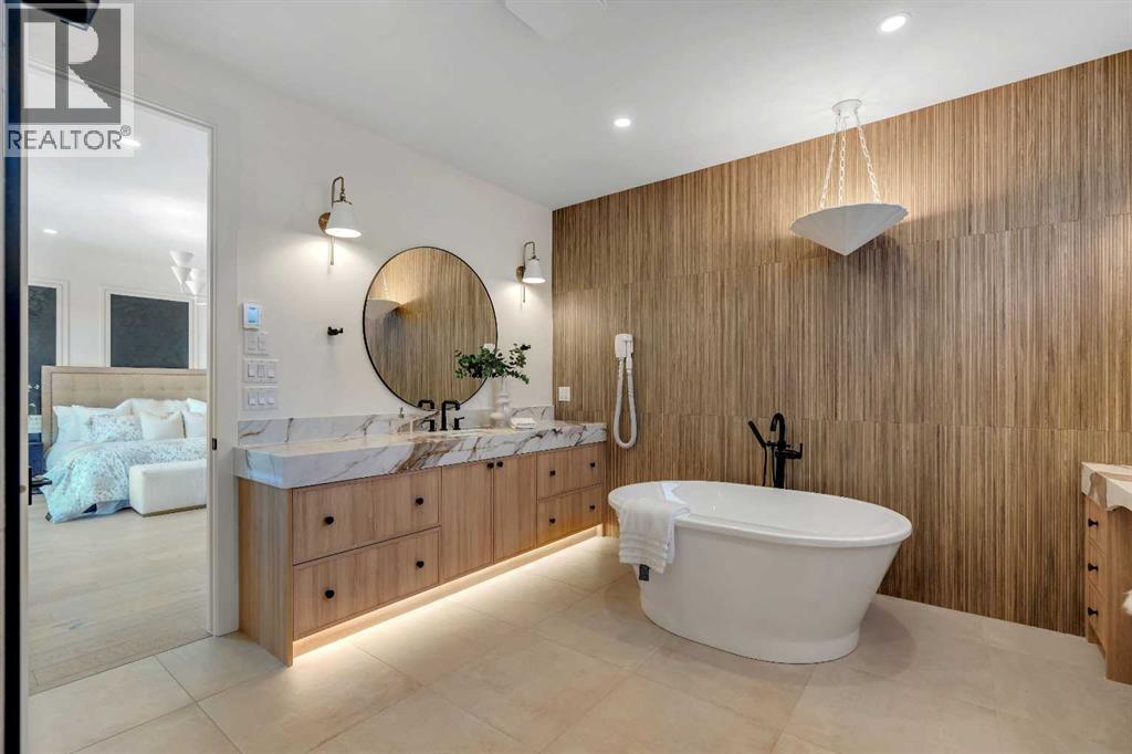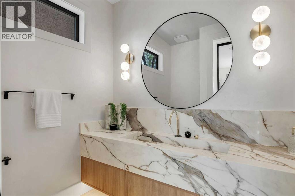 | BRAND NEW CUSTOM 2-STOREY DETACHED HOME | 4 BEDS | 4.5 BATHS | OVERSIZED 4 CAR GARAGE | OVER 4,300 SQFT OF LIVING SPACE | BONUS ROOM | CENTRAL VAC SYSTEM | AC UNIT | UPGRADED TANKLESS WATER SYSTEM | BASEMENT HEATED FLOOR BOILER SYSTEM | MUDROOM DOG WASH STATION | Welcome to a stunning custom-built luxury home in the well-known luxurious community West Hillhurst offering over 4,300 sqft of living space, tastefully designed with 4 bedrooms and 4.5 bathrooms. The modern architectural design complements the exterior entrance with stunning metal cladding detail, and modern stone feature designs enhance the floor-to-ceiling windows with a black and off-white stucco appearance. This home is like no other, including a detached 4-car garage with an upgraded third full-sized garage door for multi-use convenience, accessing your fully landscaped private backyard oasis. As you enter the main floor, you'll be greeted by an open concept floor plan curated for all your needs, featuring white oak hardwood upgraded on all three floors with oversized windows flooding the home with natural light. At the heart of the home, the chef’s kitchen showcases top-of-the-line Jenn-Air appliances, upgraded quartz countertops, a backsplash and a hood fan with a custom island featuring its breakfast nook table. The home is dressed with Delta and Brizo Artesso fixtures throughout. A full-sized pantry and a second butler's pantry provide additional prep and storage space, including a separate full-sized freezer and convection oven. The formal dining area and main floor full-sized wet bar are conveniently located with easy indoor to outdoor backyard access, making it easy to accommodate gatherings. Additional highlights include a main floor office upgraded with floor-to-ceiling glass walls, an exclusive alabaster lighting package, interior & exterior speakers, solid wooden 8ft doors, built-in walk-in closets in every room and upgraded in-floor heating systems in every bathroom, with custom wooden m illwork throughout the home and textured plastered walls. The upper-level floor plan offers a bonus room and two generously sized bedrooms with bathroom suites. The luxurious primary suite has a floor plan with convenient access to the laundry room as you walk through a fully custom oversized walk-in closet with floor-to-ceiling built-ins. A spa-like ensuite featuring a freestanding tub, his and hers vanities, a full custom steam shower with jets and a built-in mini vacuum system. The fully developed basement enhances the home with a large open-concept recreation room, with features including a wine cellar, a wet bar, a gym, an additional bedroom, and a full bathroom. The finishes of this home are like no other, a rare gem that is a must-see!! (id:53676)