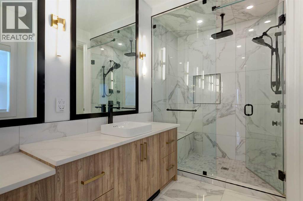 HOME SWEET HOME! Modern luxury meets thoughtful design in this MARDA LOOP MASTERPIECE situated in the heart of the extremely sought-after community of Richmond! This exceptional, WALKOUT HOME was CUSTOM-BUILT in 2023 offering the ultimate in luxury living with 4 bedrooms, 3.5 bathrooms and 3,009 SQFT of breathtaking, flawless SQFT throughout loaded with thoughtfully appointed, stylish upgrades and built-ins throughout. The main floor features a sun-drenched, open-concept layout that seamlessly connects the bright foyer with a built-in bench, massive living room, formal dining room, kitchen, and elegant powder room. At the heart of the home is the gourmet chef’s kitchen outfitted with top-tier appliances including a Sub-Zero fridge, Gas Stove, garburator, and a hidden coffee/appliance pantry. Wide-plank hardwood flooring on upper and main levels, upgraded lighting, and a walkout to a private back balcony elevate the space with both style and function. Upstairs, you’ll find three spacious bedrooms, including two with walk-in closets, perfect for all of your needs. The primary bedroom is a luxurious retreat, complete with a spa-inspired 5 piece ensuite featuring a steam shower, separate soaker tub, dual vanities, generous counter space, and elegant tilework. A dedicated laundry room with built-in storage adds everyday ease. The fully developed WALKOUT BASEMENT includes a fourth bedroom, a full bathroom, a glass-enclosed office (potential to convert to a wine room), and a stylish wet bar alongside a generous recreation/media room, the perfect setting for movie nights or entertaining. There’s also ample storage and utility space for all of your needs. Enjoy your inner city private outdoor oasis with a fully fenced and beautifully manicured backyard, covered patio, large deck that is ideal for sunny nights and entertaining and your spacious double detached garage with epoxy flooring. ADDITIONAL UPGRADES include luxury hardwood and ceramic tile flooring, custom blinds an d built-in closets, upgraded appliances, lighting, central air conditioning, new home warranty, high efficiency furnace and more. Located just steps from the vibrant shops, cafes, and restaurants of Marda Loop, yet tucked away from the main hustle, you’ll have the best of both worlds: walkable convenience without the congestion. Parks, Marda Loop Community Centre, Richmond Community Centre and Richmond School and other excellent schools are all close by, major roadways including Crow Child and close to 17th Ave and Downtown Calgary hot spots. Builder is Newlook Homes Ltd. Don’t miss your chance to own this one-of-a-kind property! MUST VIEW! Book your private tour of this GEM today! (id:53676)