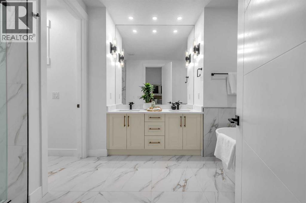 **OPEN HOUSE SATURDAY AND SUNDAY OCT 11TH & 12TH BETWEEN 1:30PM-4PM** BOTH SIDES AVAILABLE & QUICK POSSESSION AVAILABLE!** Welcome to this truly remarkable residence in the heart of the highly desirable North Glenmore Park community, where contemporary architecture meets meticulous craftsmanship. This property seamlessly blends luxury, functionality, and investment potential. South-facing backyard, and a 2-bedroom legal basement suite, this home offers unparalleled comfort, elegance, and versatility for families and investors alike. From the moment you step through the door, you’ll be captivated by the open-concept layout, high-end finishes, and abundance of natural light. The main floor is an entertainer’s dream, designed to maximize functionality without compromising style. The central gourmet kitchen is the heart of the home, featuring stainless steel appliances, custom high-rise cabinetry, quartz countertops, a spacious built-in pantry, and a large island with bar seating. Whether you’re hosting dinner parties or enjoying casual meals with family, this kitchen is sure to impress. The kitchen also features a coffee bar that has a sink. Adjacent to the kitchen, the dining area is flooded with light from oversized windows, creating a warm and inviting space for gatherings. The main-floor office, thoughtfully tucked away, provides the perfect environment for productivity, whether for remote work, study, or personal projects. A well-organized mudroom, complete with built-in storage and a bench, adds a layer of convenience, while the elegantly designed half bathroom enhances the functionality of this level. The upper floor continues to impress with its focus on luxury and practicality. The primary suite is a true retreat, featuring sky-high vaulted ceilings, a walk-in closet, and a spa-like 5-piece ensuite. The ensuite is a masterpiece in itself, offering a free-standing soaker tub, a walk-in rain shower, dual sinks, and premium finishes, creating a space that feels like your own private sanctuary. Two additional bedrooms, each with sophisticated tray ceiling accents, provide comfort and style for family members or guests. A spacious laundry room with a sink, counter space, and linen storage ensures organization and efficiency on this level. One of the home’s standout features is the fully developed legal basement suite, which offers a host of possibilities. With its own private side entrance, this legal suite is designed for maximum privacy and functionality. It includes two spacious bedrooms, a sleek kitchen with quartz countertops and modern finishes, a stylish 4-piece bathroom, and its own laundry facilities. Whether used as a mortgage helper, a rental property, or a space for extended family, this legal suite is a valuable addition to the home. Close to parks, schools, shopping, Mount Royal University, Marda Loop, Lakeview Golf Course, easy access to Crowchild and Glenmore Trail and so much more. (id:53676)