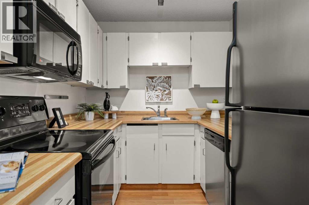 This spacious 2-bedroom suite in the desirable community of Glamorgan checks all the boxes—prime location, versatile layout, and the quiet comfort of top-floor living. With quick access to Stoney Trail, major amenities, and even weekend getaways to the Rockies, convenience is at your doorstep.Inside, you’ll love the oversized floor plan with room to live, work, and entertain. The bright kitchen with a pass-through keeps you connected while cooking, while the expansive living room boasts a cozy wood-burning fireplace and opens to a large private deck with extra storage. The dining area offers flexibility—perfect for a home office, den, or guest space.Both bedrooms are generously sized and positioned on opposite sides of the suite for privacy, with a massive 5-piece bathroom featuring double sinks and in-suite laundry completing the package.And here’s the bonus: exterior updates are already underway, meaning fresh curb appeal is on the horizon. Move in now and enjoy all the benefits of a well-established community with modern upgrades. (id:53676)