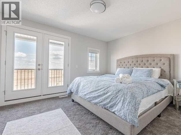 Step into sophistication and elegance at 249 Calhoun Common NE, where timeless design meets modern comfort in the heart of Livingston. This beautifully crafted Carlisle 2 – Farmhouse Elevation offers over 1,820 sq. ft. of refined living space, thoughtfully designed for those who value style, comfort, and community.The welcoming foyer with designer accents leads into a versatile barn door flex room, perfect for a private office or reading lounge, while a tucked-away powder room adds modern convenience. The open-concept great room is anchored by a feature fireplace wall, creating a warm yet luxurious setting for entertaining.The chef’s dream kitchen boasts quartz countertops, full-height cabinetry, a built-in oven and cooktop, high-end stainless steel appliances, and an expansive island designed for both casual dining and elegant hosting, seamlessly flowing into the dining area drenched in natural light.Upstairs, a lavish primary retreat awaits with a walk-in closet, dual vanities, and a spa-inspired tiled shower, along with private balcony access where you can enjoy morning coffee or evening sunsets. Two additional bedrooms with spacious closets provide comfort for family or guests, while a sophisticated bonus room offers the perfect space for movie nights or quiet relaxation. An upper-floor laundry room ensures ultimate convenience.Throughout the home, elegant neutral finishes, crystal lighting fixtures, and dual-shade blinds bring a boutique hotel ambiance into everyday living. Also a side entrance to the lower level, while rear lane access is ready for your future garage or outdoor living oasis.Set in the master-planned community of Livingston, residents enjoy access to the 35,000 sq. ft. Livingston Hub with skating rinks, tennis courts, splash parks, playgrounds, and event spaces, along with expansive green spaces, walking paths, and parks designed to enrich wellness and leisure.Nearby shopping centres, grocery stores, schools, cafes, and gas stations add convenience, while quick access to Stoney Trail and Deerfoot Trail places the entire city within easy reach.This is more than a home—it’s a lifestyle, blending luxury living, modern design, and vibrant community in one of Calgary’s most desirable new neighbourhoods. Welcome to 249 Calhoun Common NE. (id:53676)