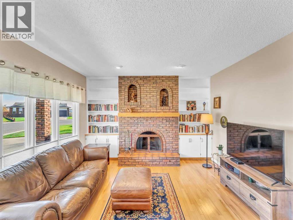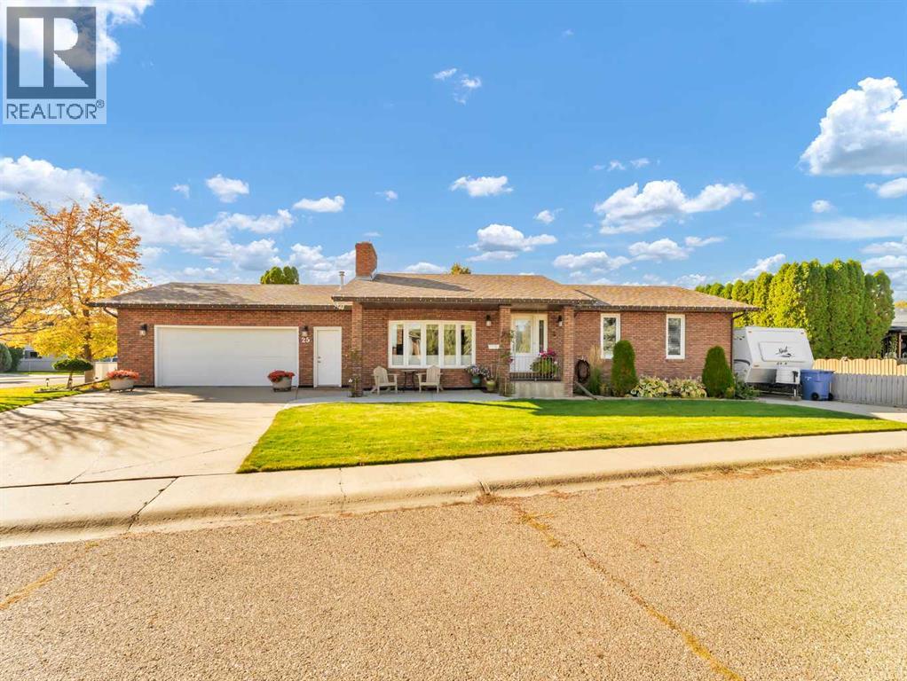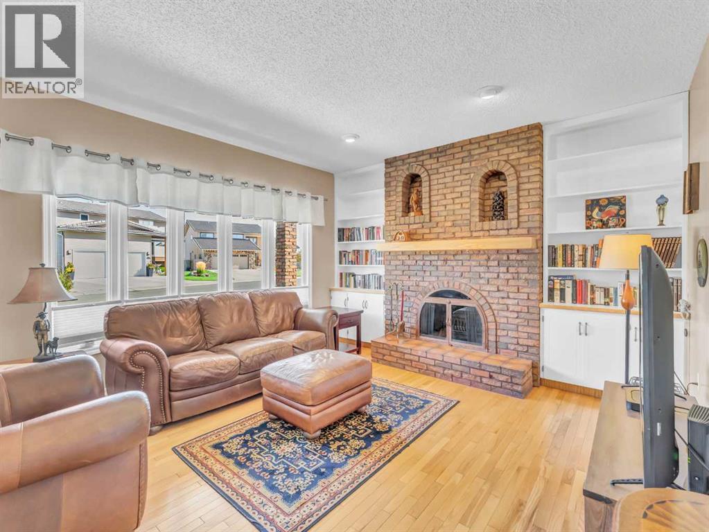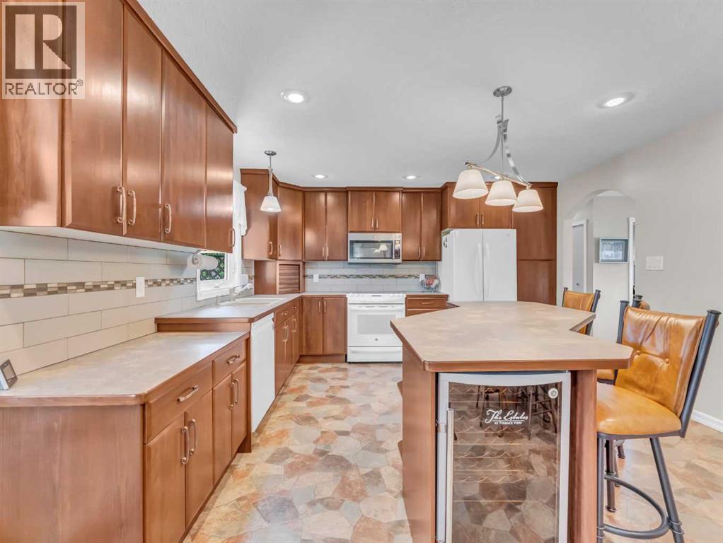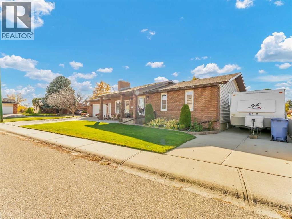 Pride of ownership is evident throughout this beautifully kept bungalow, ideally situated in a quiet, established neighborhood adjacent to scenic coulee trails. Enjoy the peaceful setting while still being minutes from parks, schools, shopping, and other amenities. As you step through the front door, you're greeted by a spacious, welcoming entryway that sets the tone for the entire home. Hardwood floors accent the large living room with oversized windows that flood the space with natural light. The main feature is a beautiful brick fireplace that has convenient built in shelving units on either side. The kitchen is impressively spacious and designed for both everyday living and entertaining, featuring a brand-new microwave and dishwasher, a large central island, complete with a wine fridge, and ample space to accommodate a full-sized dining table. The main floor offers three generously sized bedrooms, including a comfortable primary suite with a 3-piece ensuite bathroom. Convenient main floor laundry is located adjacent to a practical two-piece powder room near the back entry, ideal for busy households and guests. Downstairs, the fully developed basement provides even more space with a large den that can serve as an office, or craft room, along with an additional 3-piece bathroom. Outside, you'll appreciate the home's excellent curb appeal! The corner lot offers a large side yard with underground sprinklers, and a fenced back yard with shed and patio area. The oversized double-attached heated garage includes extra workshop space, perfect for hobbies, projects, or additional storage. There's also RV parking available! Additional upgrades include newer windows, air conditioning, added insulation, furnace (2023), HWT (2023), updated blinds, newer roof and more, all providing peace of mind for years to come. Move-in ready with so many thoughtful updates, this wonderful home offers an unbeatable combination of comfort, space, and location. Don’t miss your opportunity to make it yours! (id:53676)