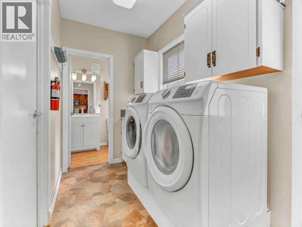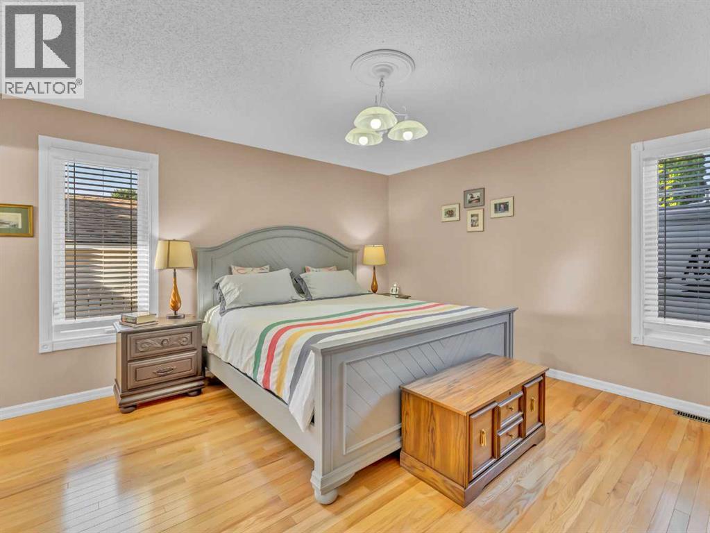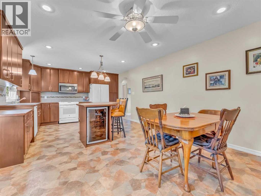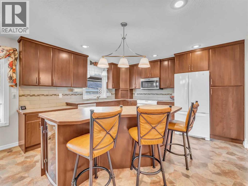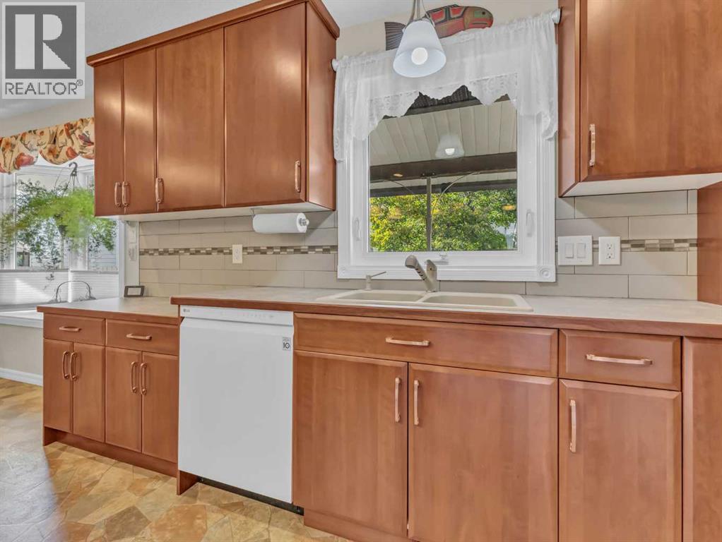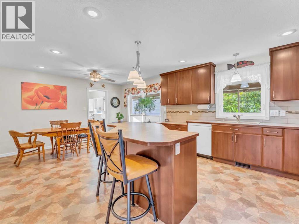 Pride of ownership is evident throughout this beautifully kept bungalow, ideally situated in a quiet, established neighborhood adjacent to scenic coulee trails. Enjoy the peaceful setting while still being minutes from parks, schools, shopping, and other amenities. As you step through the front door, you're greeted by a spacious, welcoming entryway that sets the tone for the entire home. Hardwood floors accent the large living room with oversized windows that flood the space with natural light. The main feature is a beautiful brick fireplace that has convenient built in shelving units on either side. The kitchen is impressively spacious and designed for both everyday living and entertaining, featuring a brand-new microwave and dishwasher, a large central island, complete with a wine fridge, and ample space to accommodate a full-sized dining table. The main floor offers three generously sized bedrooms, including a comfortable primary suite with a 3-piece ensuite bathroom. Convenient main floor laundry is located adjacent to a practical two-piece powder room near the back entry, ideal for busy households and guests. Downstairs, the fully developed basement provides even more space with a large den that can serve as an office, or craft room, along with an additional 3-piece bathroom. Outside, you'll appreciate the home's excellent curb appeal! The corner lot offers a large side yard with underground sprinklers, and a fenced back yard with shed and patio area. The oversized double-attached heated garage includes extra workshop space, perfect for hobbies, projects, or additional storage. There's also RV parking available! Additional upgrades include newer windows, air conditioning, added insulation, furnace (2023), HWT (2023), updated blinds, newer roof and more, all providing peace of mind for years to come. Move-in ready with so many thoughtful updates, this wonderful home offers an unbeatable combination of comfort, space, and location. Don’t miss your opportunity to make it yours! (id:53676)