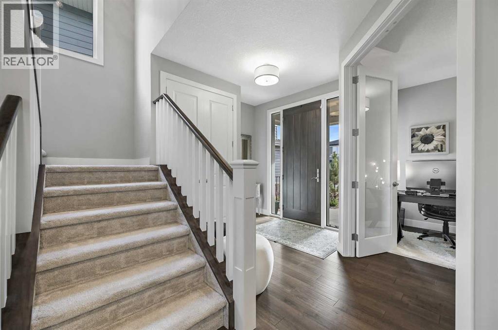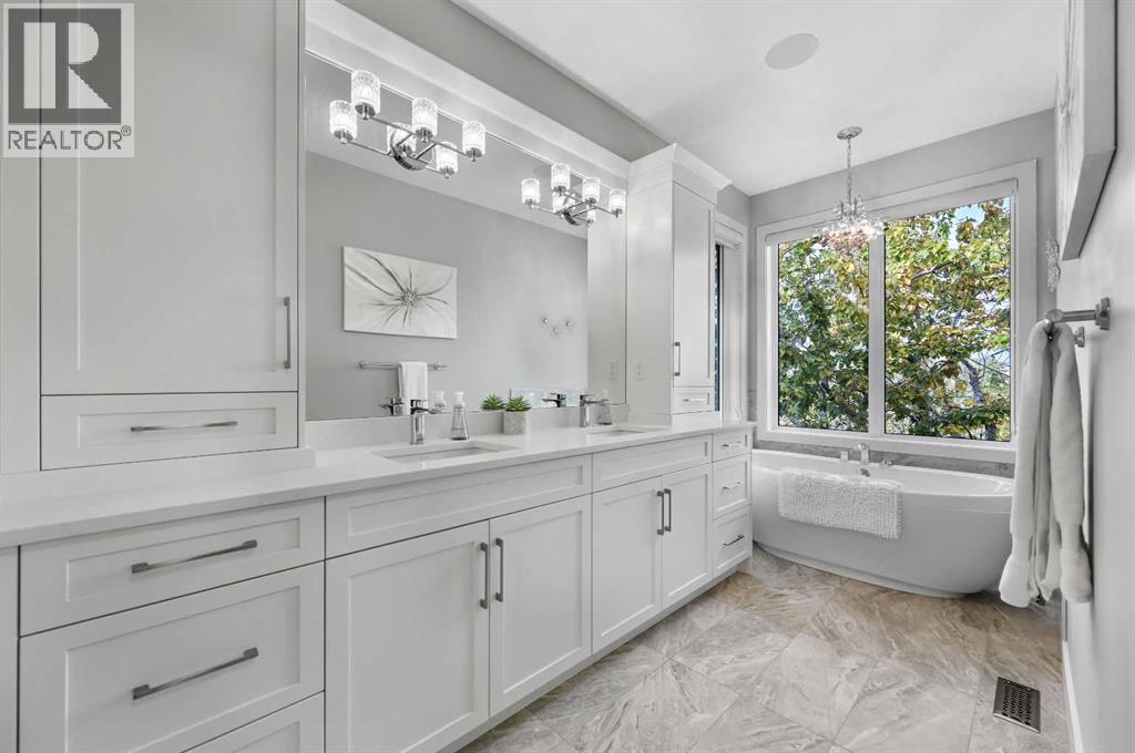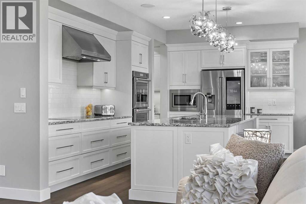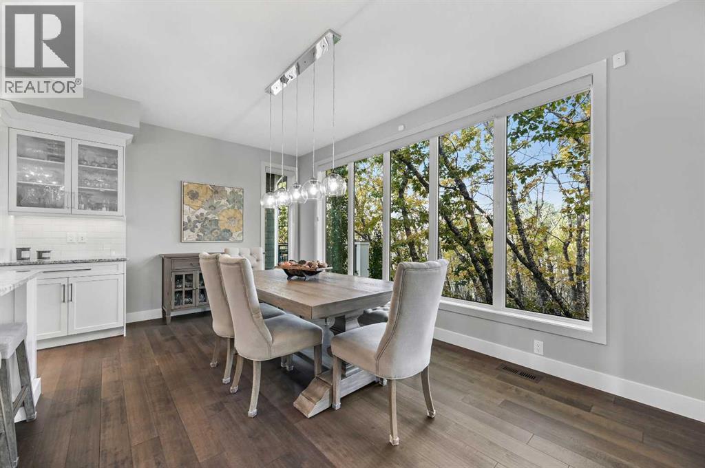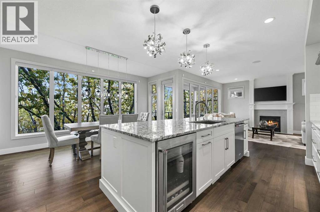 Welcome to this exceptional estate home crafted by Lupi Homes, ideally located in the highly sought-after community of Rock Lake Estates. Enveloped by mature trees, this residence offers over 4,000 sq ft of refined living space, where timeless design meets peaceful, nature-filled views and the quiet charm of the nearby lake. Step inside to soaring 9-foot ceilings, expansive windows, and timeless finishes. The main floor unfolds with a bright living room, framed by large picture windows that showcase serene views of the surrounding trees and glimpses of the lake beyond, flowing seamlessly into a spacious dining area ideal for entertaining. The chef’s kitchen impresses granite countertops, a massive central island, and premium appliances—including a built-in KitchenAid induction cooktop, built-in stainless steel hood fan, double wall ovens and microwave, Samsung smart refrigerator and a Frigidaire Gallery upright freezer. Thoughtful storage includes a walk-in and prep pantry, both with custom shelving and a built-in spice rack. Completing the main level are a private office, a 2-piece bath, and a well-designed mudroom with built-in bench and cabinetry. Upstairs, a welcoming family room and bonus area provide space to unwind. The primary suite offers a luxurious retreat with a spa-inspired 5-piece ensuite featuring heated floors, quartz counters, and a curbless tiled shower. Two additional bedrooms each include built-in benches and share access to a charming “secret room” hidden between them— perfect for play, additional bedroom, or nanny space. Both bedrooms have their own ensuite, with one offering dual access from the bedroom and main living area for added convenience. The fully developed lower level continues the elegant feel, offering a spacious recreation area with built-in wet bar and Marvel bar fridge, an exercise room, a fourth bedroom, a 3-piece bath, and abundant storage. A separate entrance leads to the private covered patio and west-facing backyard—an idea l setting for relaxing evenings surrounded by mature trees and natural scenery. Throughout the home, custom built-ins add both beauty and practicality—from vanities and closets to shelving and pantry organization. The garage is roughed for heat and plumbing for a future dog wash, with epoxy flooring for a polished finish. Additional highlights include two furnaces (one with a new motor), Ecobee smart thermostats, a roughed-in speaker and central vacuum system, and a modern security setup. Nestled within Rock Lake Estates in Rocky Ridge, this home offers a perfect balance of natural beauty and urban convenience. Everyday essentials, cafés, and restaurants are just five minutes away at Royal Oak Centre. Families will value the proximity to highly rated schools, including William D. Pratt and Royal Oak School, both under ten minutes from the home. For recreation, the YMCA is only a short drive, featuring a full aquatic centre, fitness facilities, and year-round programs. (id:53676)