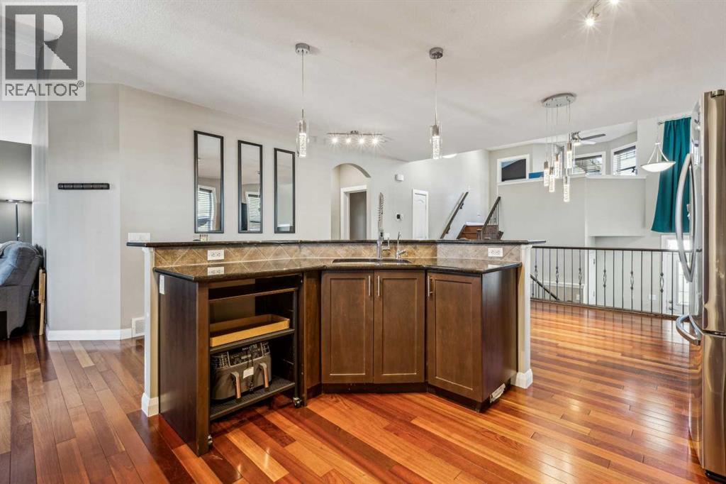 Introducing an exceptional opportunity to own a luxurious bi-level home in the highly sought-after community of Westridge, Okotoks. Built by the renowned Broadview Homes, this meticulously maintained residence at 25 Westridge Way is the perfect blend of elegance, functionality, and comfort. As you step into the home, you’ll immediately notice the abundance of natural light pouring in through large windows in the welcoming foyer, creating a bright and airy atmosphere. The main level showcases exquisite hardwood flooring and soaring ceilings, providing a sense of openness throughout. The spacious dining area flows seamlessly into the heart of the home – a beautifully designed kitchen that is both stylish and practical, making it an ideal space for hosting family and friends. A cozy tucked-away living room, complete with a gas fireplace, offers a tranquil spot to relax and unwind, while the convenient access to the expansive deck invites you to enjoy outdoor living at its best. The main floor features 2 generously sized bedrooms and a well-appointed full bathroom, providing the perfect balance of privacy and functionality. A few steps up lead you to a fantastic multi-purpose nook space, complete with a built-in desk, ideal for those working or studying from home. Adjacent, the Primary retreat awaits—a private sanctuary featuring a cozy fireplace, a lavish 5-piece ensuite, and a walk-in closet equipped with custom organizers to maximize storage. Downstairs, the fully finished basement offers even more living space, including a fourth bedroom, a full bathroom, a laundry room, and ample storage. The highlight of the lower level is the expansive family room, with a second gas fireplace, a wet bar, mini beverage cooler and built-in sound wiring, making it the perfect spot for movie nights, entertaining, or simply relaxing. The layout is flexible, offering enough space to divide it into additional zones to suit your needs. Step outside to your private, professionally landsca ped backyard—years of care and attention have gone into creating this outdoor oasis. The multi-tiered deck with a stylish pergola offers a cozy setting to enjoy warm summer evenings, while the meticulously maintained yard provides a peaceful retreat. Plus, this home is fully RV-accessible, ensuring convenience for outdoor enthusiasts. Located just minutes from top-rated schools, shopping, dining, and recreational amenities, this home truly offers everything you could need. Don’t miss your chance to own this exquisite property. (id:53676)