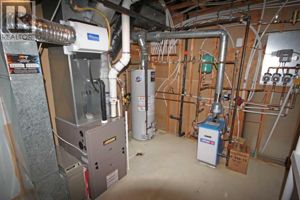TRIPLE GARAGE on Large Bungalow (1725 sf per floor) backing onto quiet GREEN SPACE with trilling daily wildlife viewings. Location is one of the best in Sylvan Lake with walking and bicycle access to the Lake, Restaurants, Golf Course etc. without being in the busy tourist district. Lots of room with 4 bedrooms plus office/den, huge family room and beautiful views in all directions. Unique driveway leading to the TRIPLE CAR GARAGE will accommodate many vehicles. Newer shingles, furnace, hot water heater and boiler (for basement and garage floor heat). Hardwood flooring is in excellent condition. Other flooring and light fixture updates will make this house your home. (id:53676)