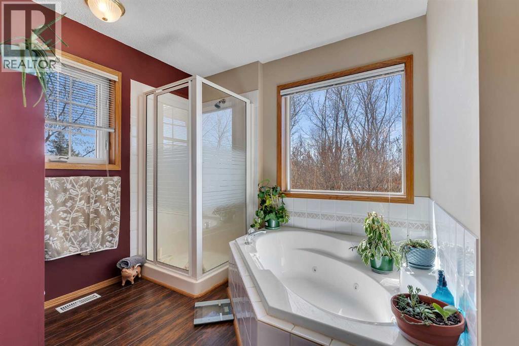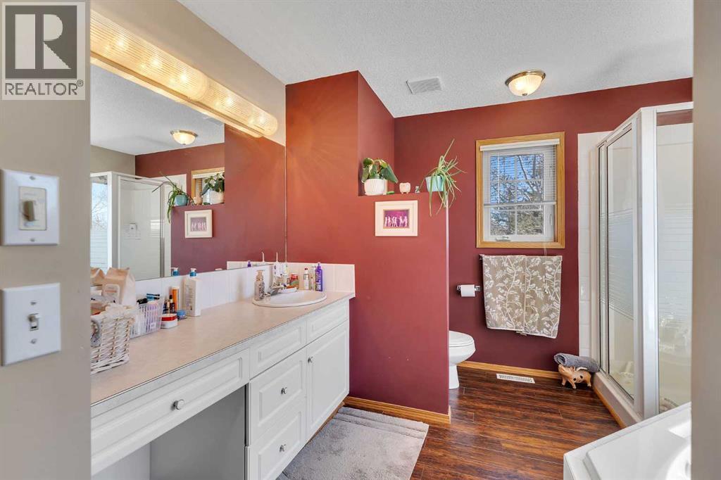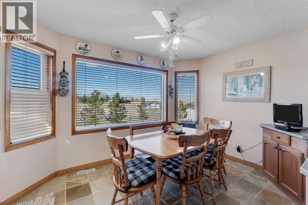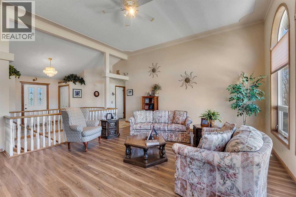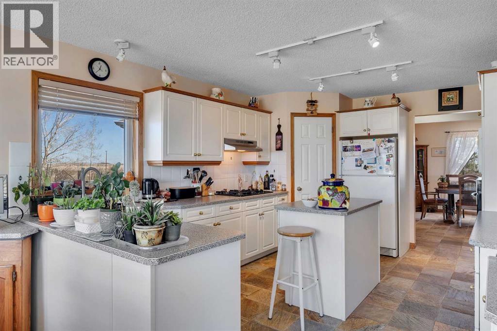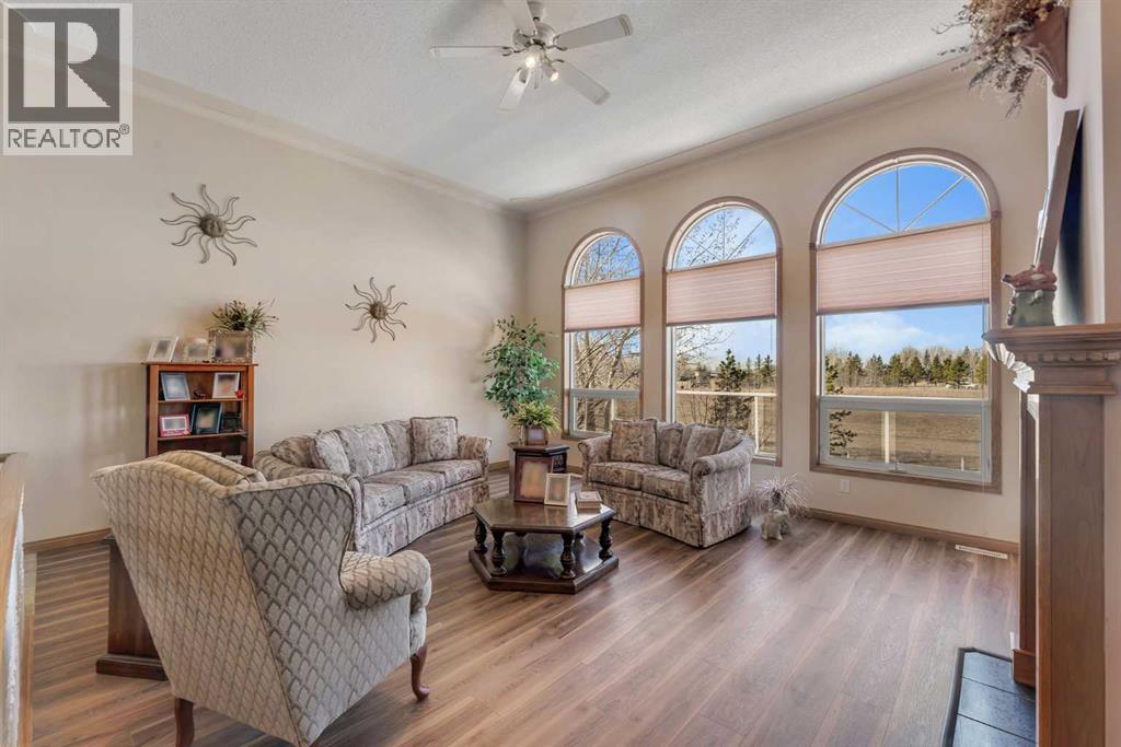 Walkout Bilevel on 4 acres with a triple attached garage and over 3000 sq. ft. of developed living space. This is the kind of property that offers both space and flexibility—inside and out. The main floor is bright and open with high ceilings that make the entire home feel even larger. The living room is anchored by a gas fireplace and flows easily into the white kitchen, complete with ample cabinetry, generous counter space, and a sunny breakfast nook overlooking the property. A formal dining room adds the perfect spot for hosting family dinners or special occasions. There are two bedrooms on the main level, including the primary with its own ensuite, offering a comfortable and private retreat. The fully developed walkout basement expands your living space with 2 additional bedrooms and a den, a large rec room with 2nd fire place, and direct access to the outdoors—ideal for guests, a growing family, or multi-generational living. Outside, the 4 acres provide endless possibilities. Enjoy the privacy, the views, and the freedom to use the land the way you want—all just a short drive from amenities. (id:53676)