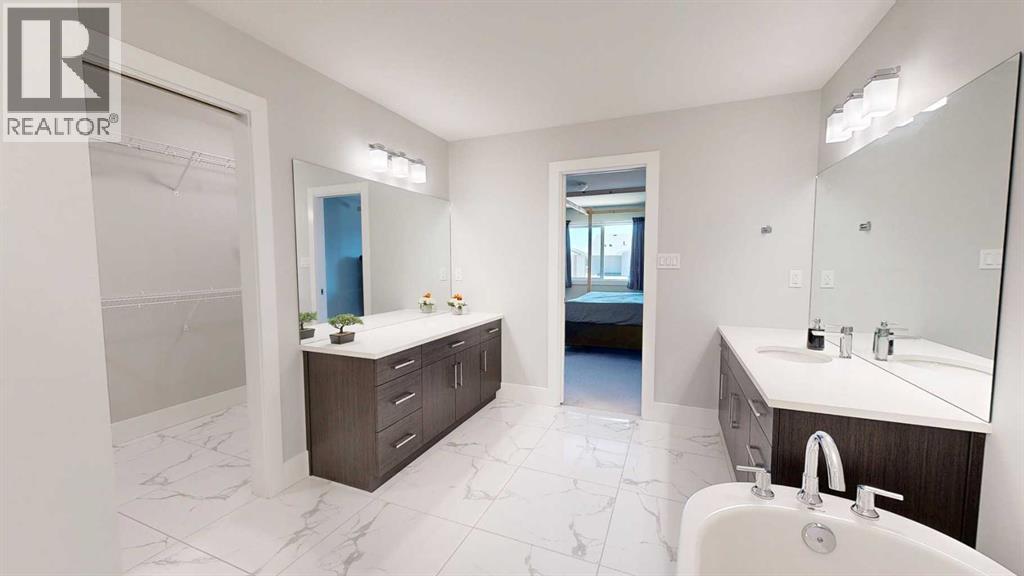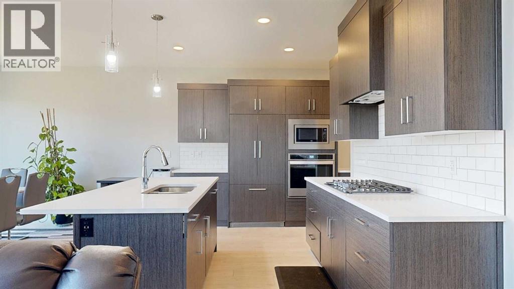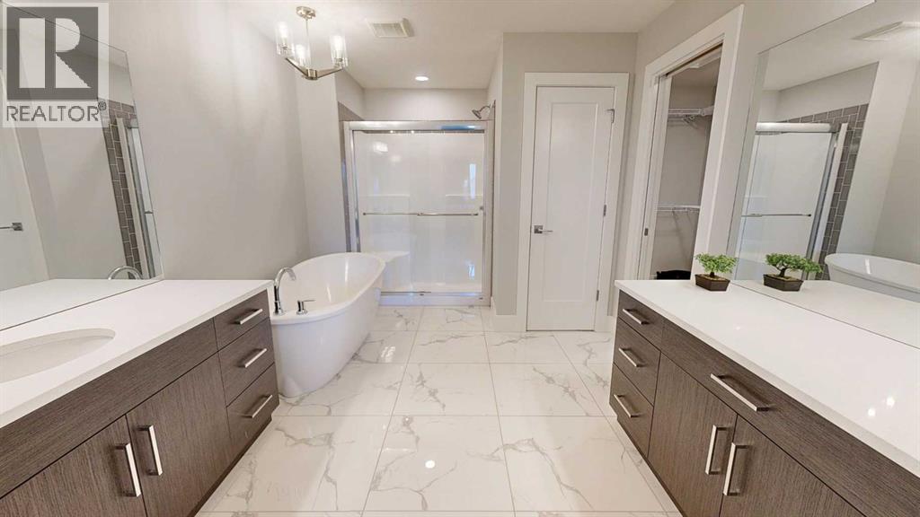 Welcome to this charming, Almost New Two-Storey home with 3 Bedrooms, 2.5 Bathrooms, Bonus Room, AND Office, Double attached garage, and a Walk-up basement with Separate Entrance located in a very desirable, family oriented neighborhood in southside community, and walking distance to elementary school and quick access to major shopping centers! As you walk up to the front entrance, you’ll be amazed by a spacious and covered veranda which leads to a very welcoming foyer. Enjoy the open floor plan with 9’ ceiling height throughout Main floor and living room with ceiling Open-to-Below with a total livable space of 3295 Sq.Ft. The Beautiful Modern style Kitchen is The Heart Of The Home complete with large quartz island, elegant Cabinets, customized hood fan, customized refrigerator doors to blend in with other cabinets, extra built-in countertop in front of pantry, Gas cook top stove, and all Stainless Steel Appliances. The Open-to-below 18’ concept along with big windows looking on to the backyard let lots of natural light come in throughout the day. This immaculate living room has a customized wall decorated with stone around fireplace throughout from main floor all the way to the top of the ceiling. This gives a unique view from hallway upstairs and even when looking down to see the living area on main floor. There is a half bath and an Office on the main floor along with built-in shelf space for closet which can be used as work space or a play room for kids. Going up the stairs, there is a spacious Bonus room which is a great spot for hanging out with friends, movie nights, or just to read a book with natural light from window. In addition, upper Floor consists of 2 big bedrooms, 3-piece bath, and a massive Master Bedroom with a 5-piece en-suite that is fully tiled, has a fancy Bath-tub, Walk-in Shower, extra vanity, and a Walk-in closet. Going downstairs to the enormous basement with a Roughed-in bathroom, laundry set up, there is a full future potential of buildi ng a 2 bedroom+family room Legal suite with a Separate Entrance which walks up to grade on to a Large Fenced Backyard with a back alley. Built in 2021, this home is fully equipped with Central AC, low-maintenance front yard, and fully-fenced Backyard ideal for Kids and Pets. Home in Pristine Condition: owners only lived here for few months since they bought it brand new, no pets, never smoked. This home is still under New Home Warranty. To checkout this beauty, Contact your favorite REALTOR® today! (id:53676)